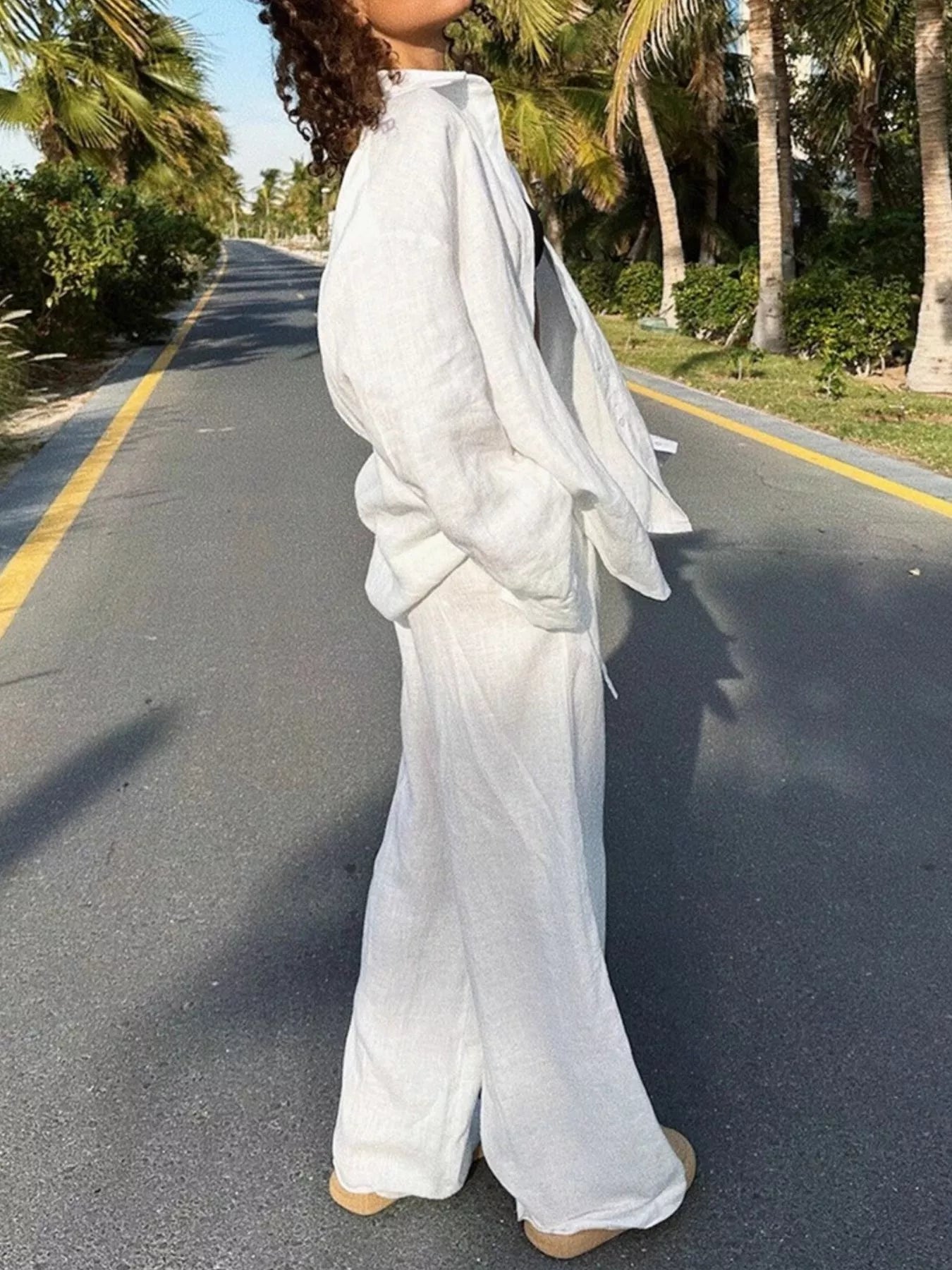 Relaxed Fit Button Up Shirt and Pants Two-Piece Set