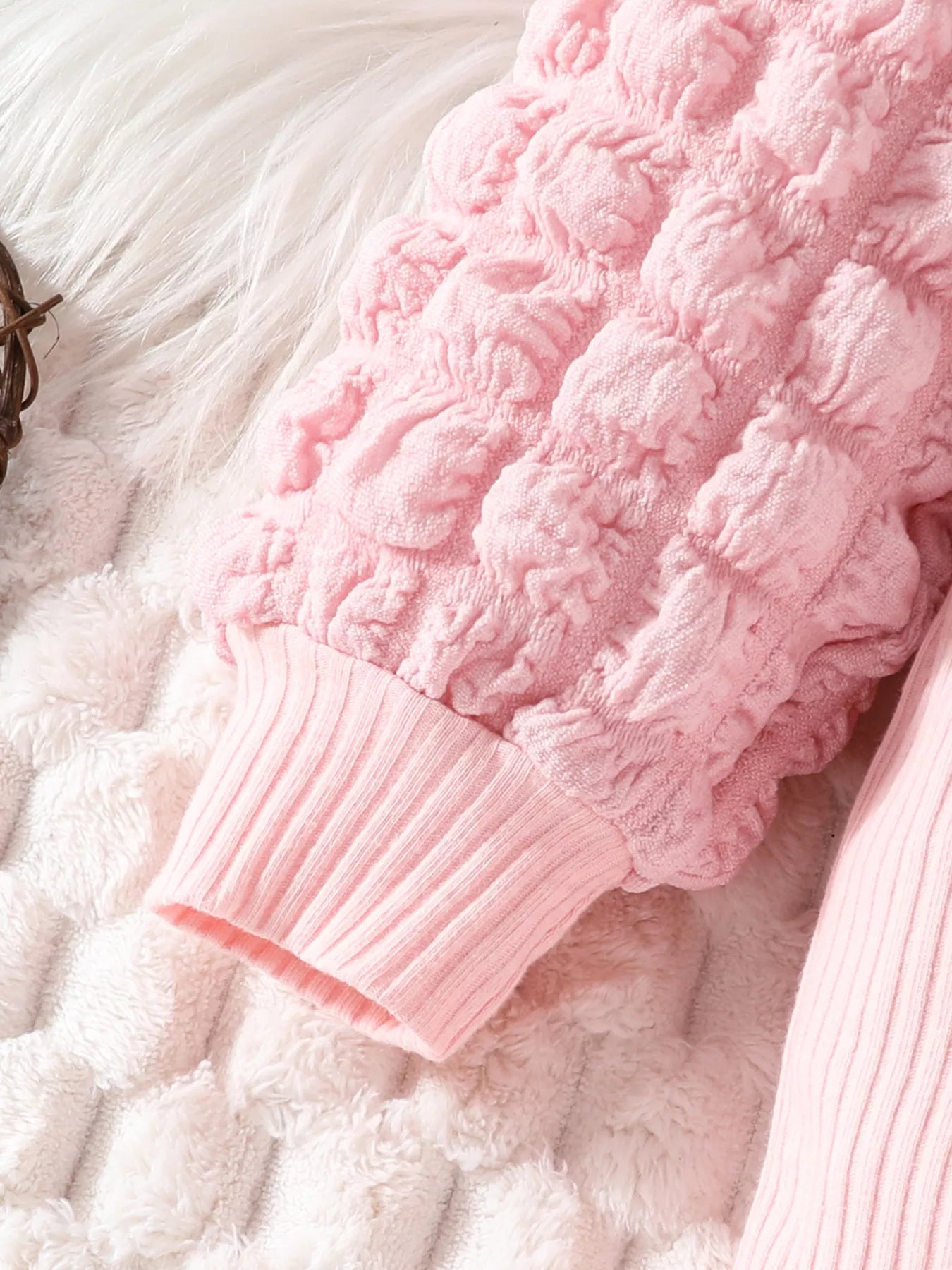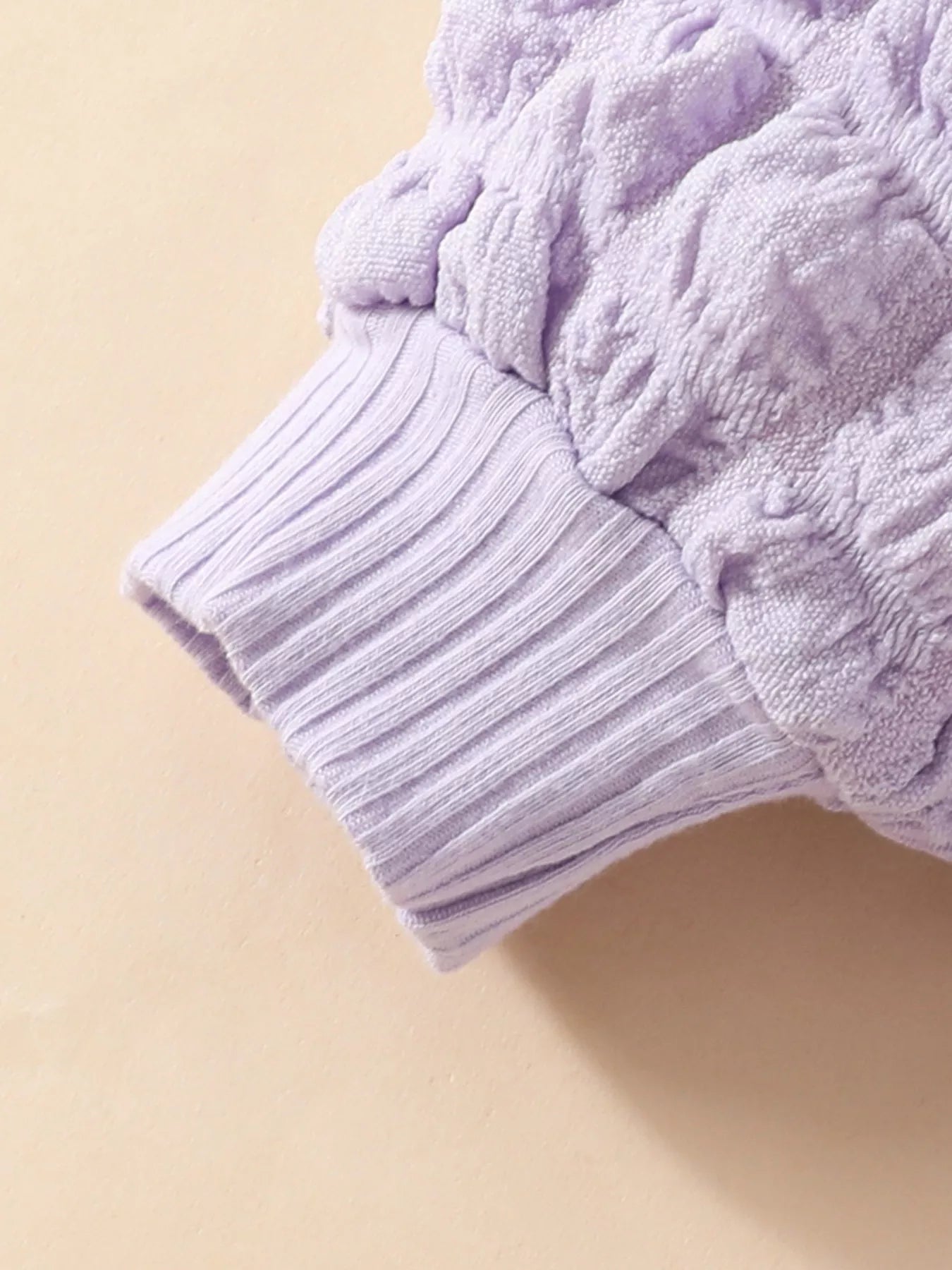 Children's Bubble Texture Long Sleeve Top and Pants Set with Headband
