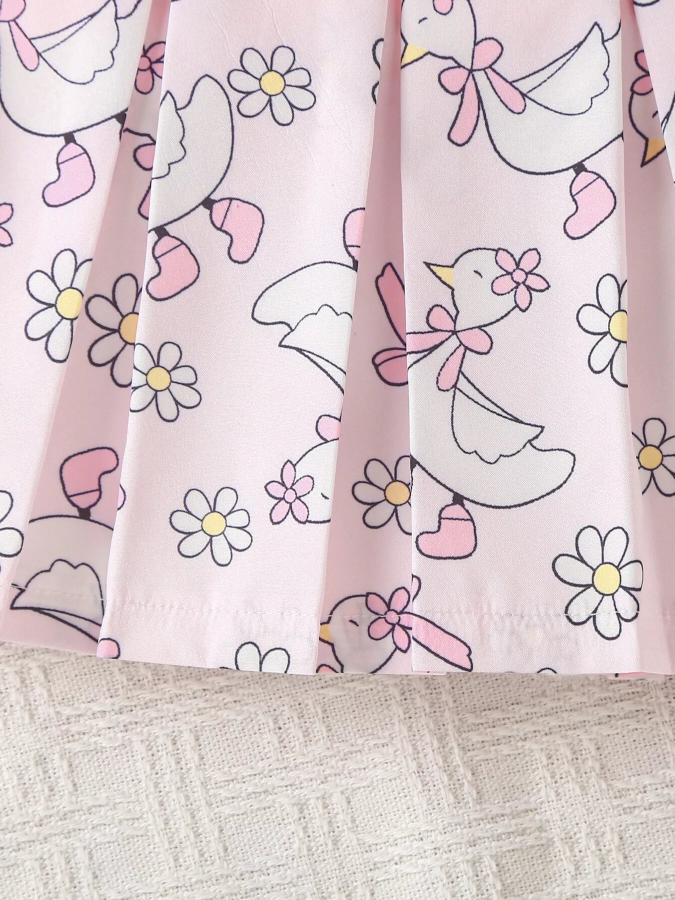 Children's Embroidered Ribbed Polo Shirt & Pleated Skirt Set