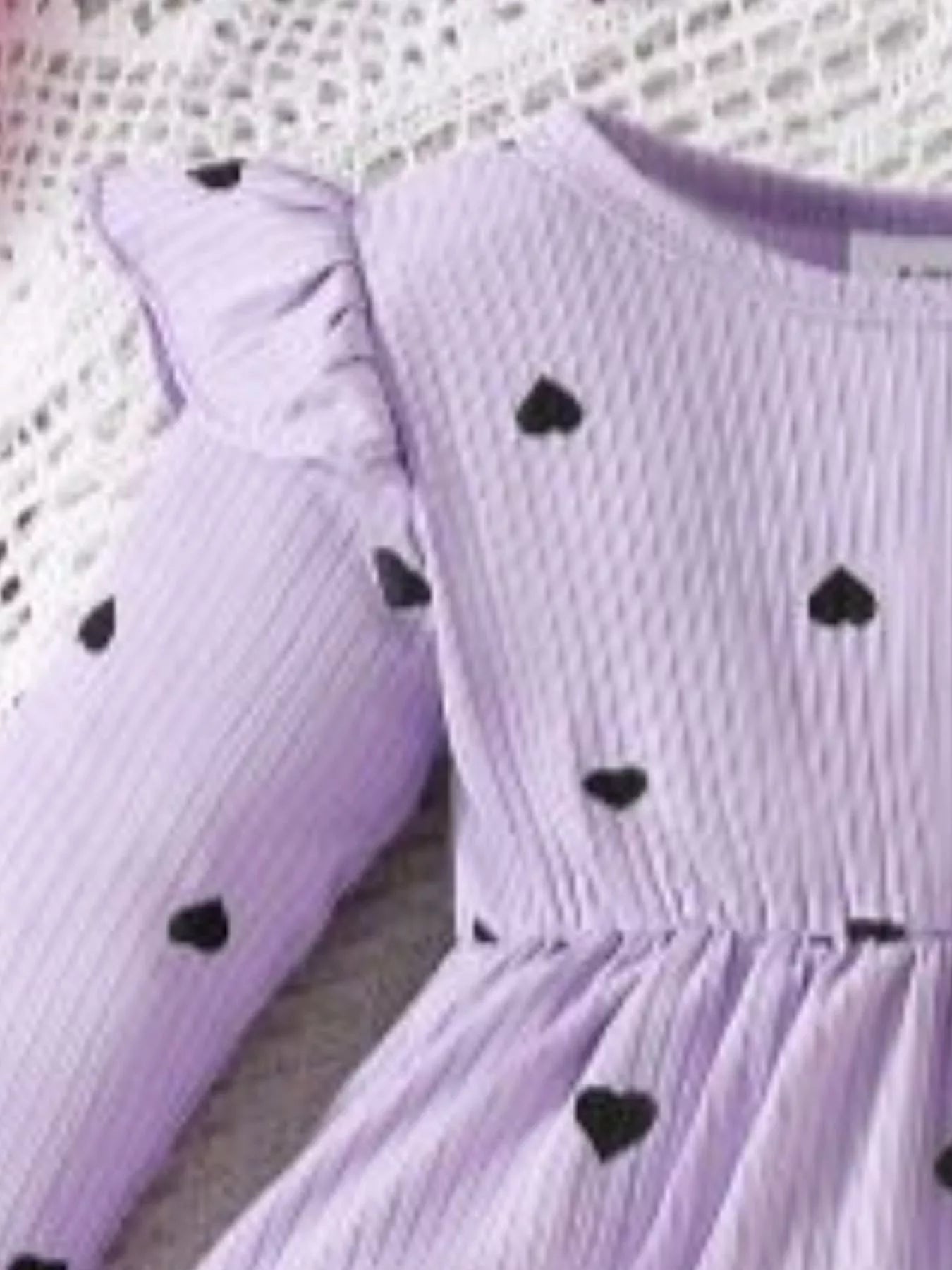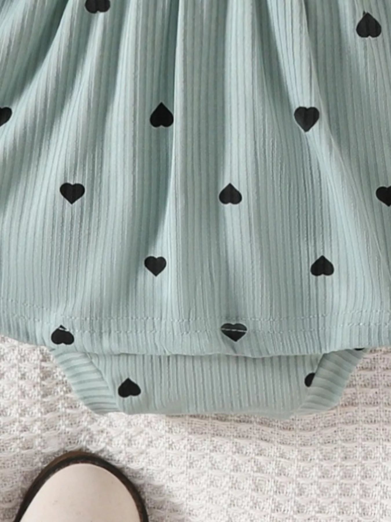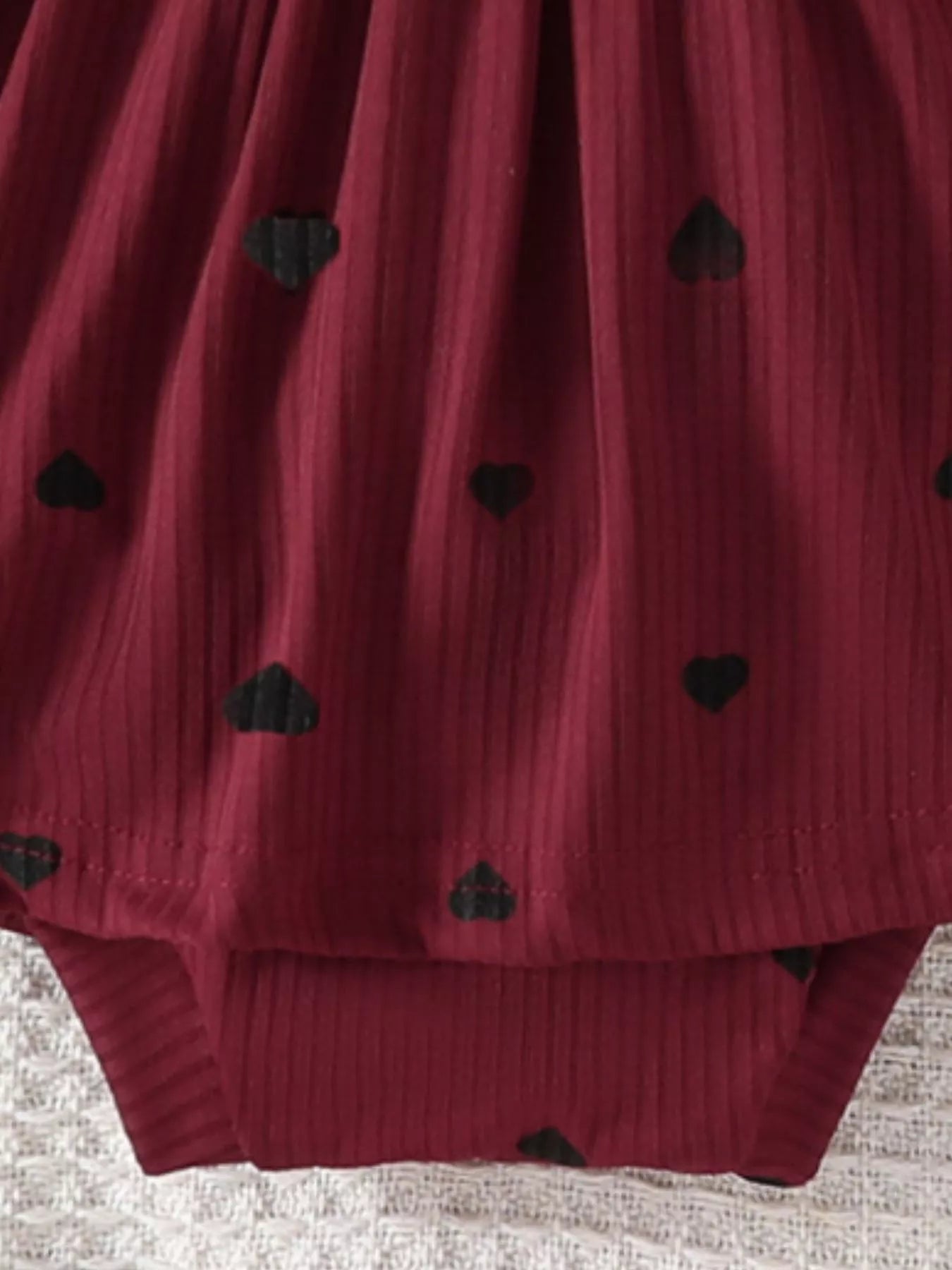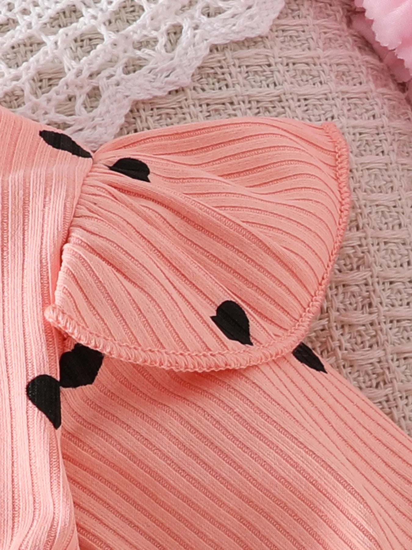 Children's Heart Print Ruffle Trim Bodysuit Dress with Headband