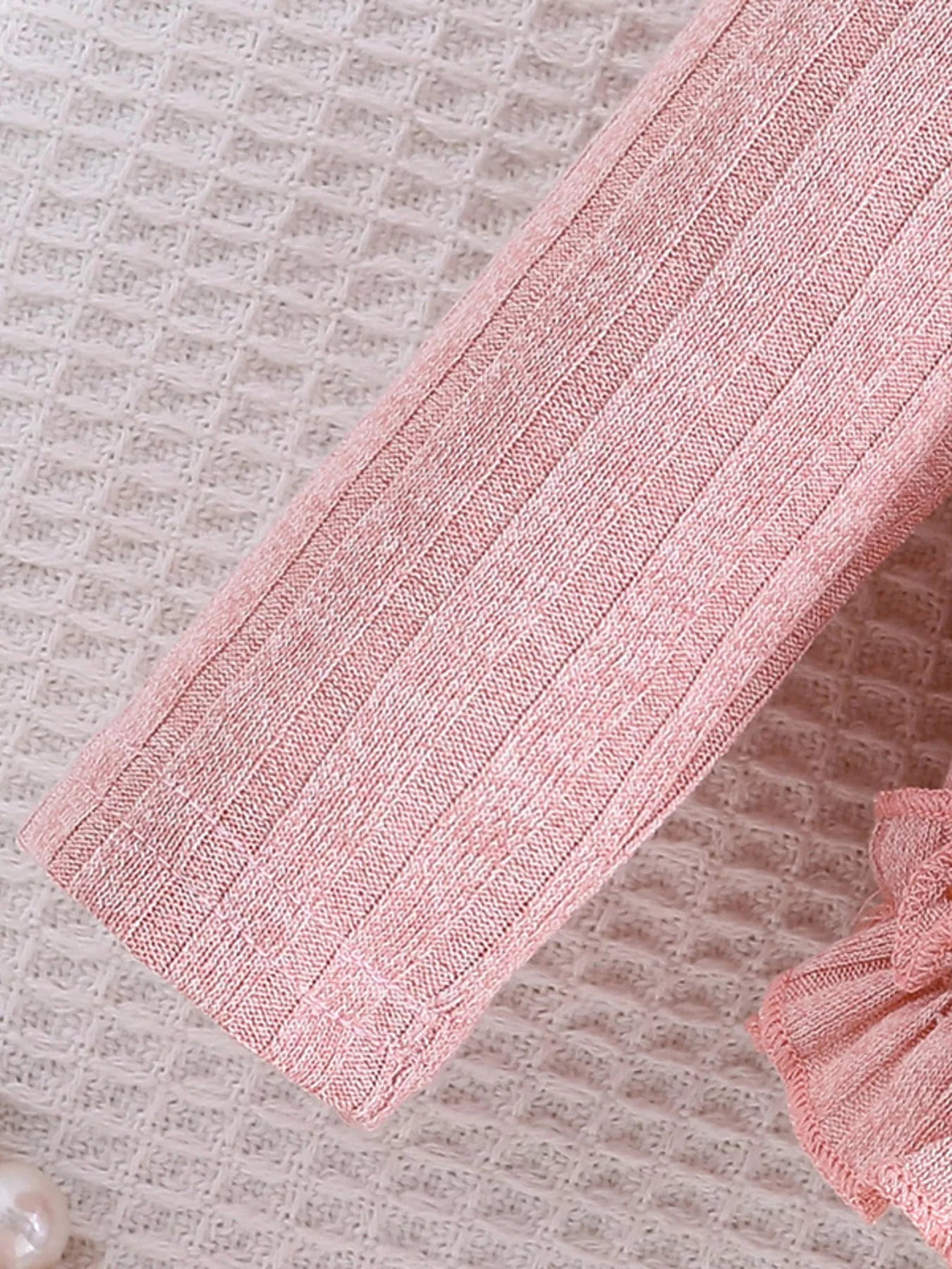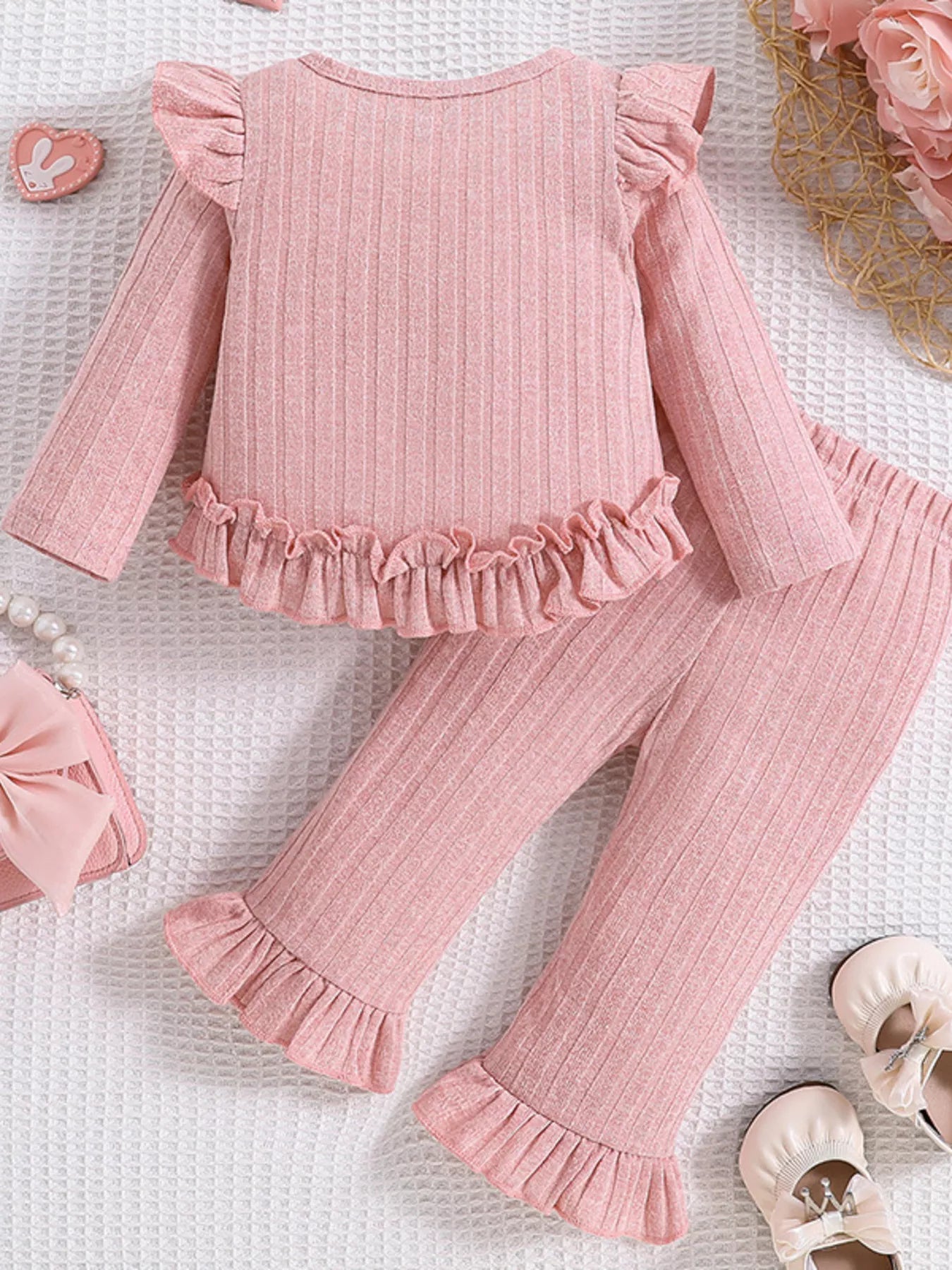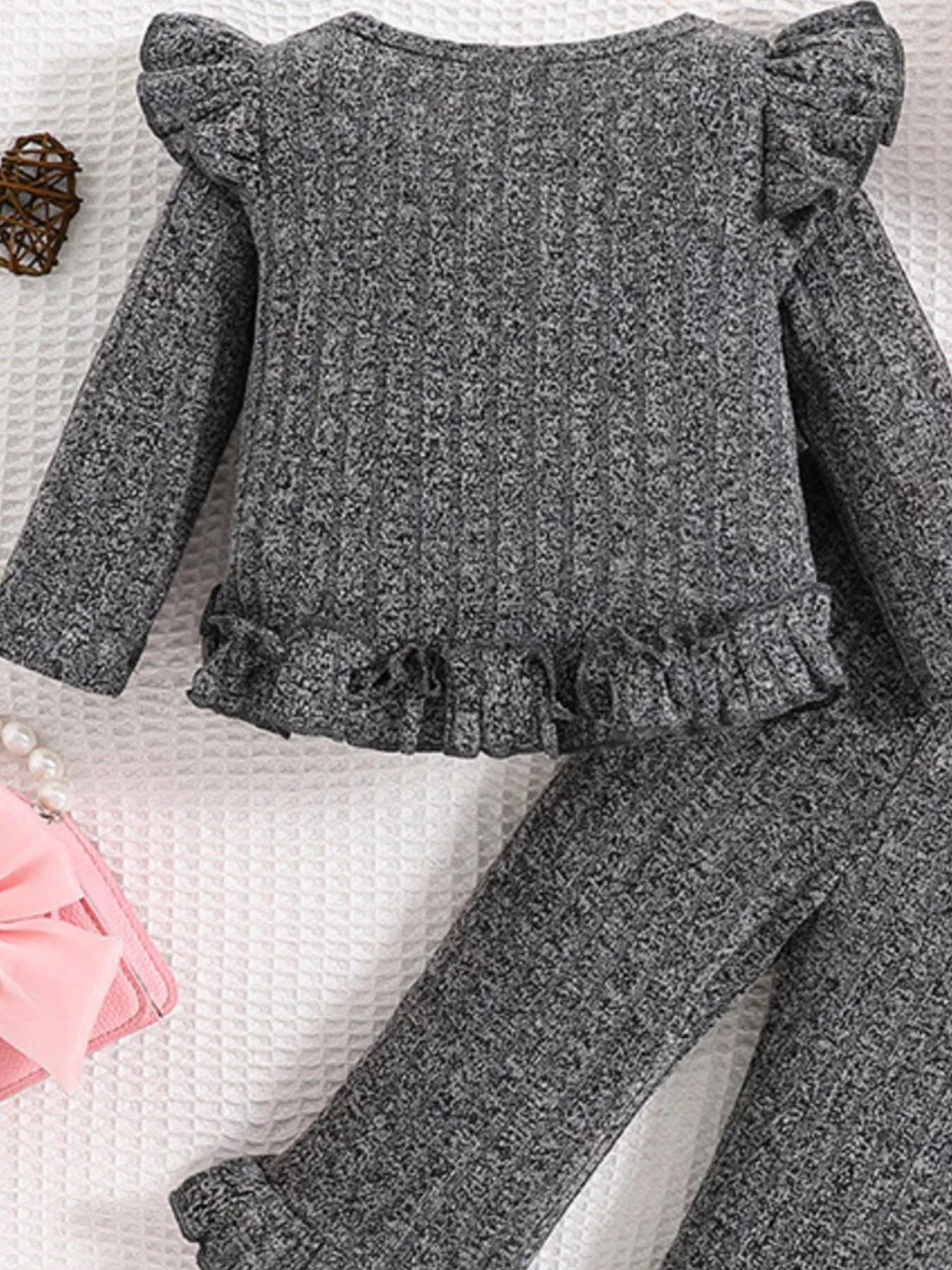 Children's Ribbed Ruffle Trim Top and Pants Set