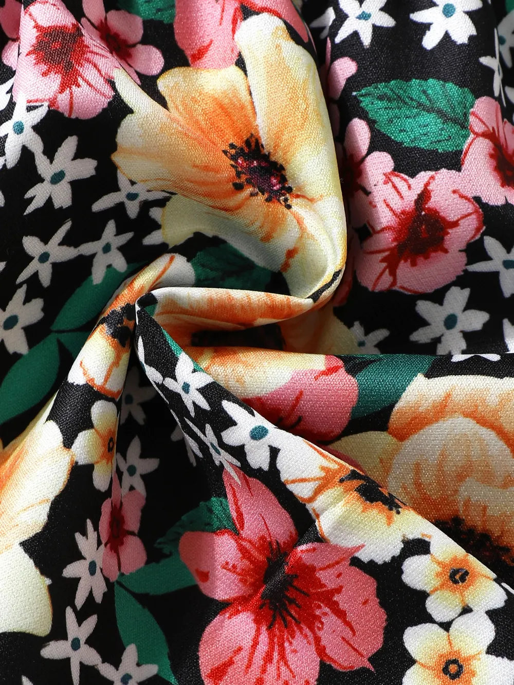 Children's Ruffled Bow Contrast Floral Dress with Headband