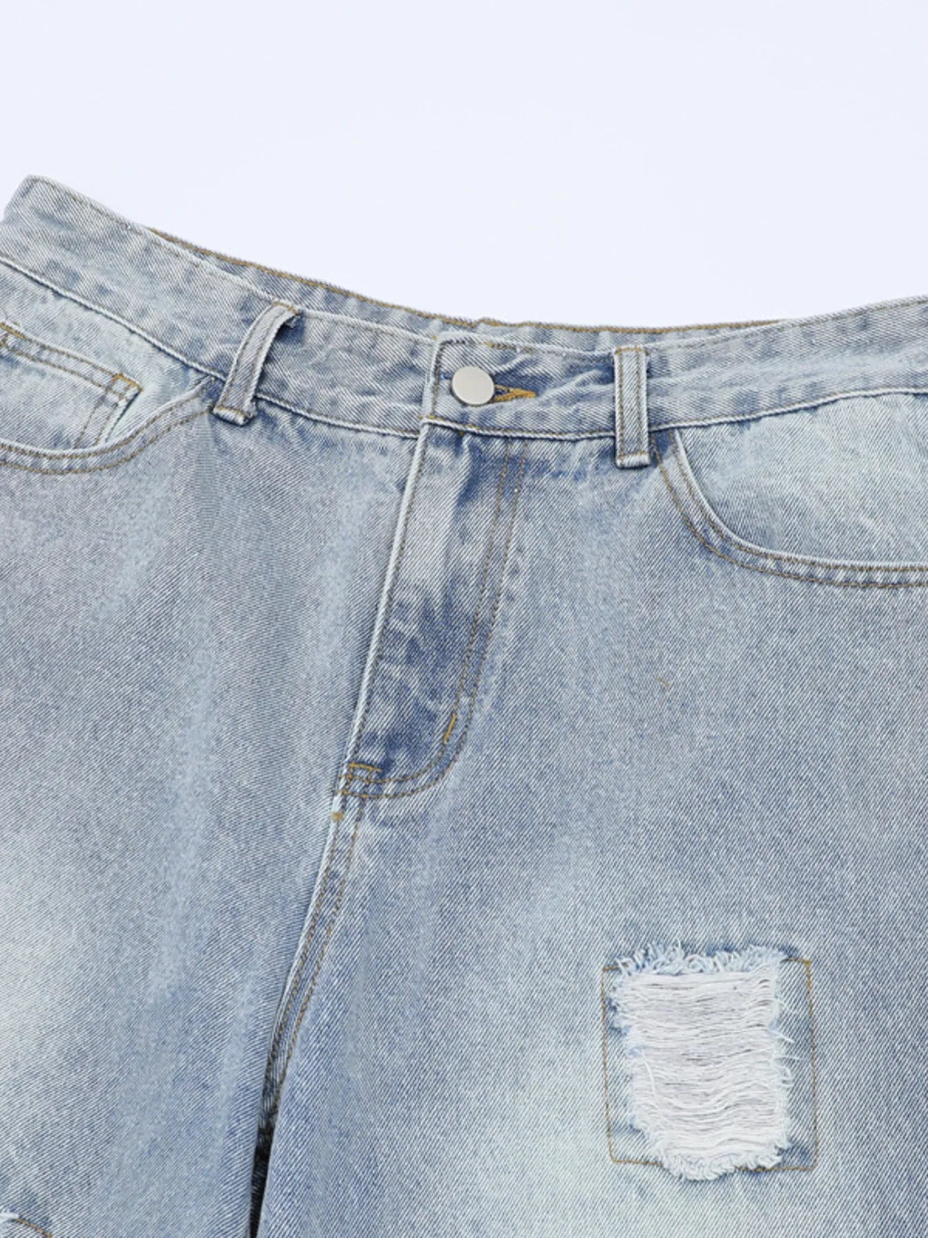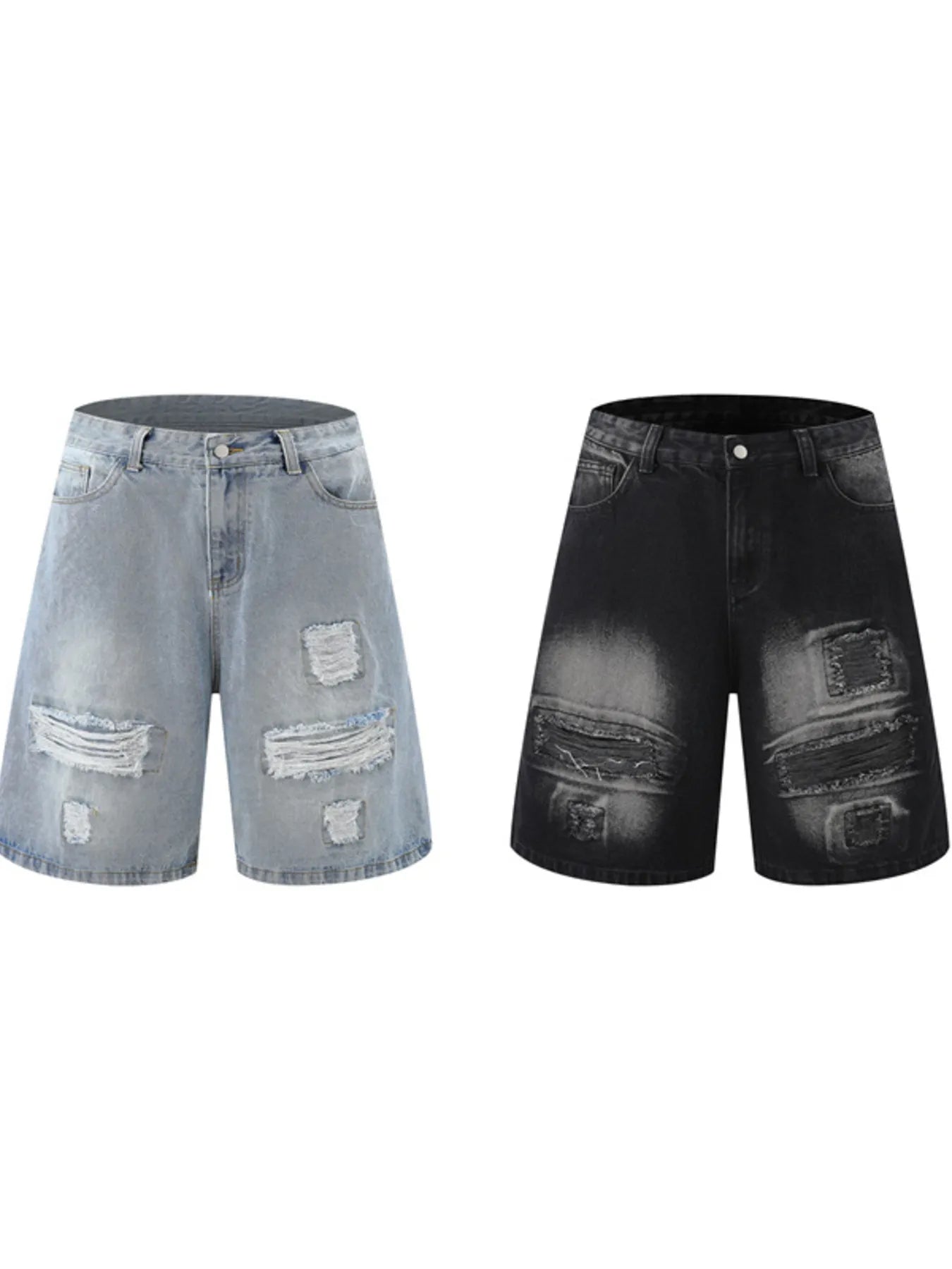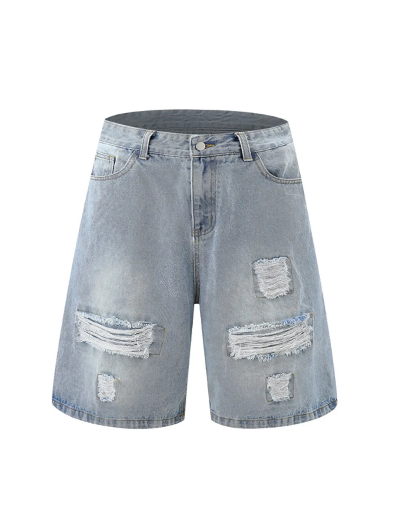 These distressed washed denim shorts offer a casual, lived-in look with functional pockets and a slightly stretchy cotton fabric for improved comfort. Perfect for everyday wear, summer outings, or pairing with relaxed tops for an easy laid-back style.