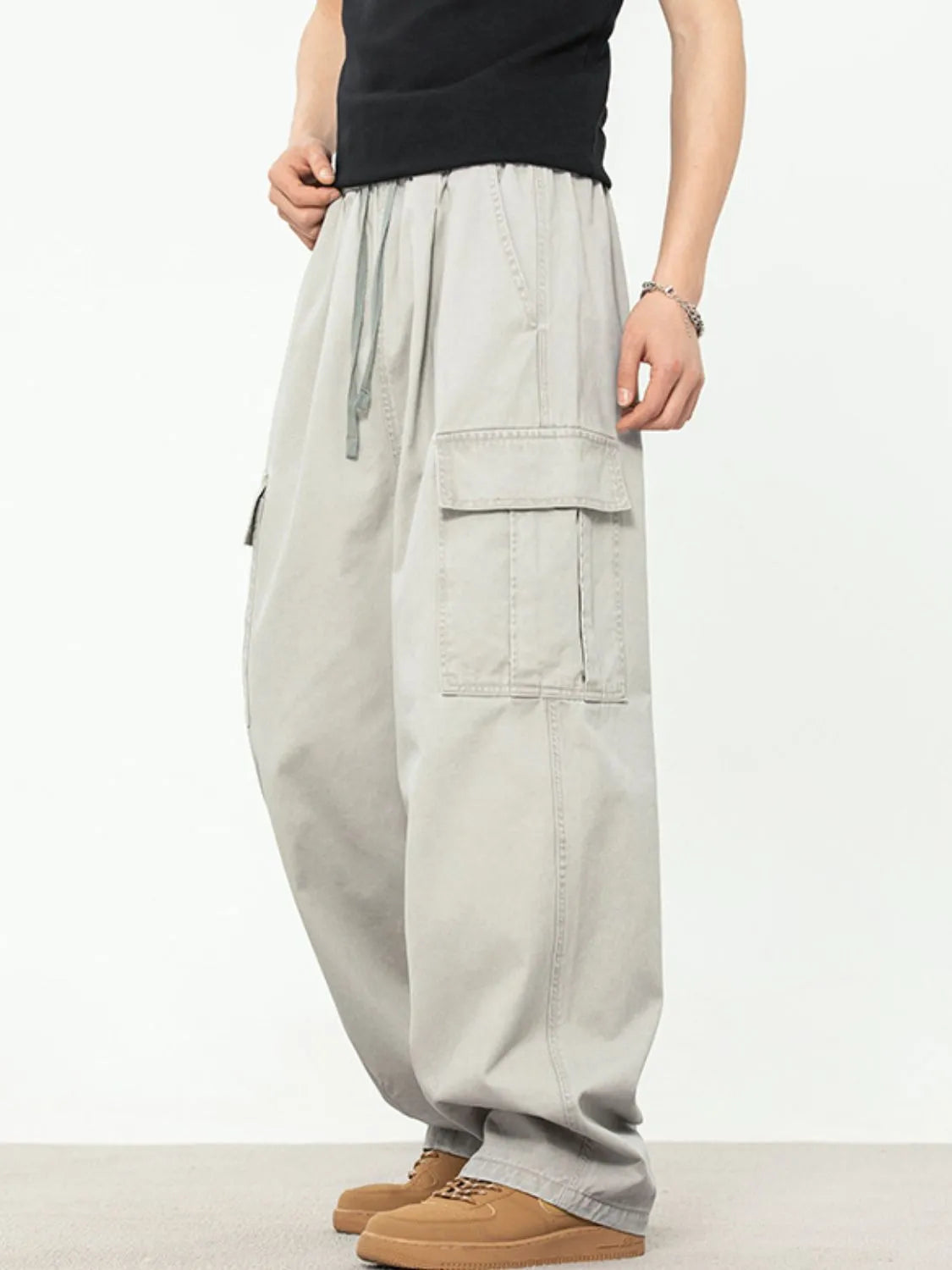 Men's Plus Size Drawstring Pants with Cargo Pockets