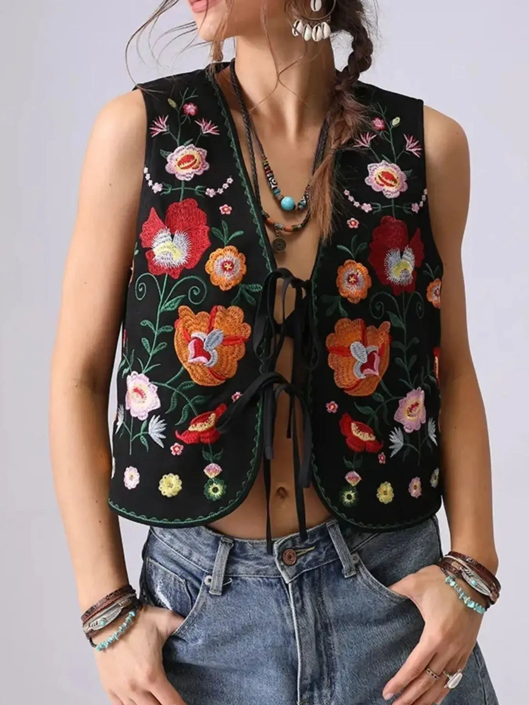 Chic embroidered top with tied details, normal thickness, and full lining for a comfortable fit and refined finish.