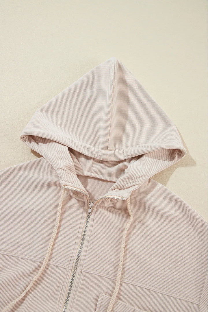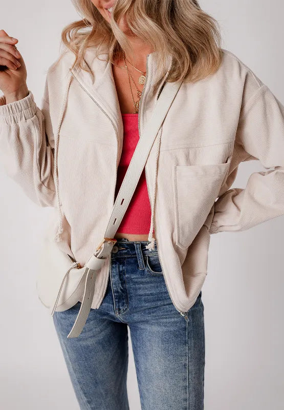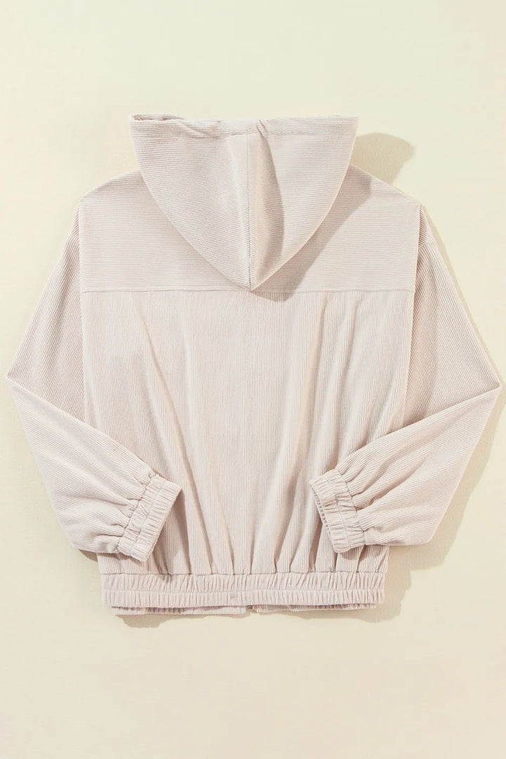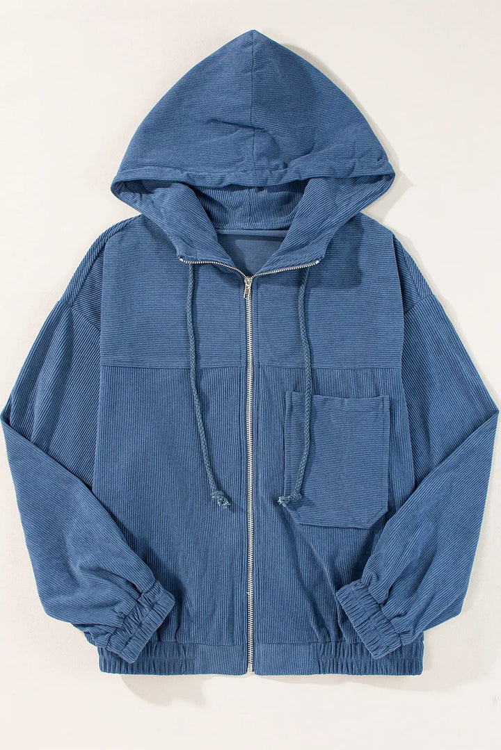 Pocketed Zip Up Long Sleeve Hooded Jacket