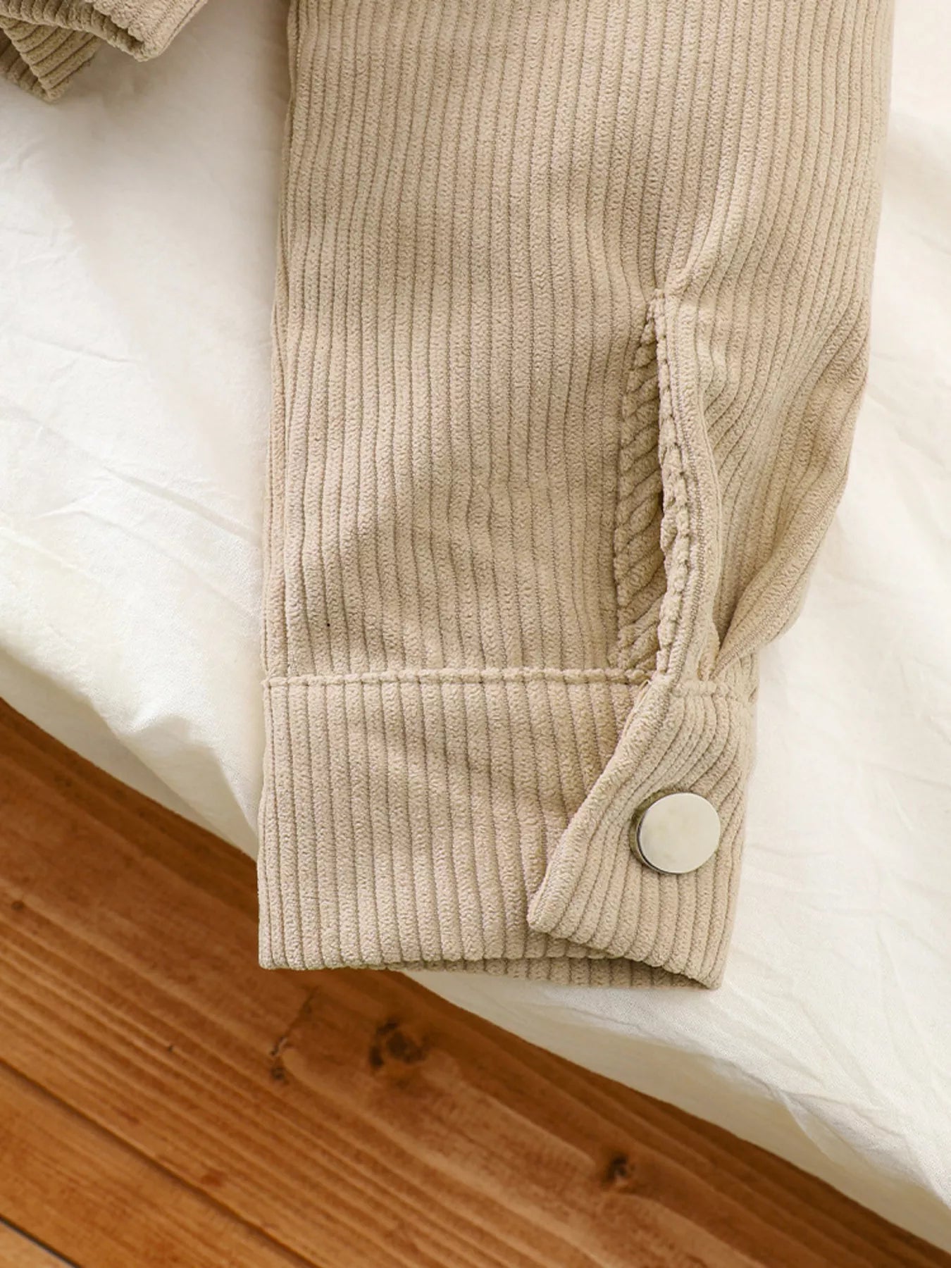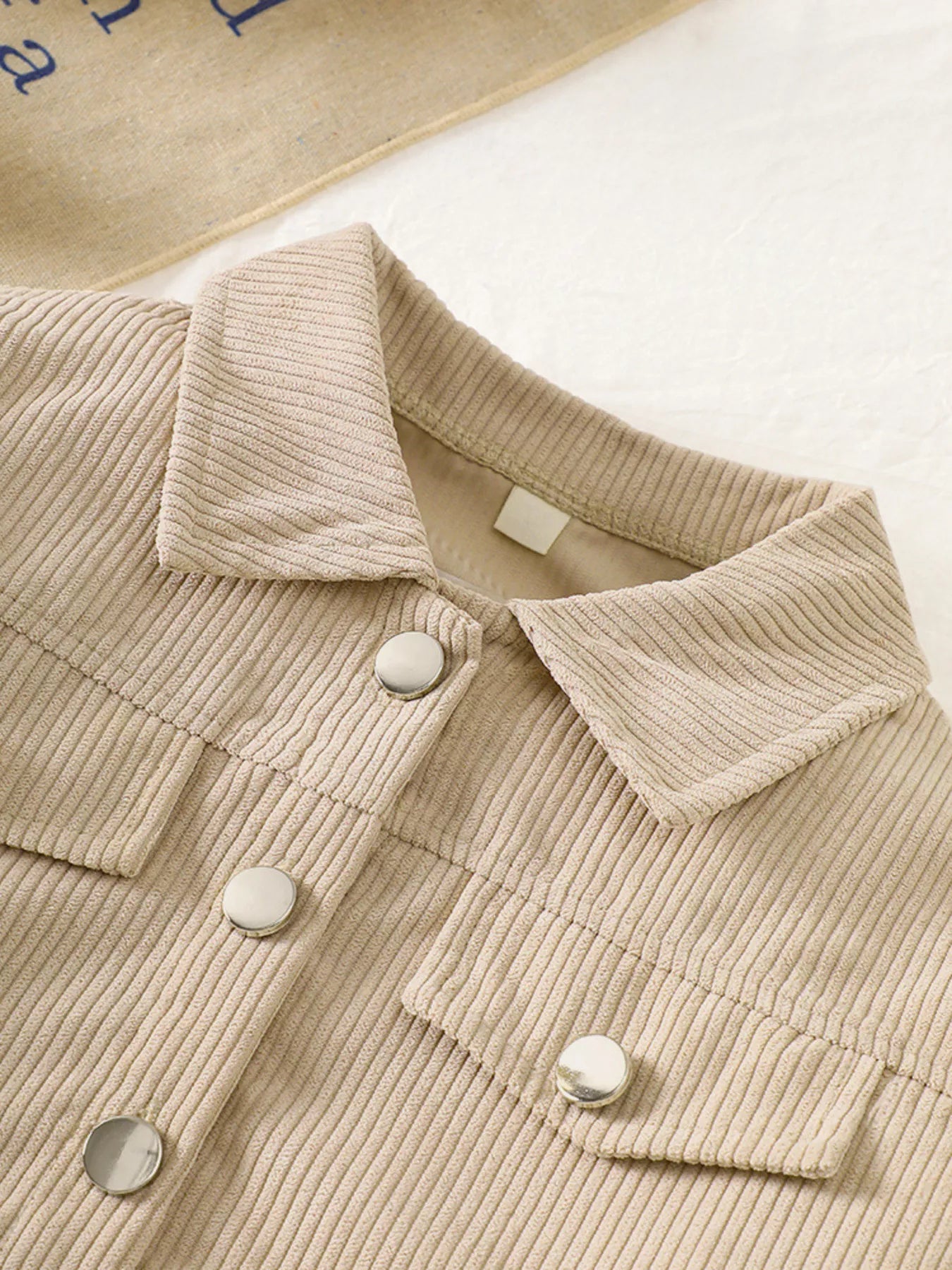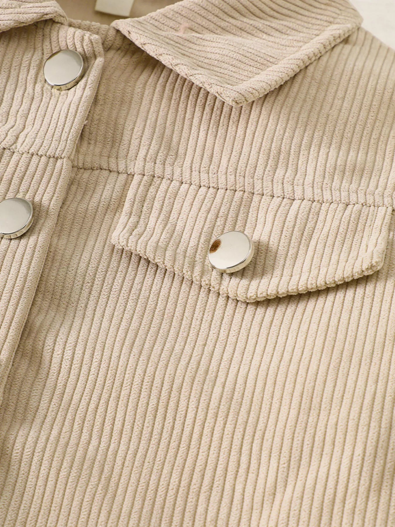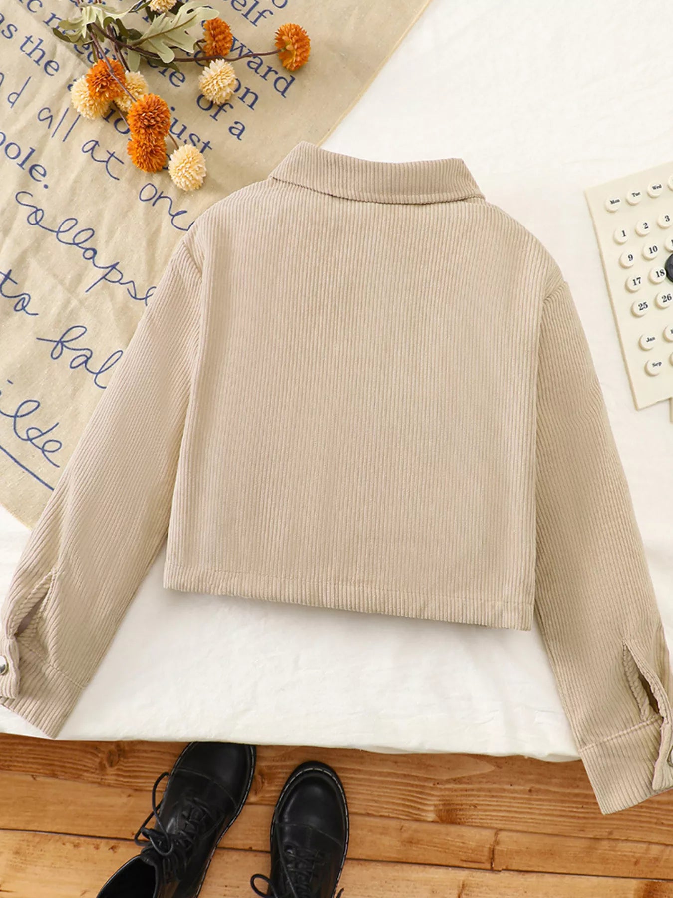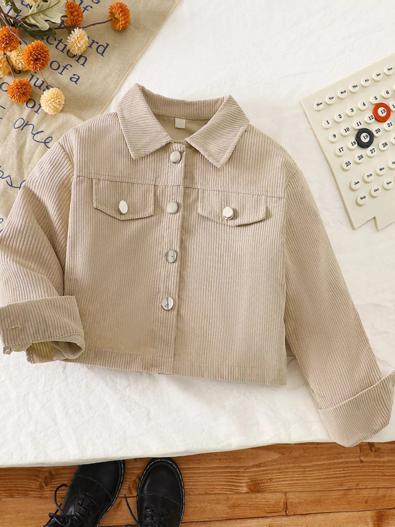 This kids top features a buttoned design with practical pockets. Made from a soft polyester-spandex blend, it offers comfort, flexibility, and durability for everyday wear.