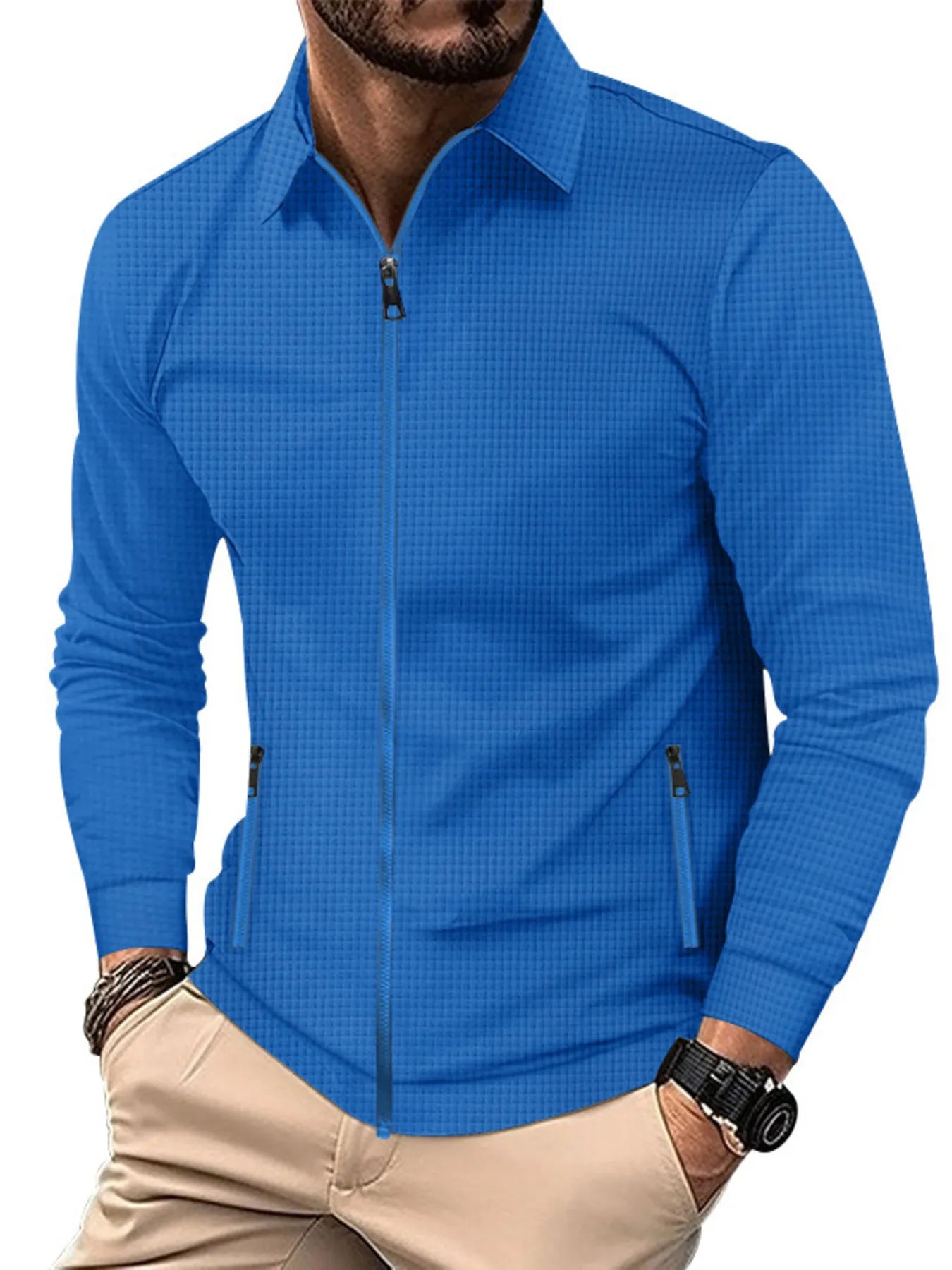 Men's Full Size Waffle Knit Zip Up Jacket Plus Size