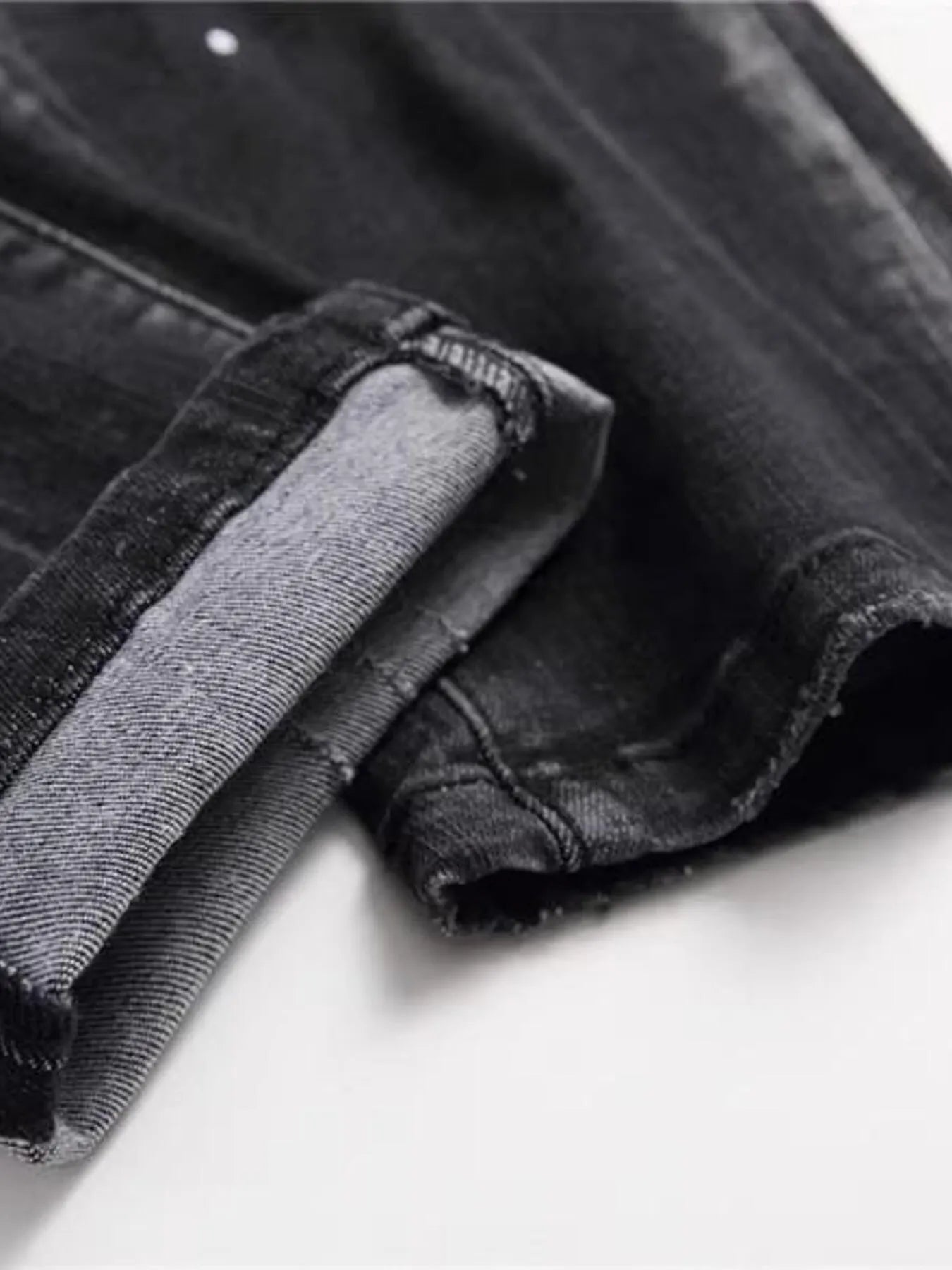 These distressed denim jeans feature a slightly stretchy cotton-blend fabric for everyday comfort and style. Designed with a button closure, zipper fly, and functional pockets, they combine a rugged look with modern versatility — perfect for both casual and streetwear outfits.