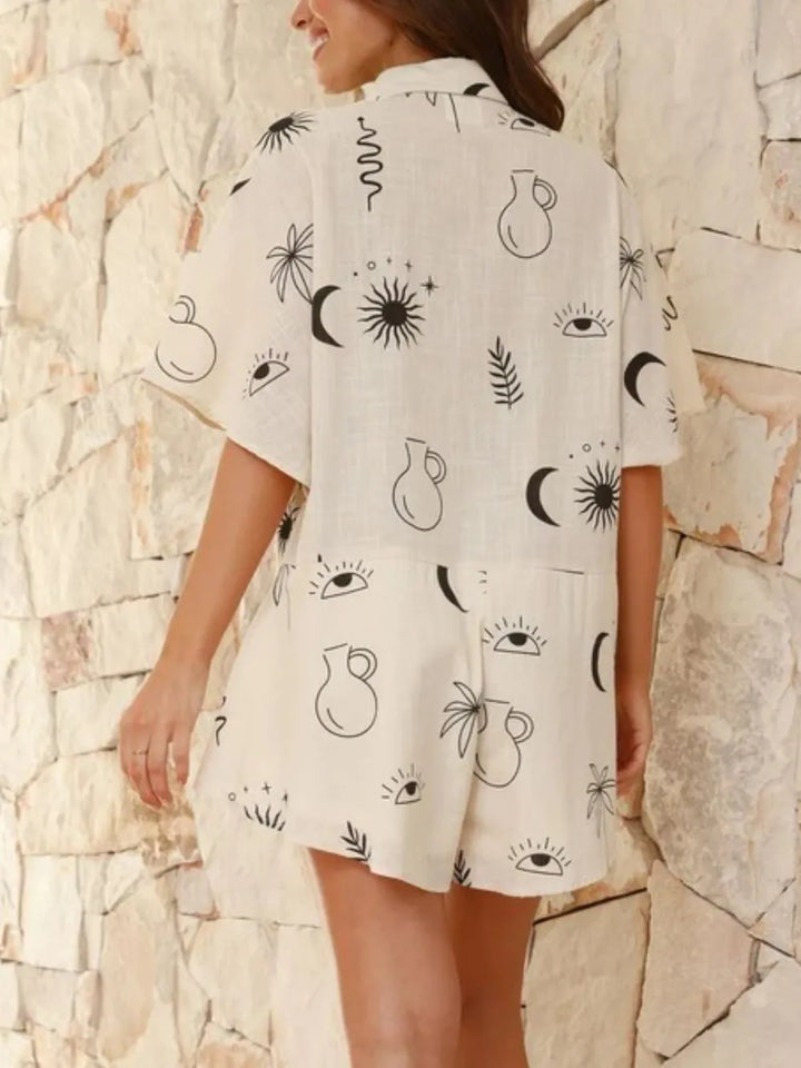 Printed Collared Neck Half Sleeve Romper