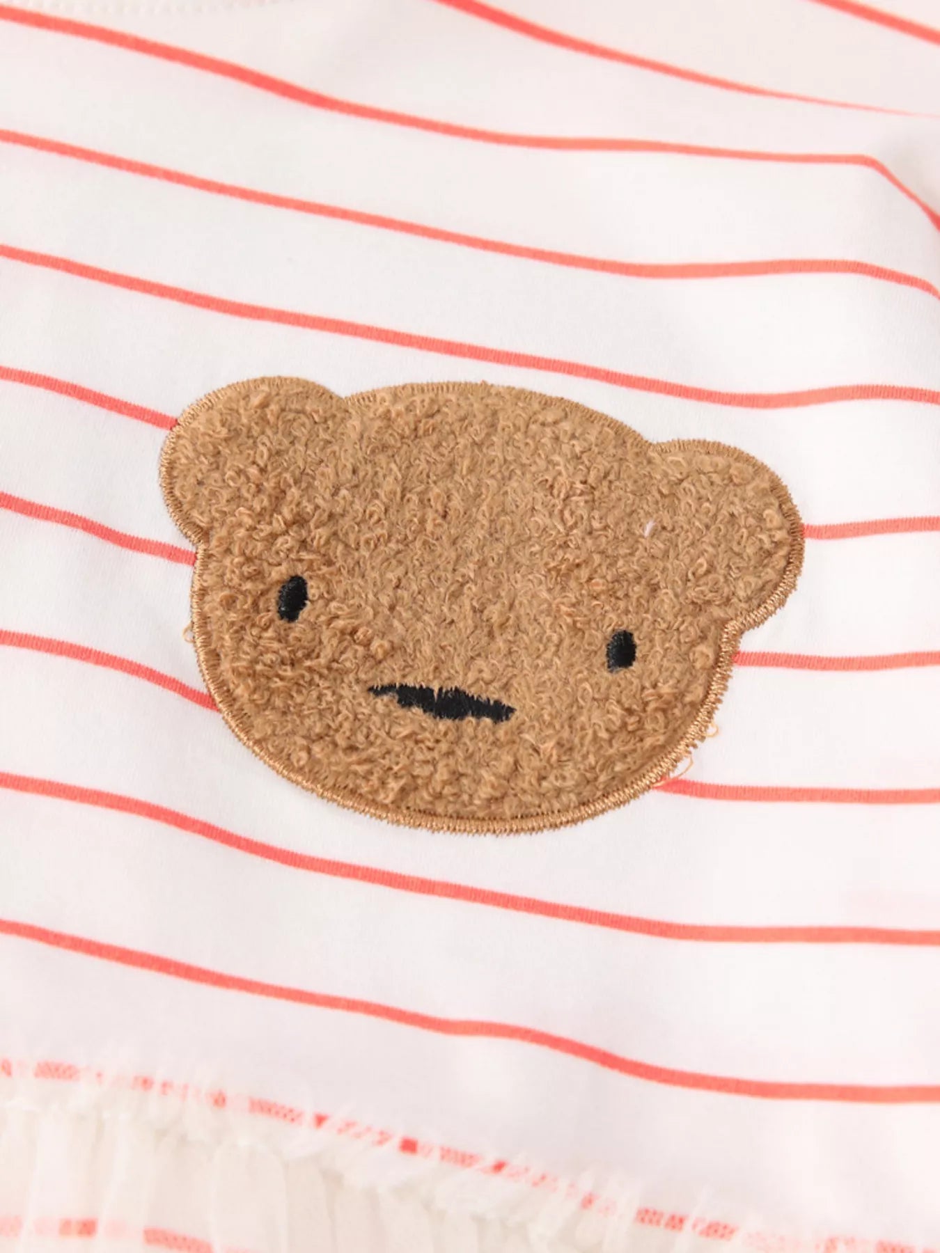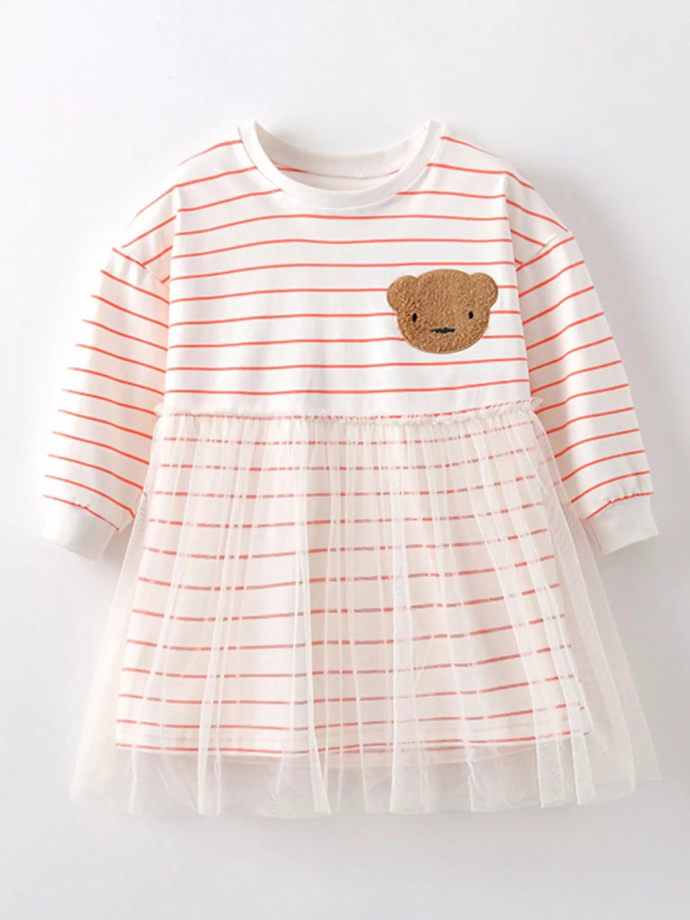 Children's Bear Applique Striped Tulle Dress