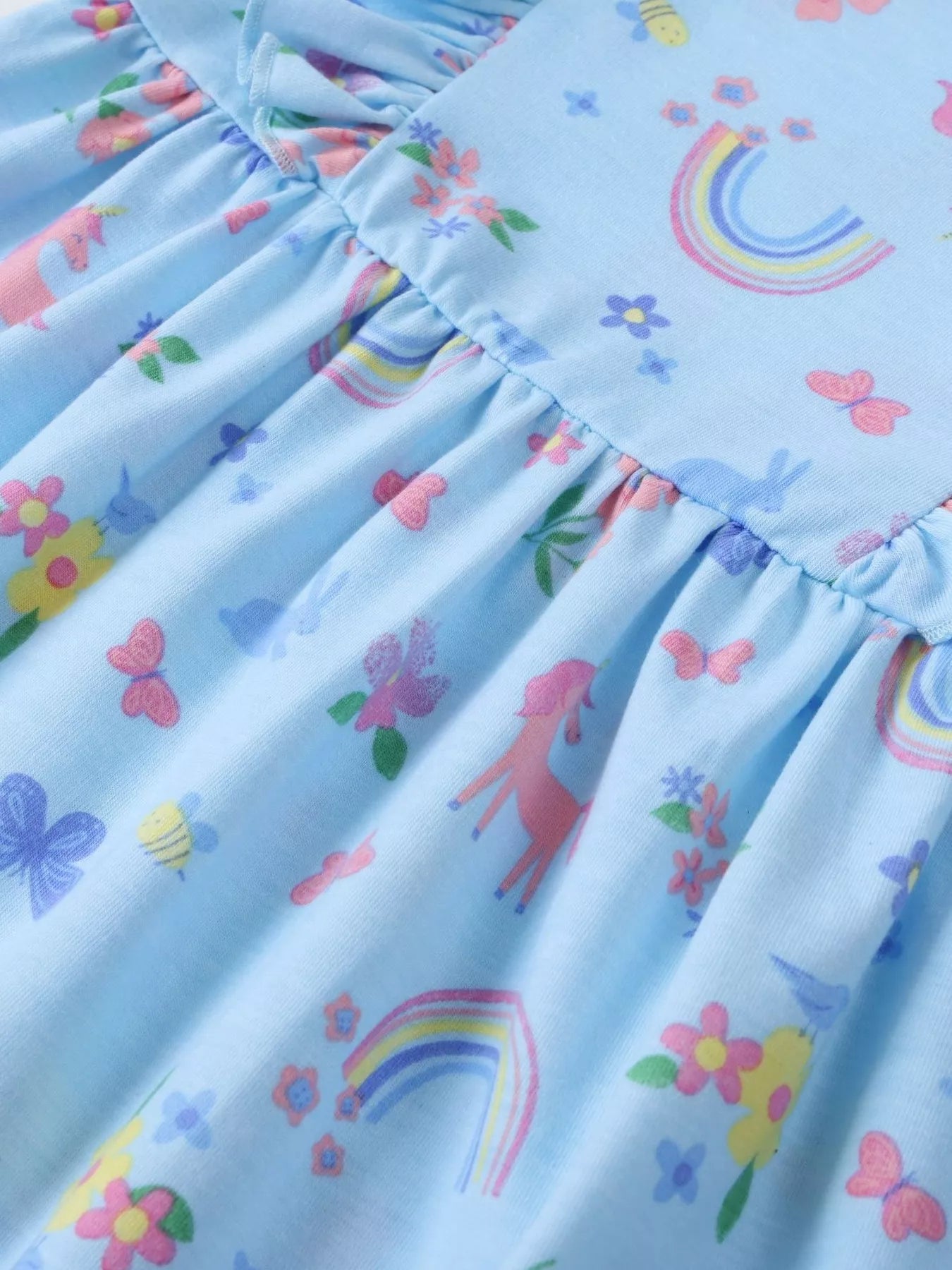 Children's Unicorn Rainbow Print Ruffle Trim Long Sleeve Dress