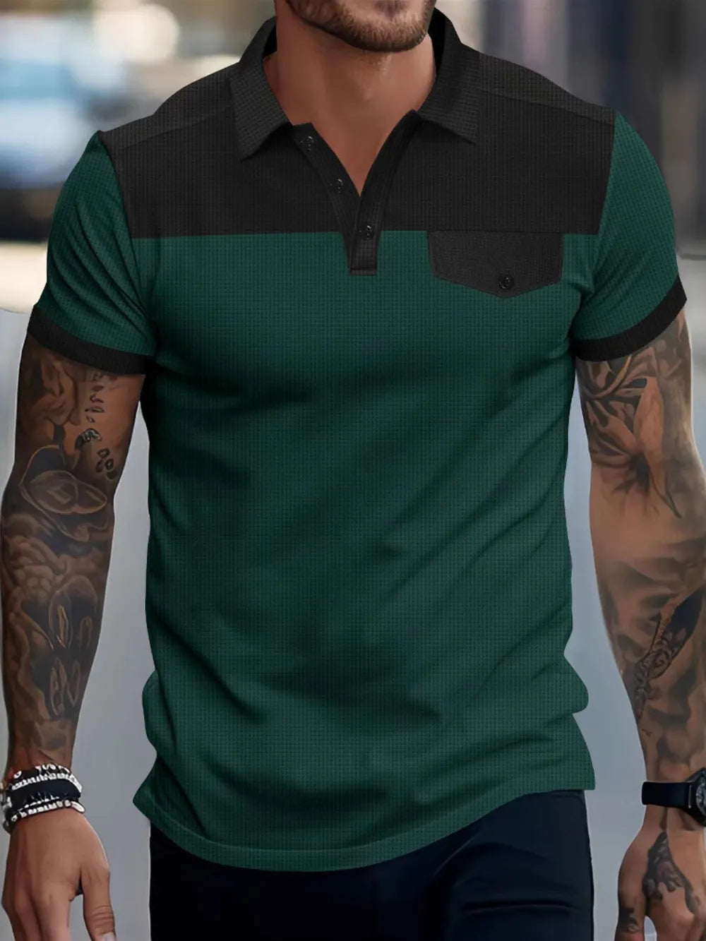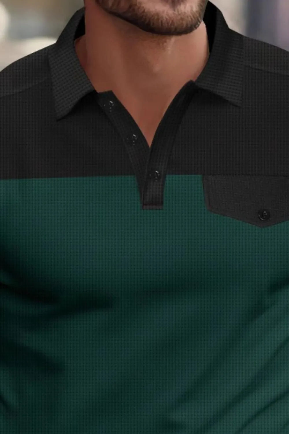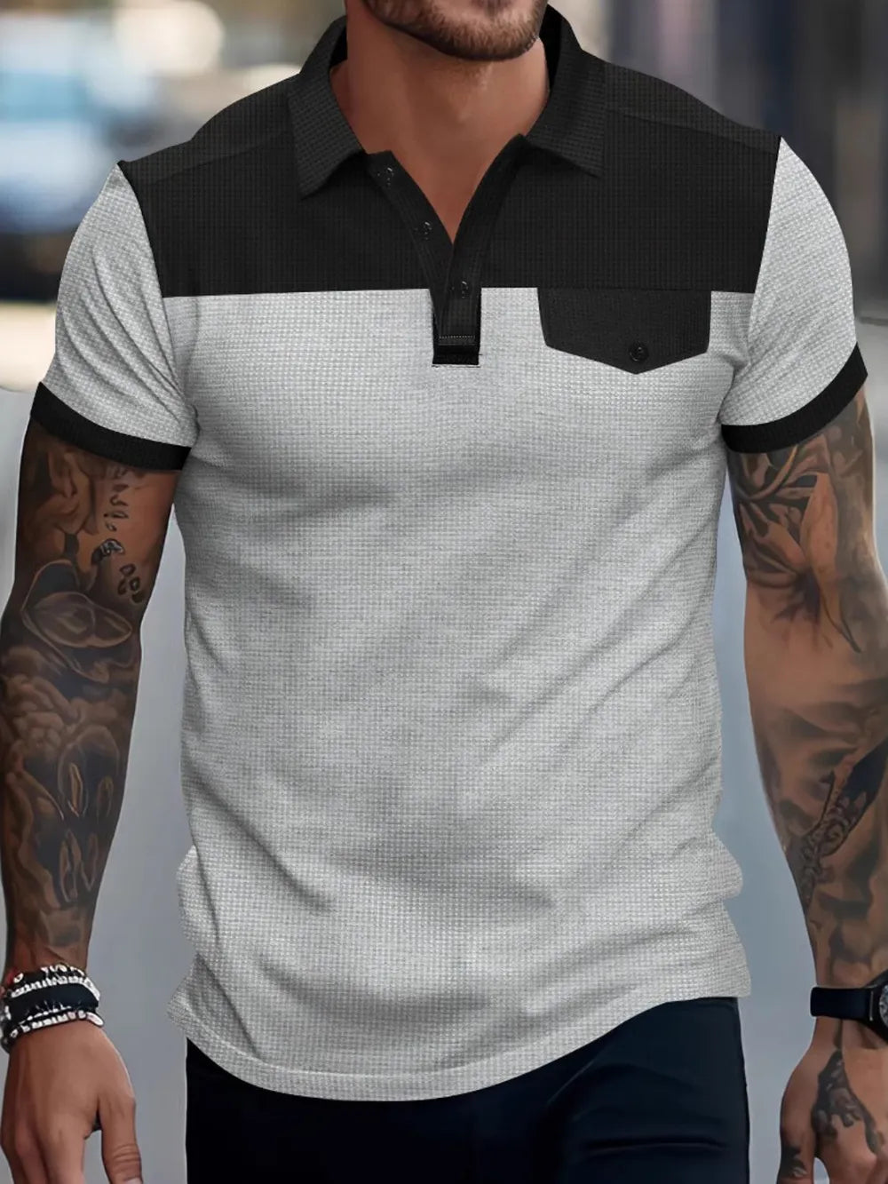Men's Full Size Waffle-Knit Collared Contrast Polo Plus Size