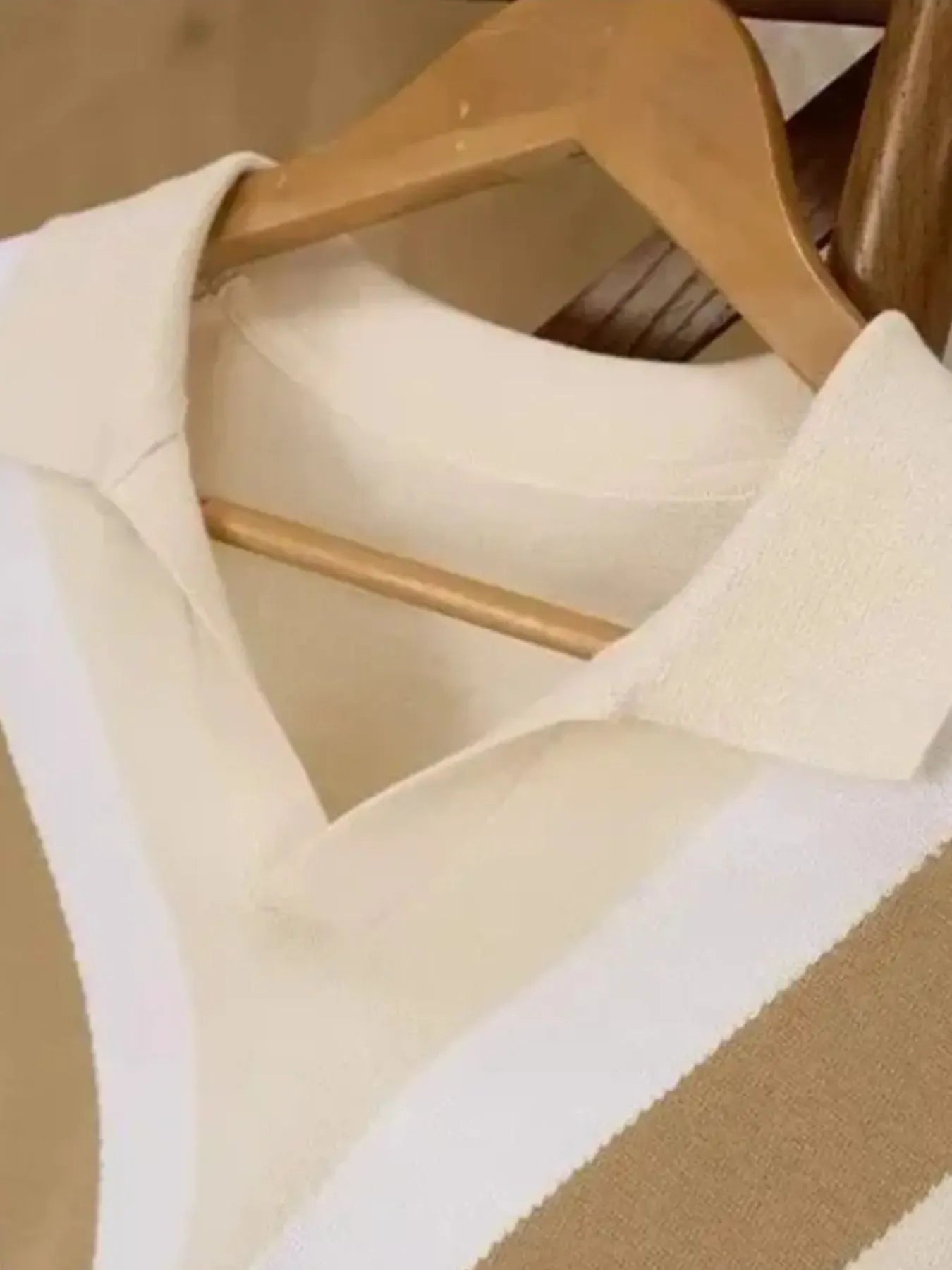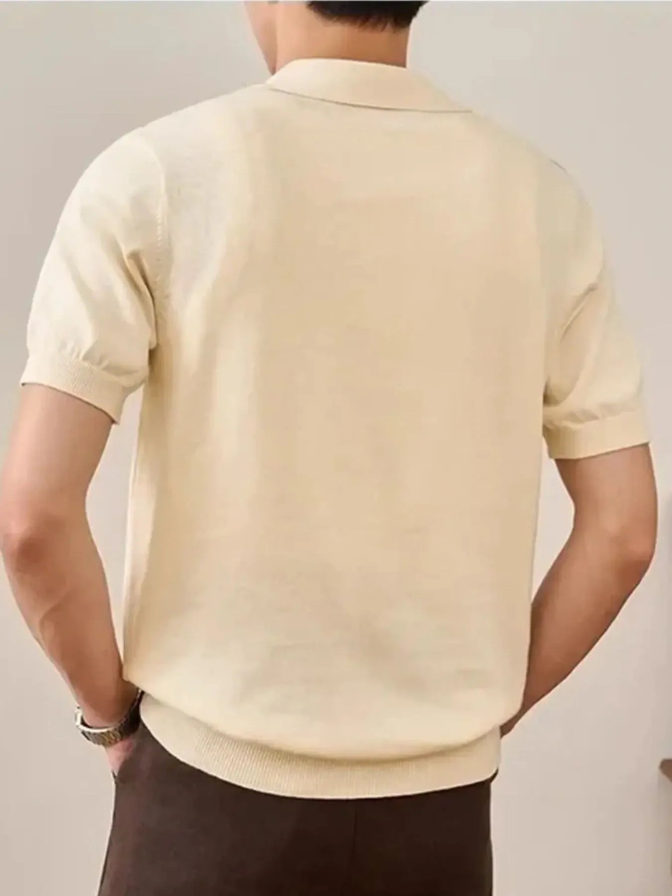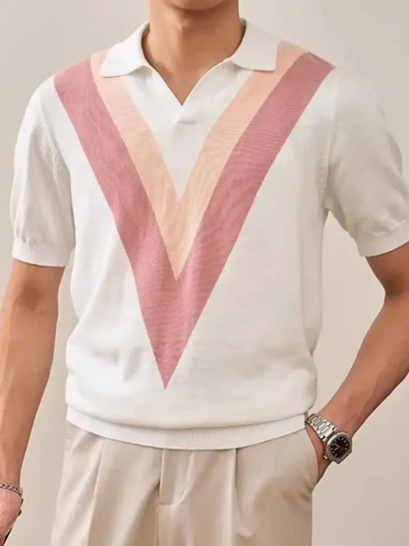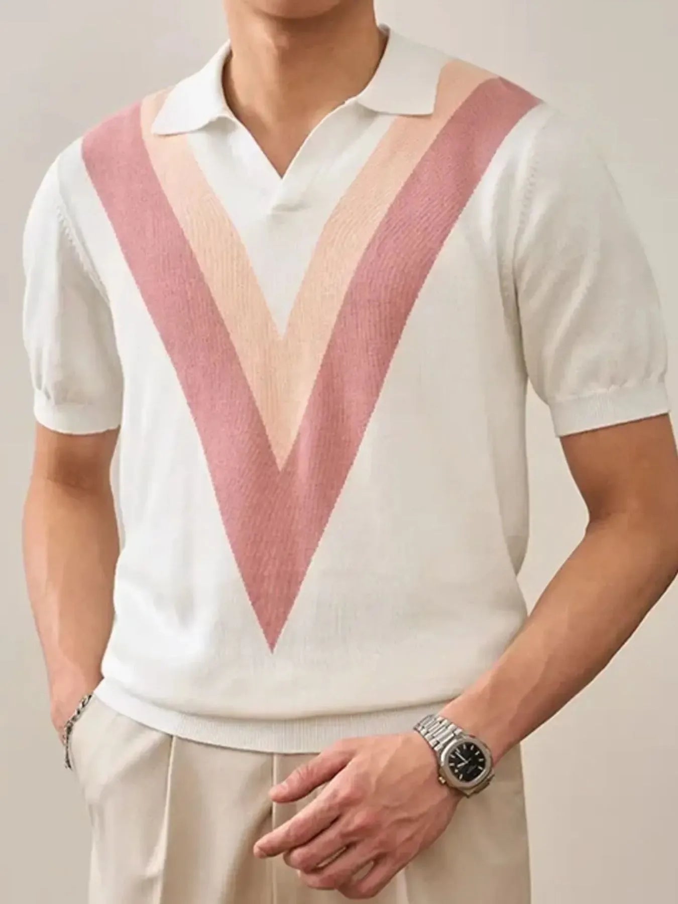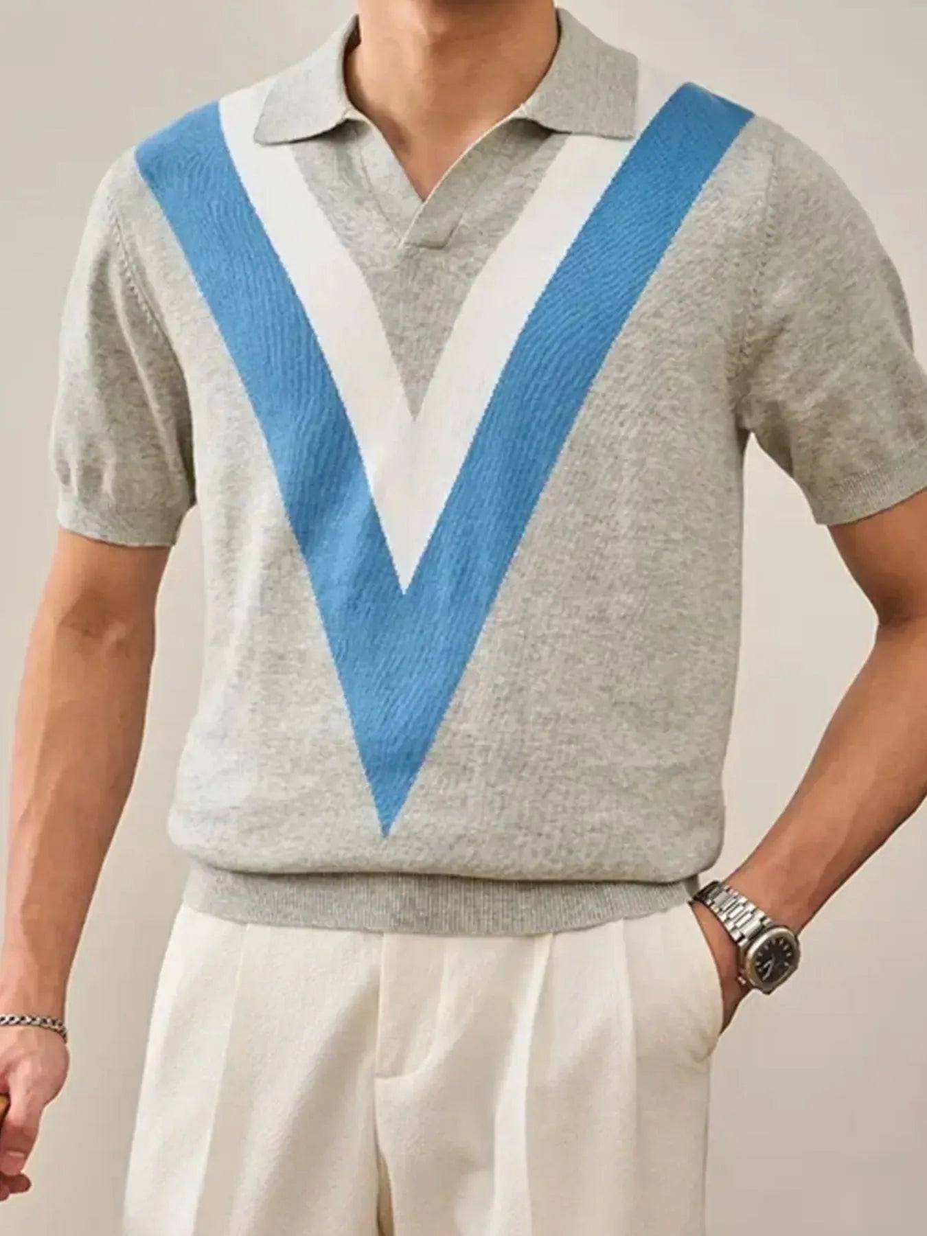 Men's Plus Size V-Pattern Contrast Knit Polo Shirt