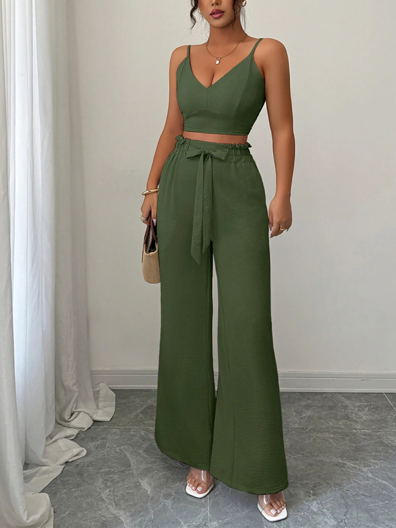 V-Neck Cami and Wide Leg Pants Set