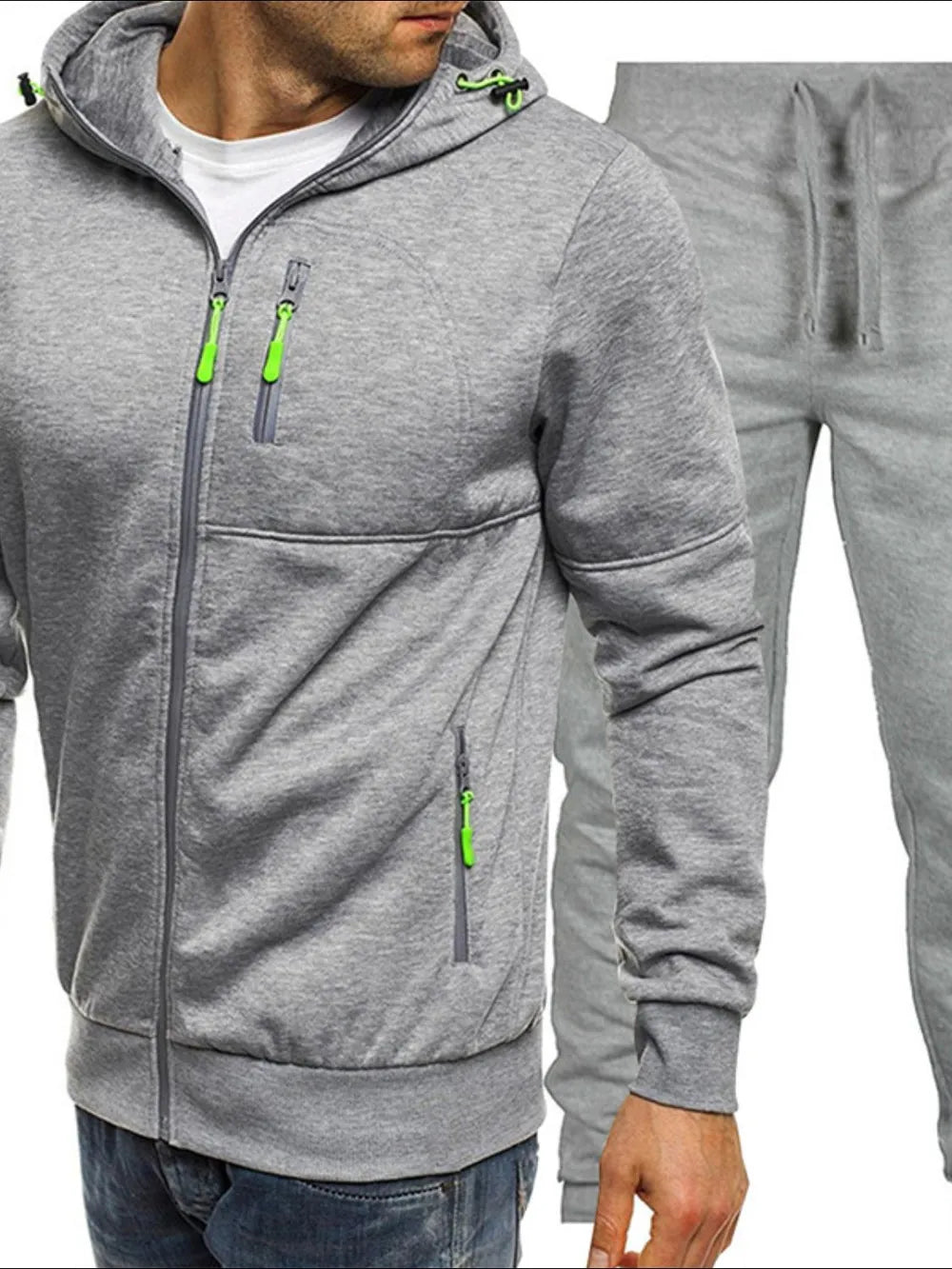 Men's Plus Size Zip Up Hooded Top and Pants Set