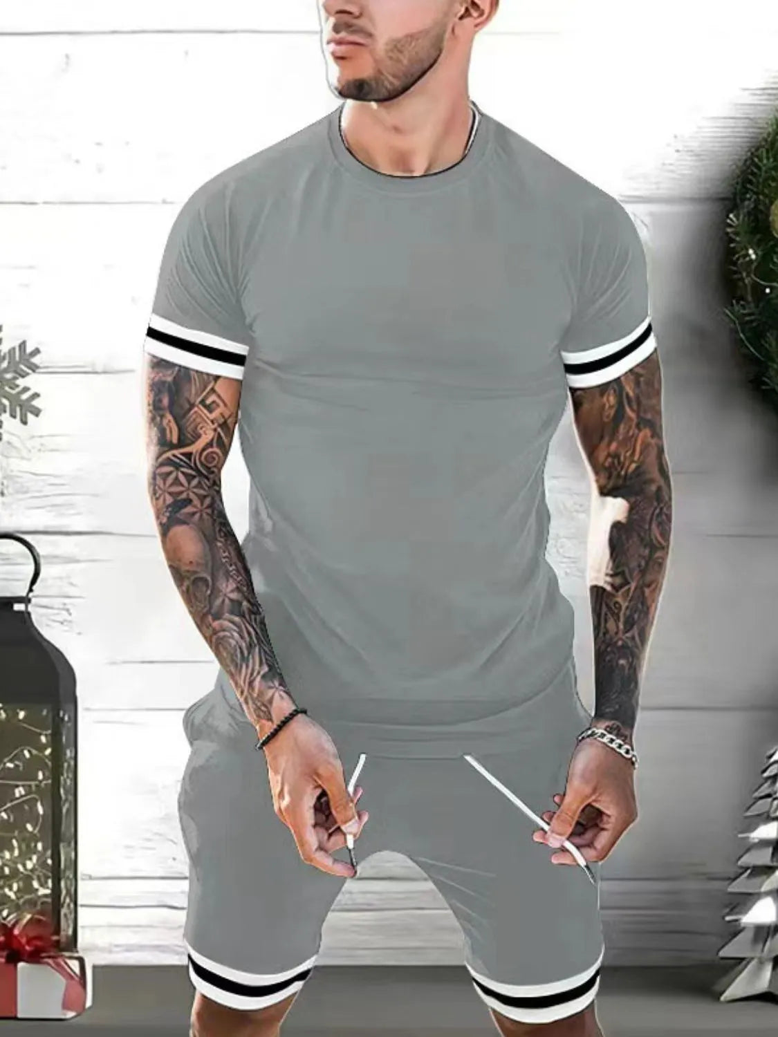 Men's Plus Size Round Neck Short Sleeve Top and Shorts Set