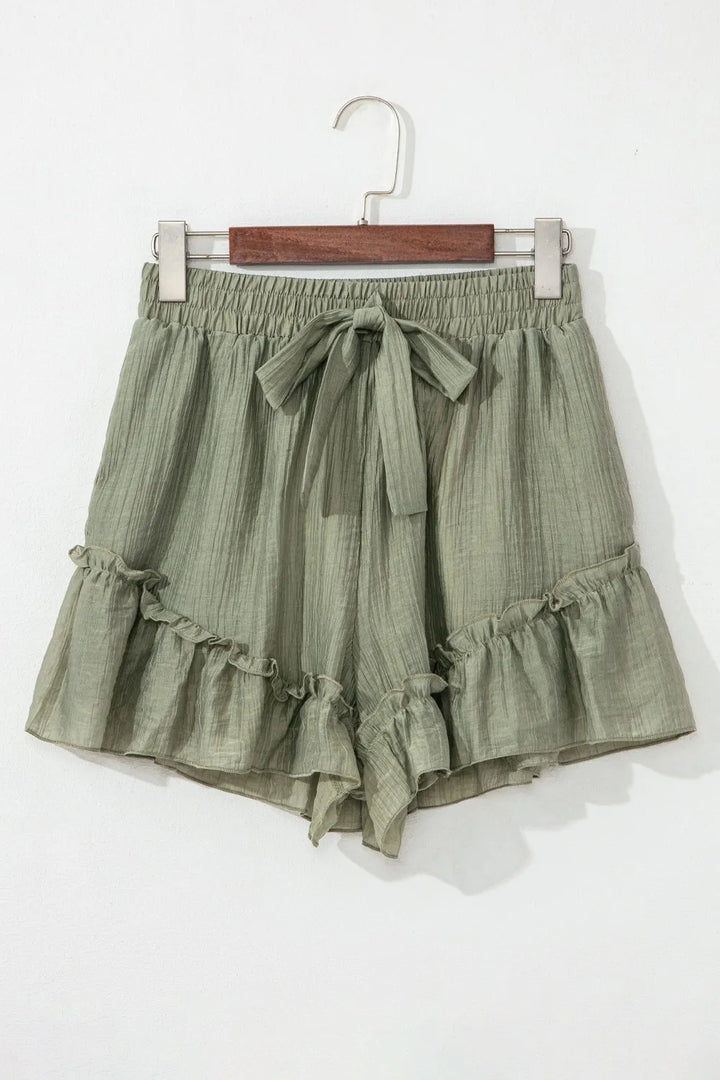 Textured Tie Waist Ruffle Hem Shorts