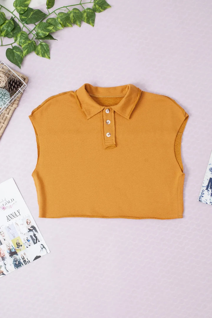 Collared Neck Cap Sleeve T-Shirt
