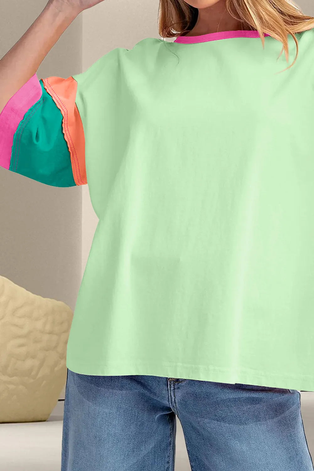 Color Block Round Neck Half Sleeve T-Shirt