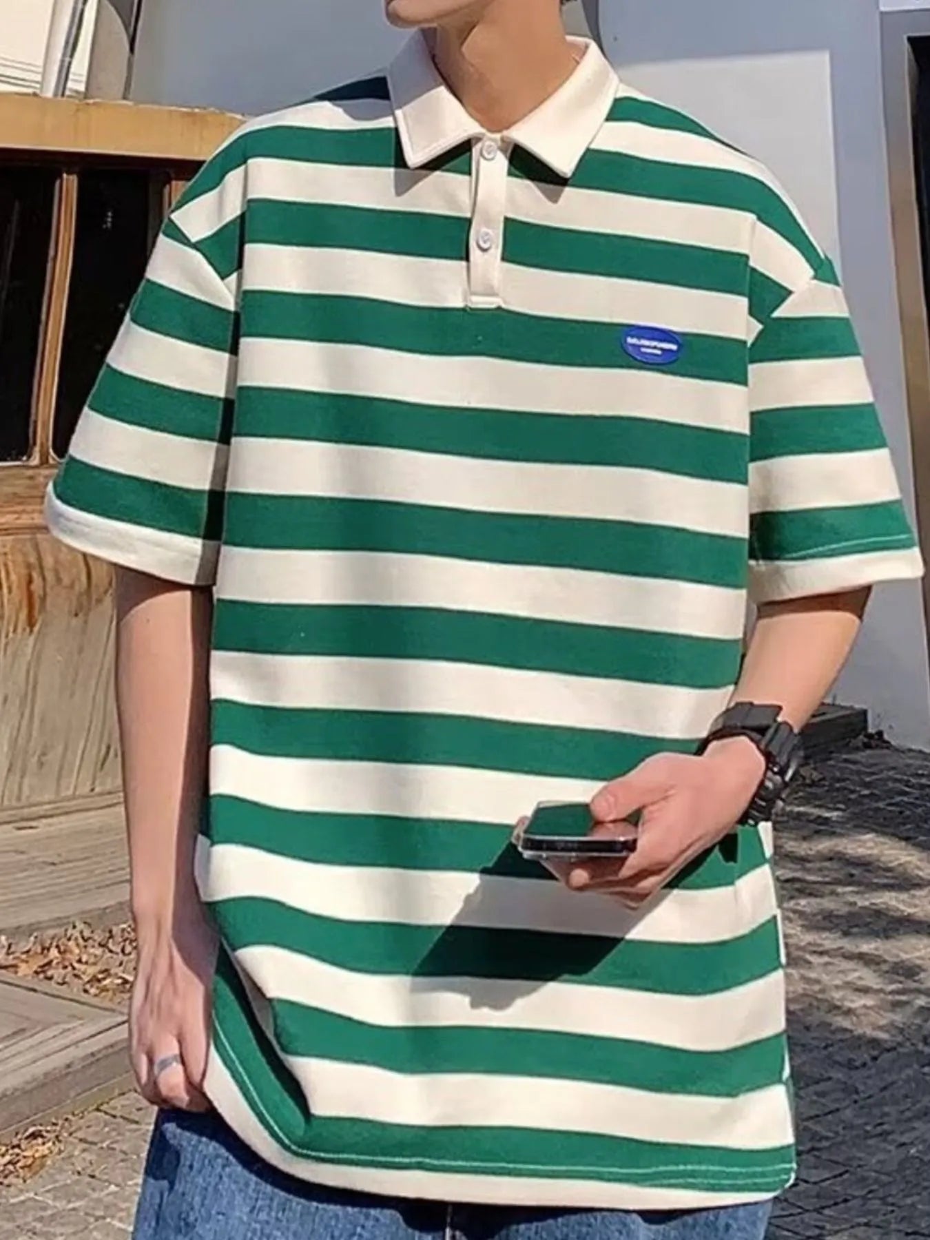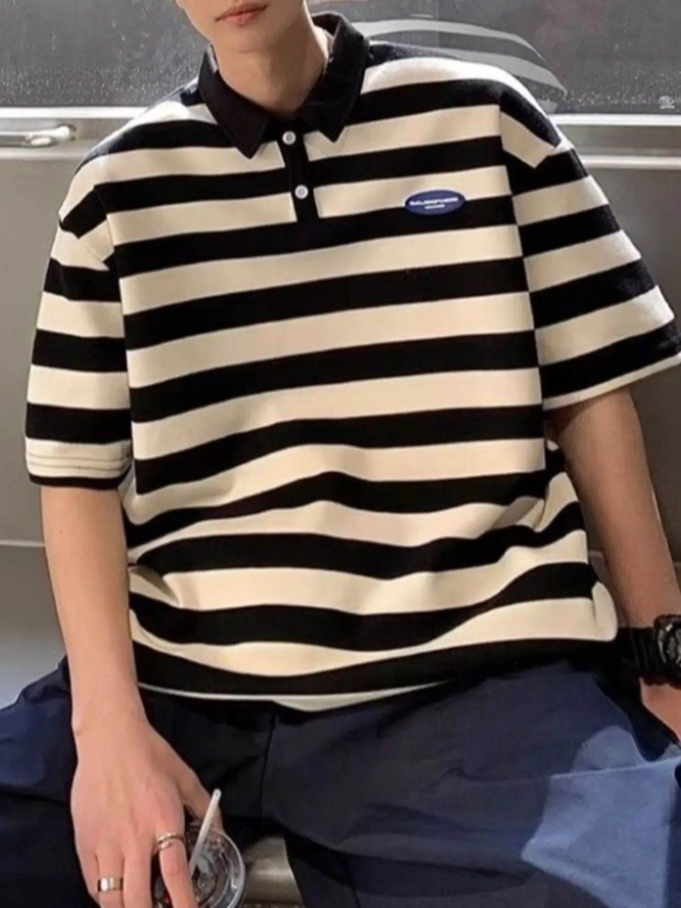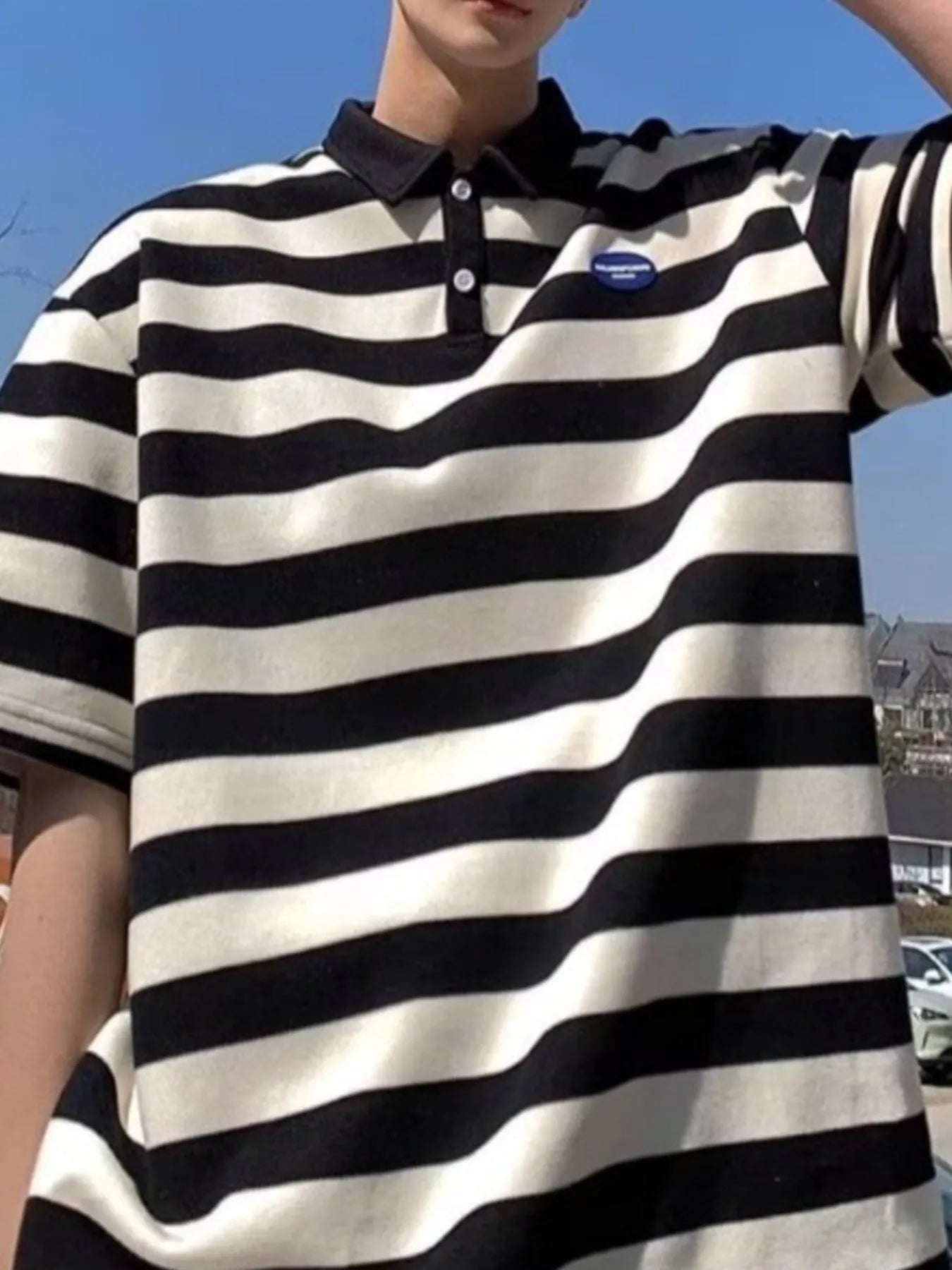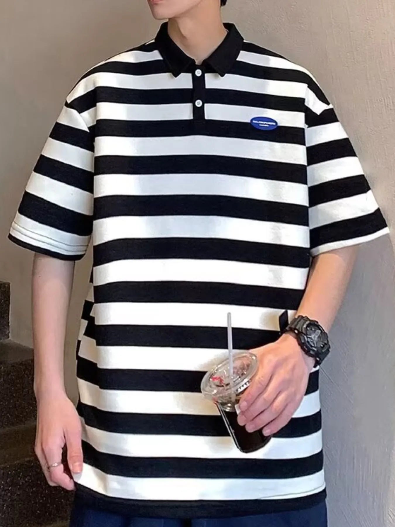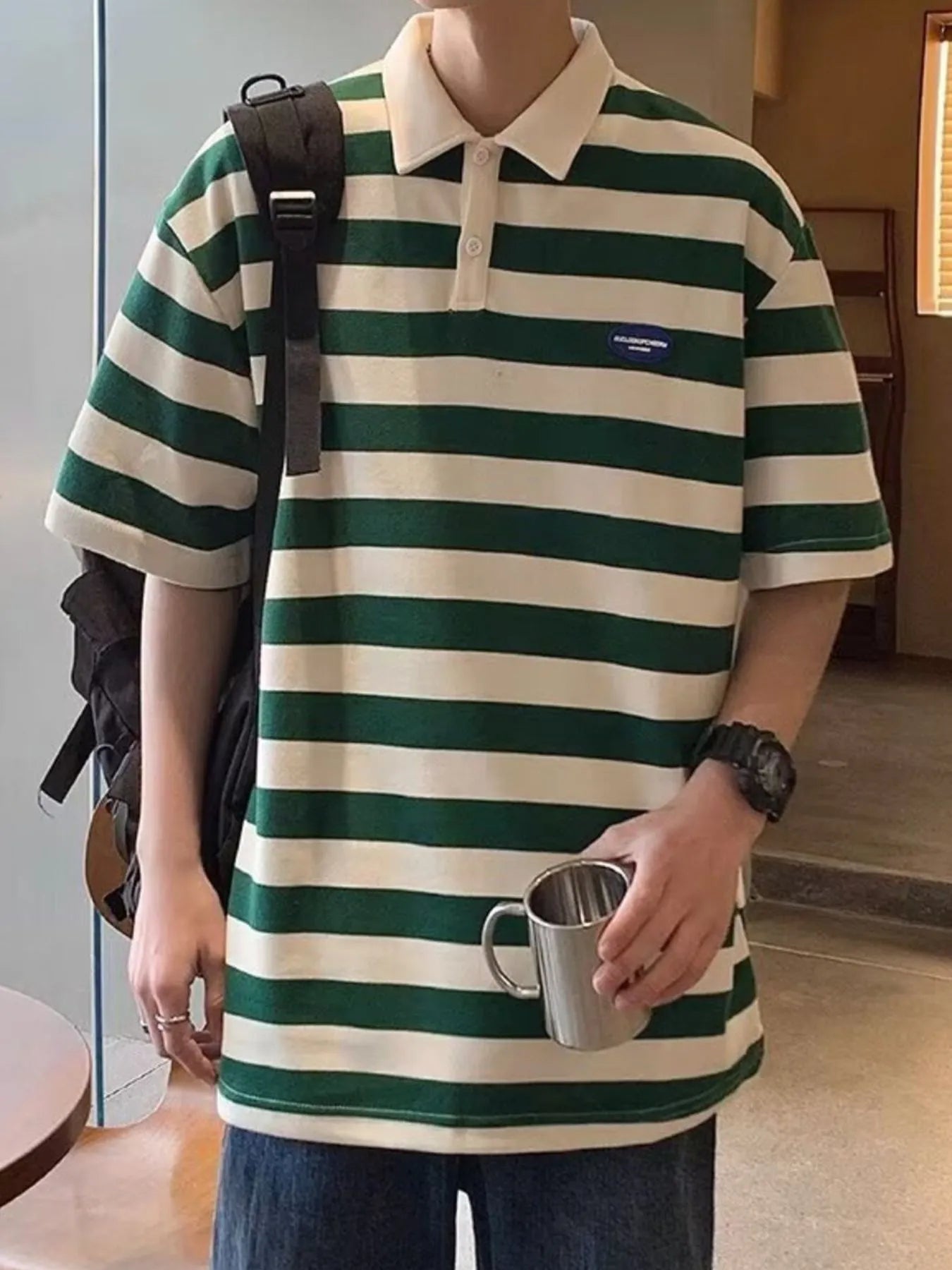 Men's Plus Size Striped Short Sleeve Oversized Polo