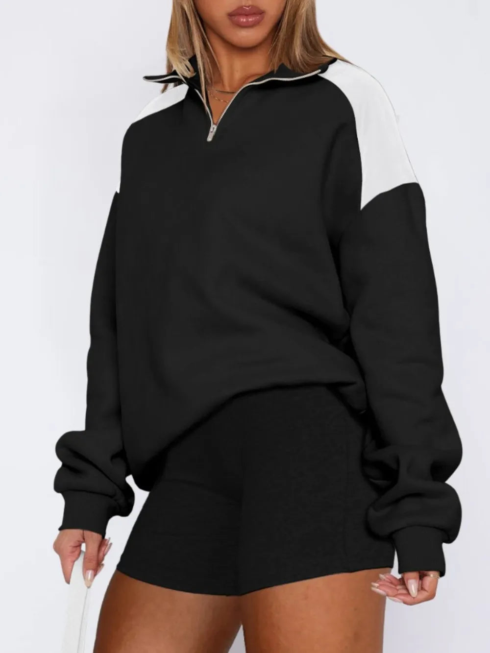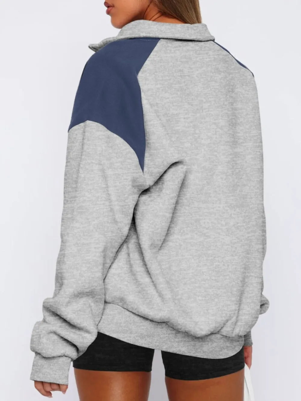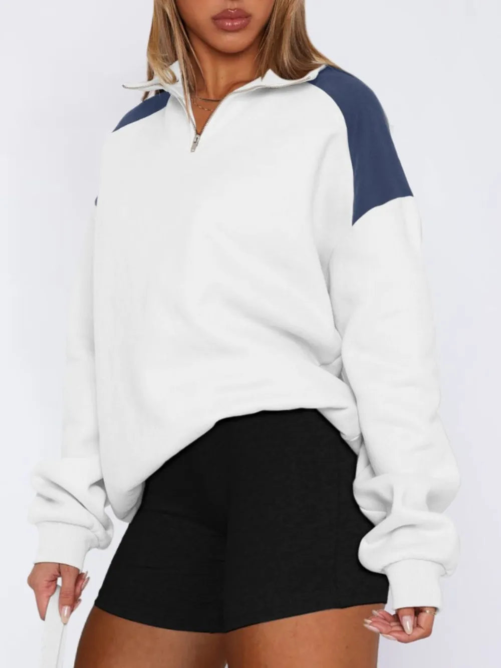 Contrast Quarter Zip Long Sleeve Sweatshirt