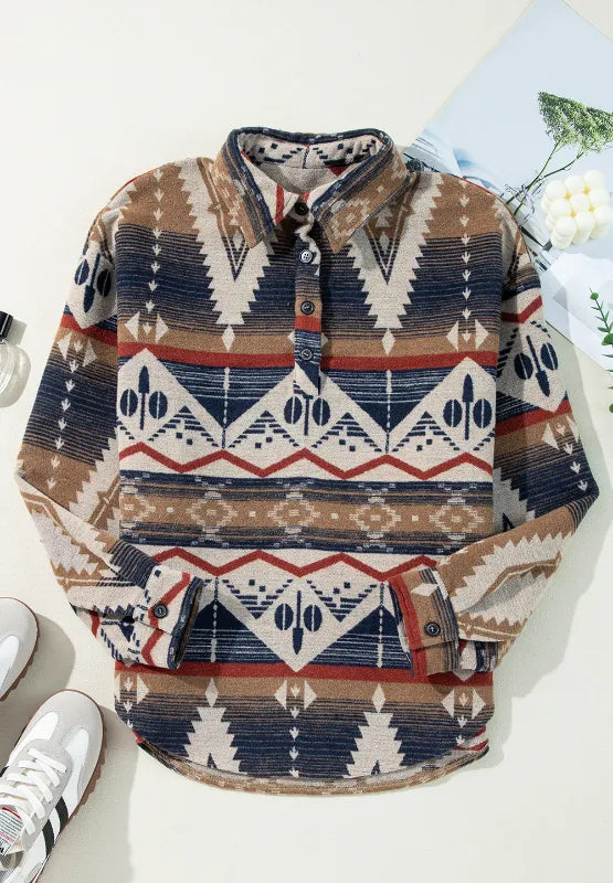 Geometric Half Button Long Sleeve Sweatshirt