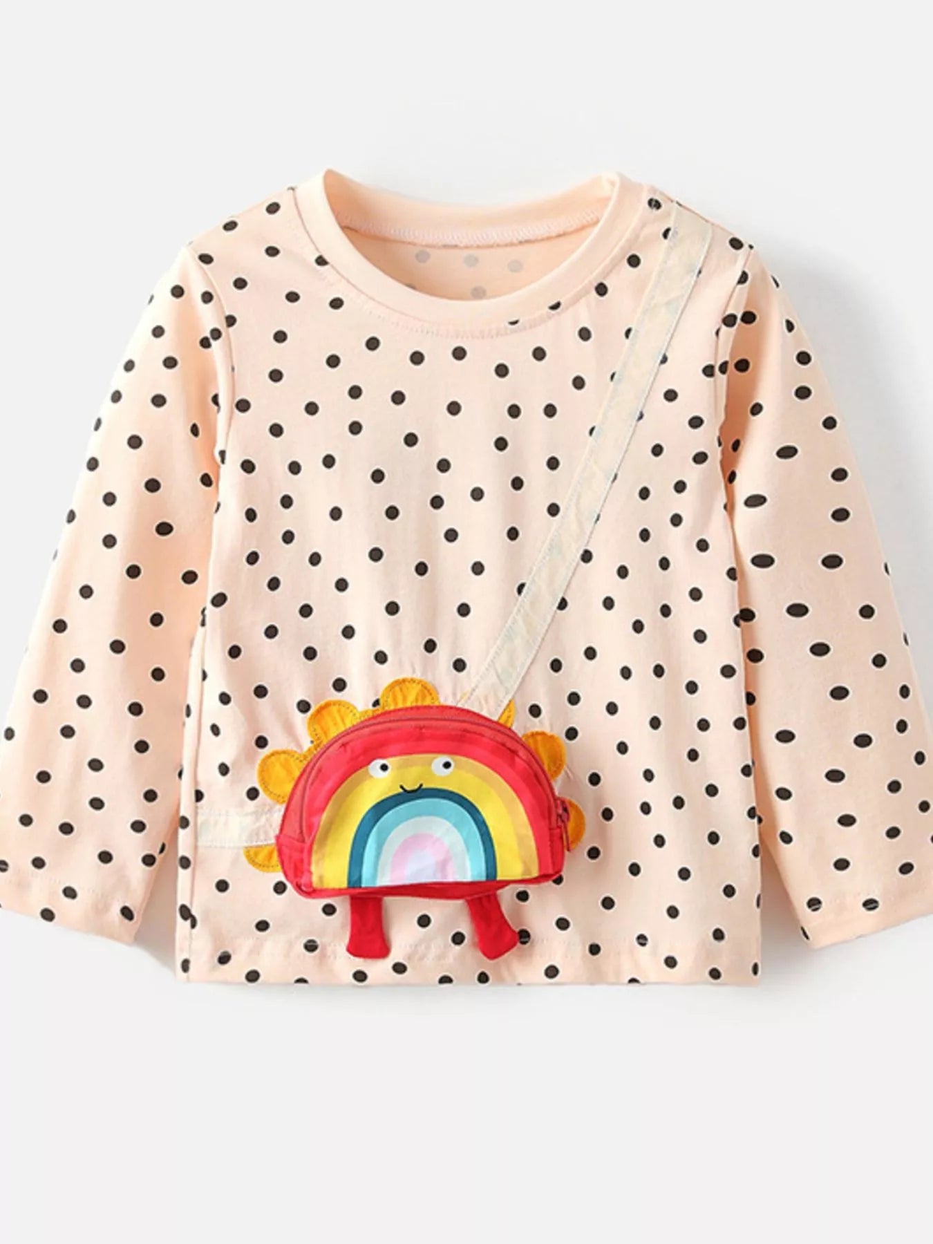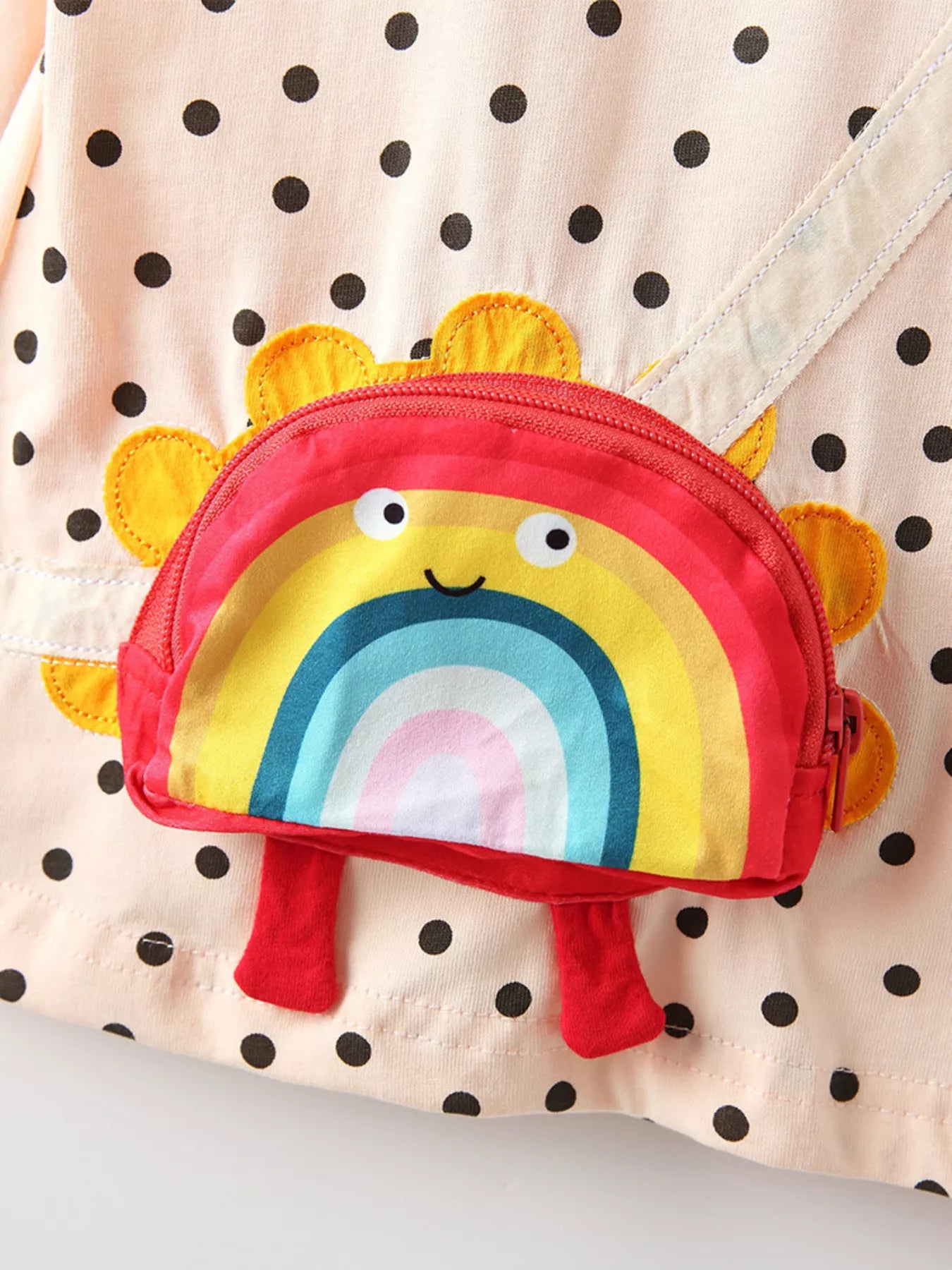 Children's Rainbow Dinosaur Applique Polka Dot T-Shirt