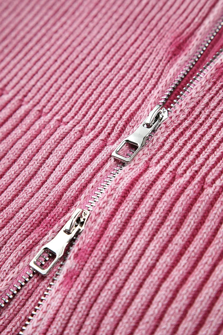 Double Take Ribbed Off-Shoulder Zip Up Long Sleeve Cardigan