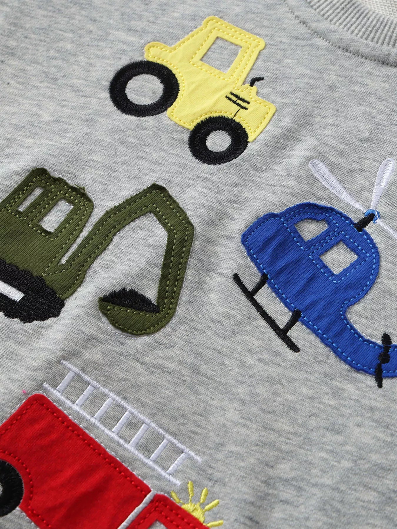 Children's Cartoon Vehicle Graphic Crew Neck Sweatshirt