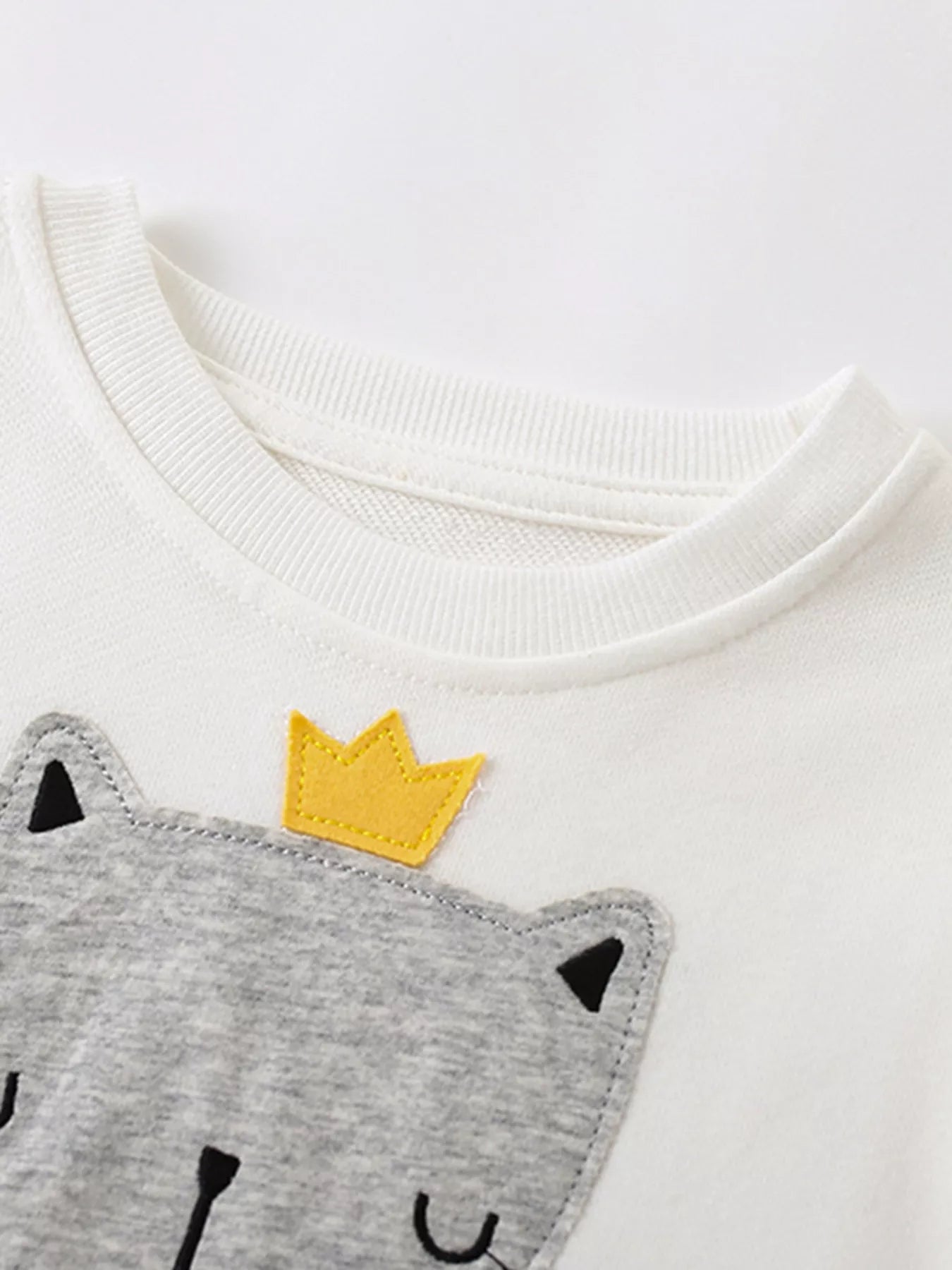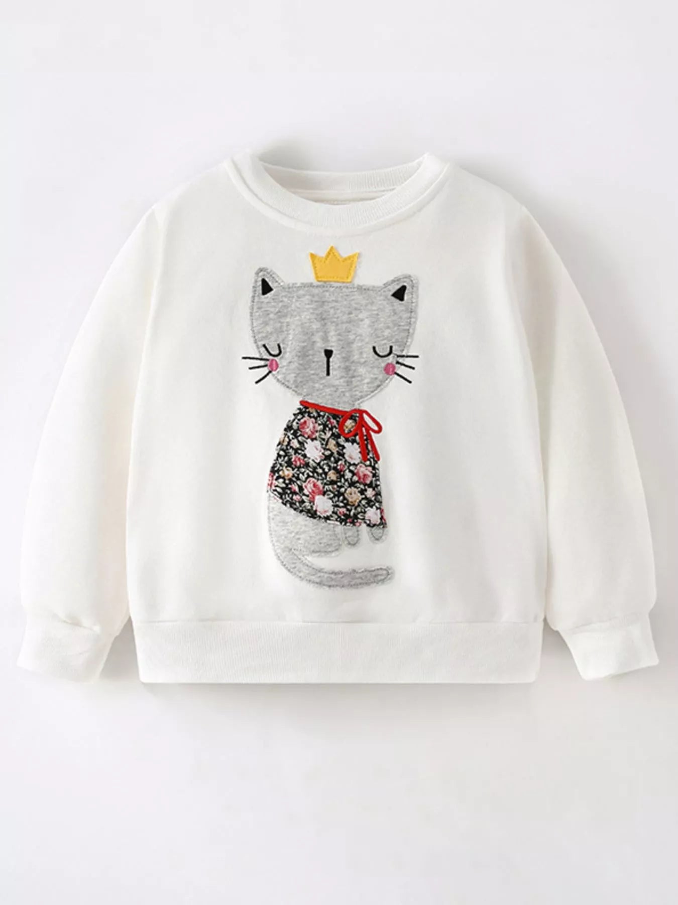 Children's Cute Cat Applique Crewneck Sweatshirt