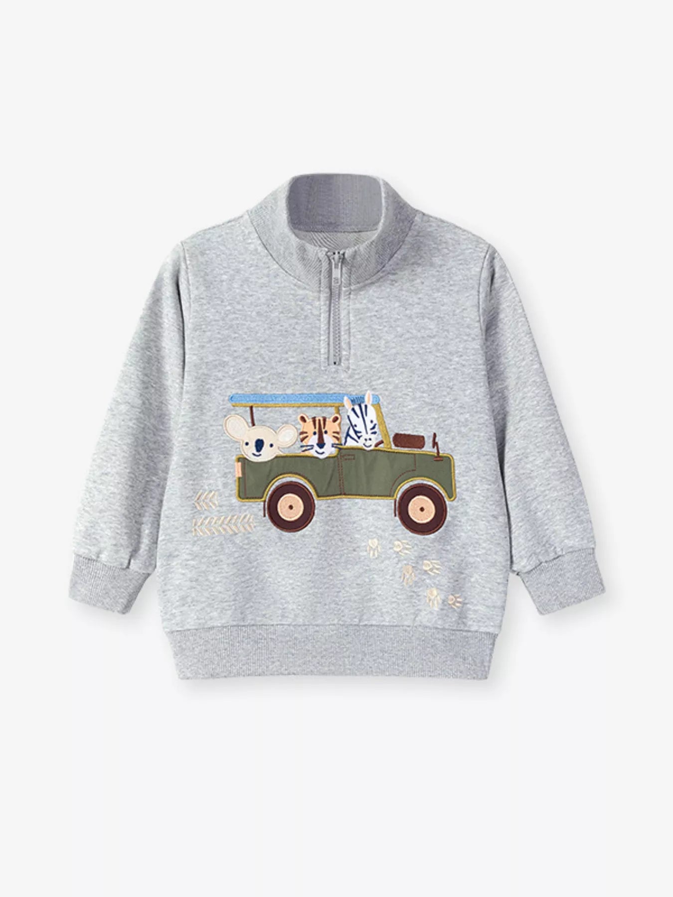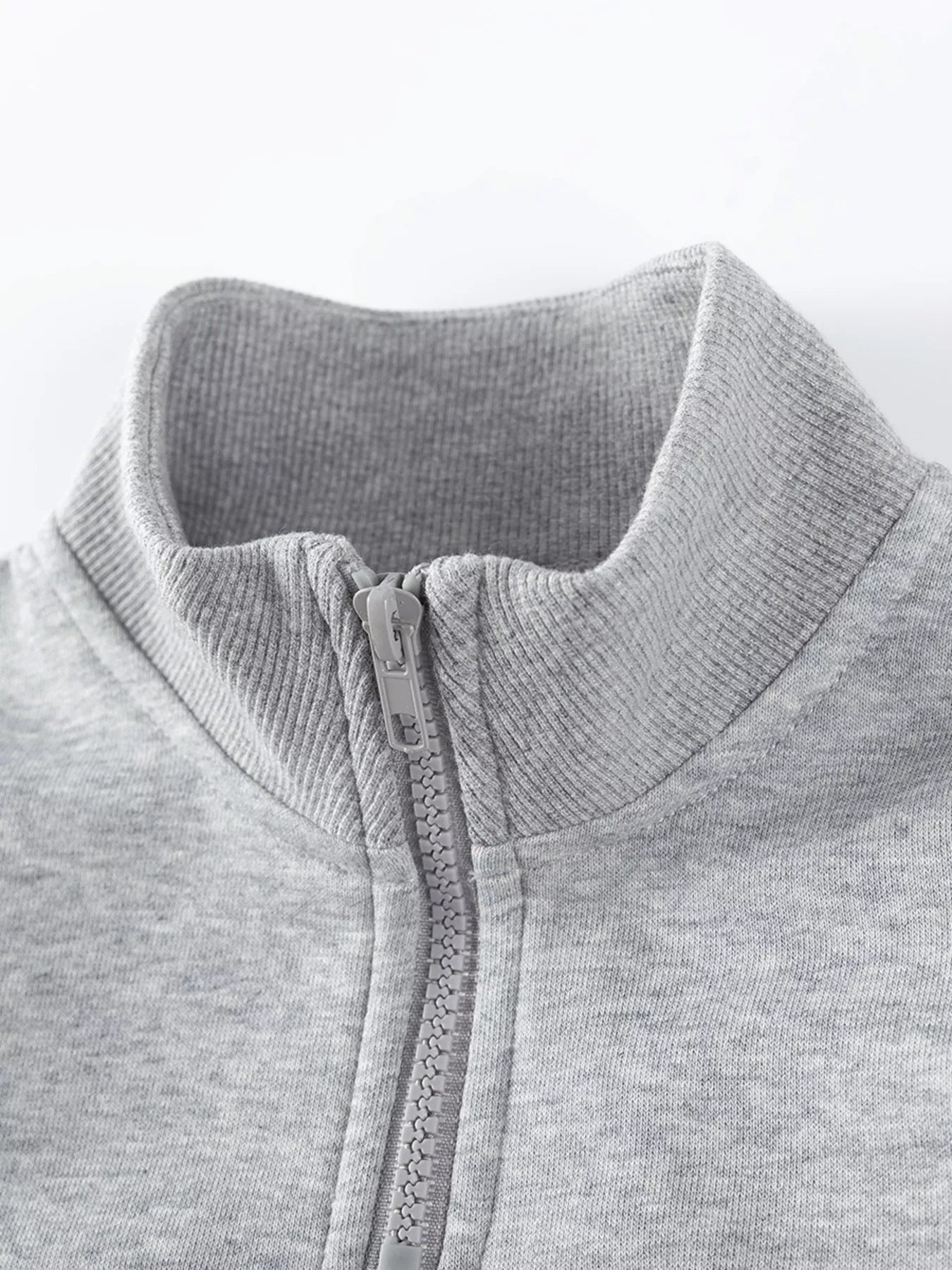 A stylish and comfortable zip-up hoodie for kids, featuring embroidered details and practical pockets. Made from 100% cotton for breathable, everyday comfort.