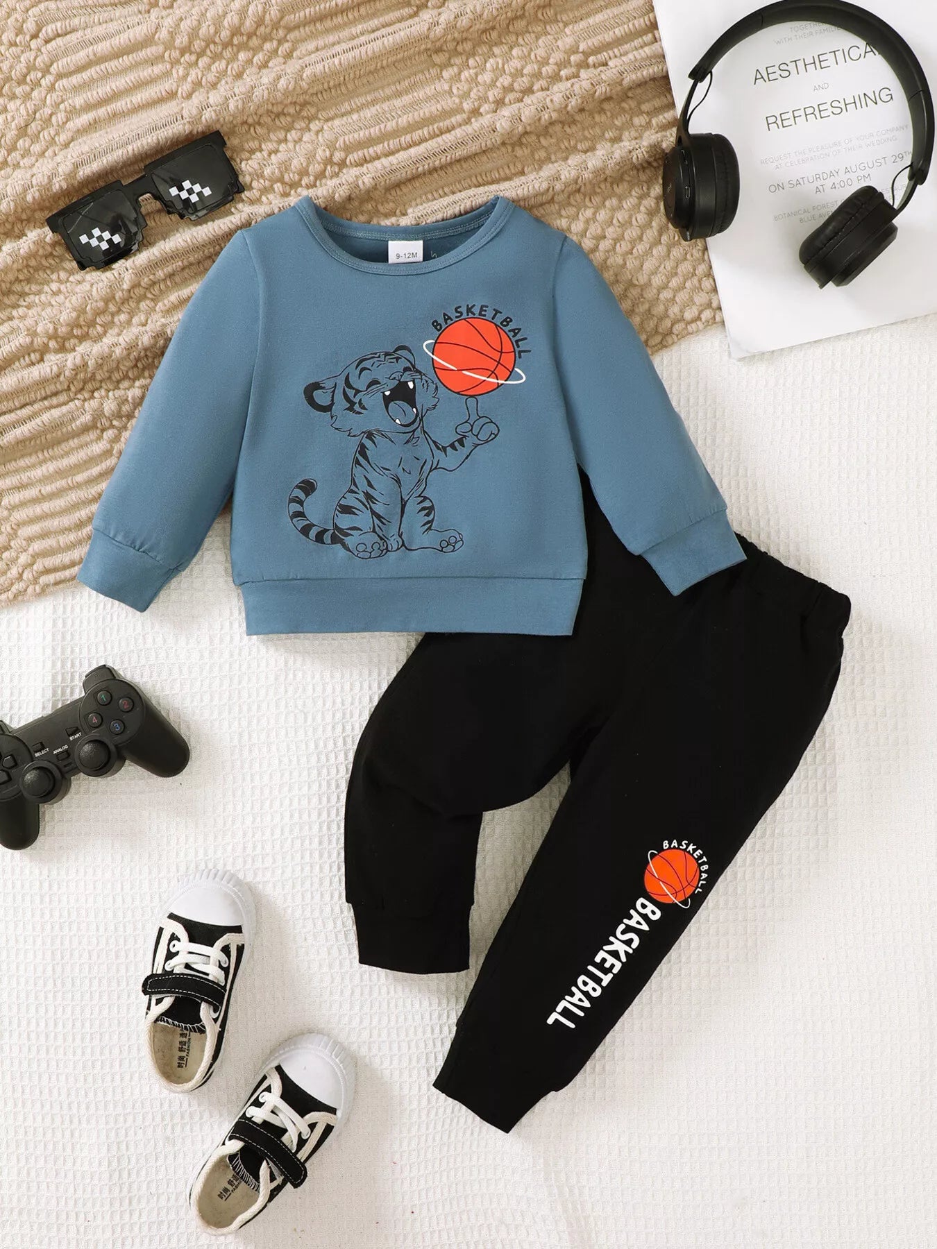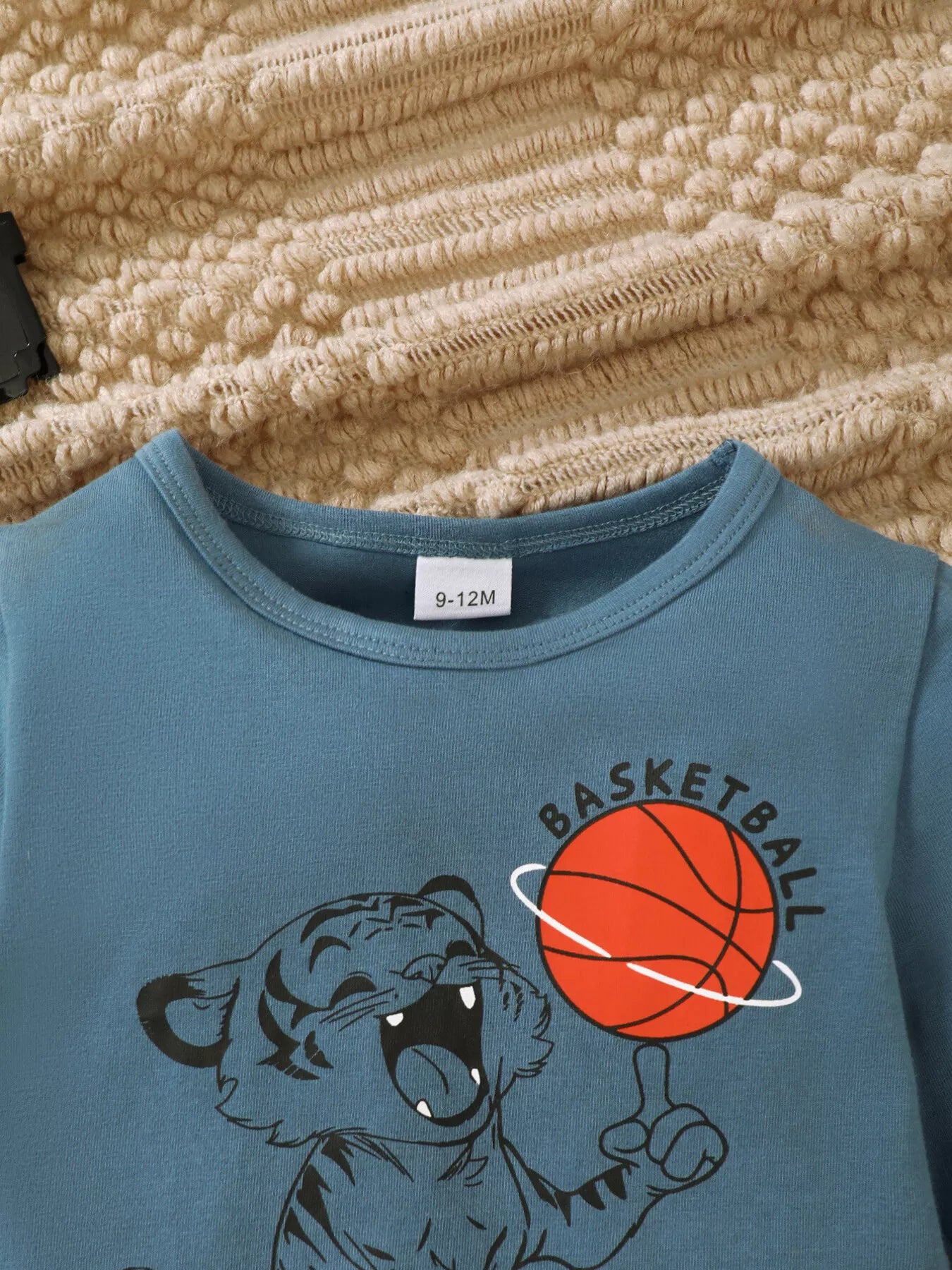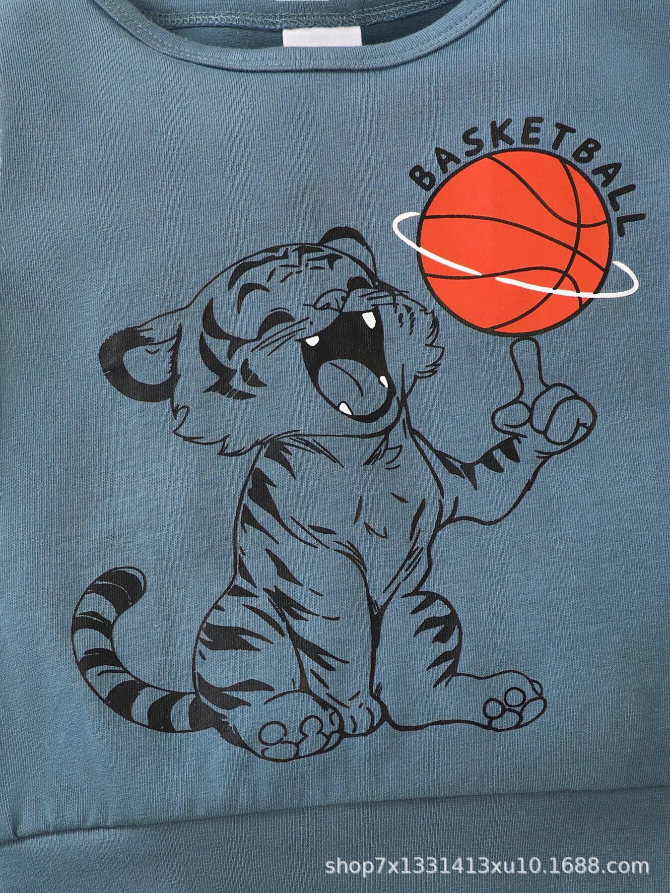 Children's Tiger Basketball Graphic Top and Pants Casual Set