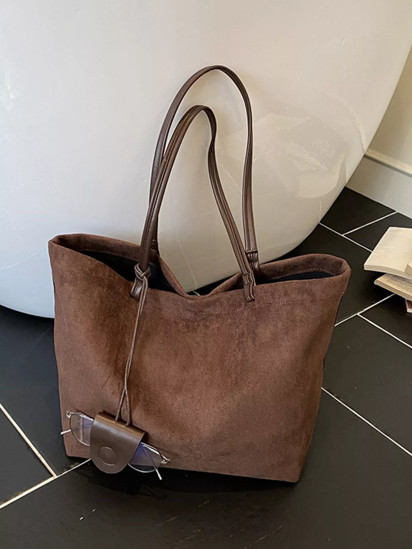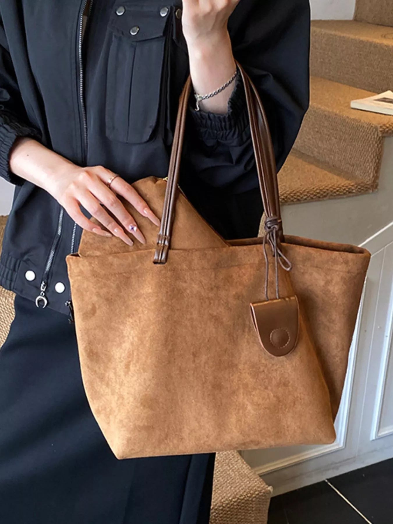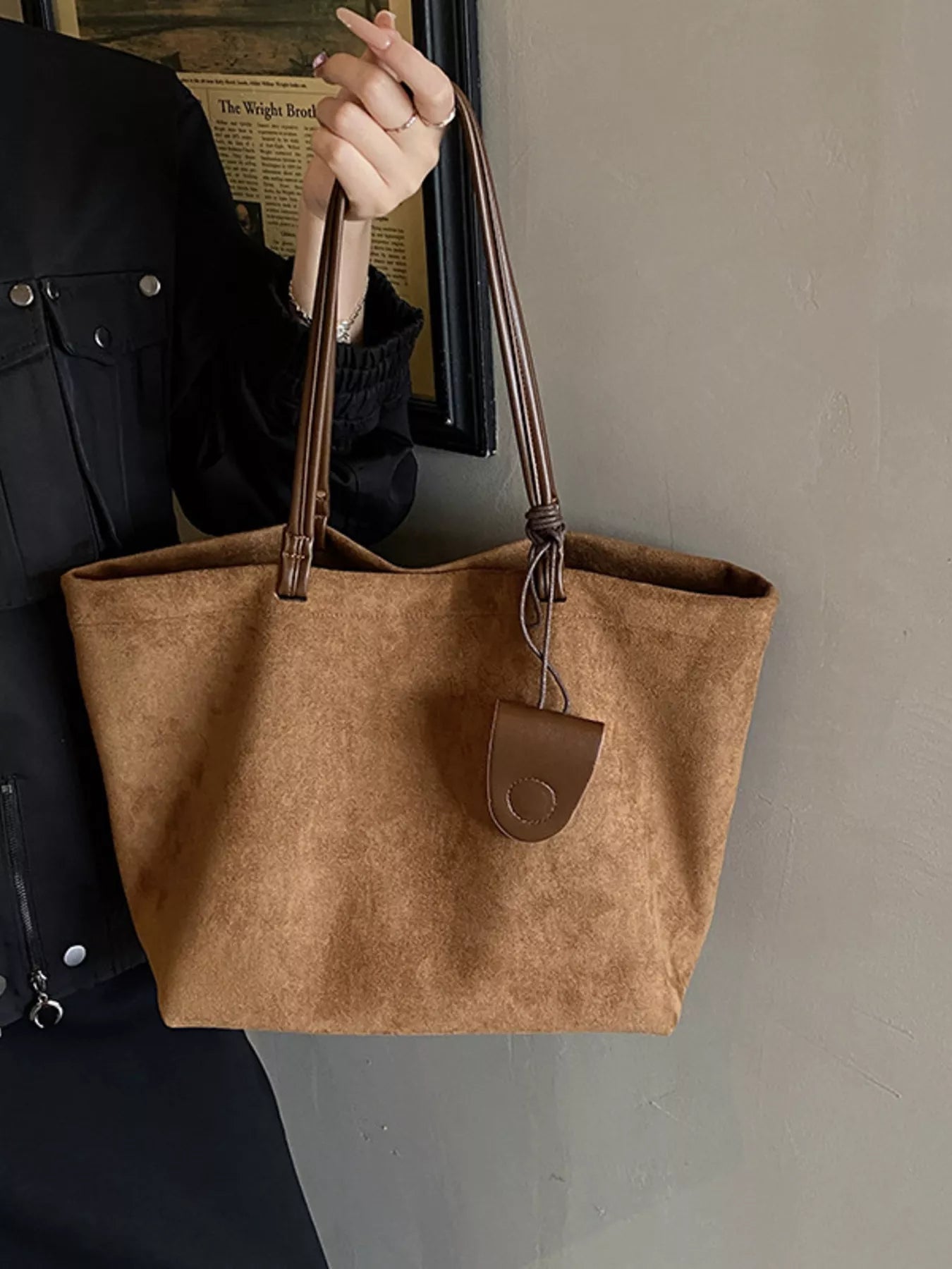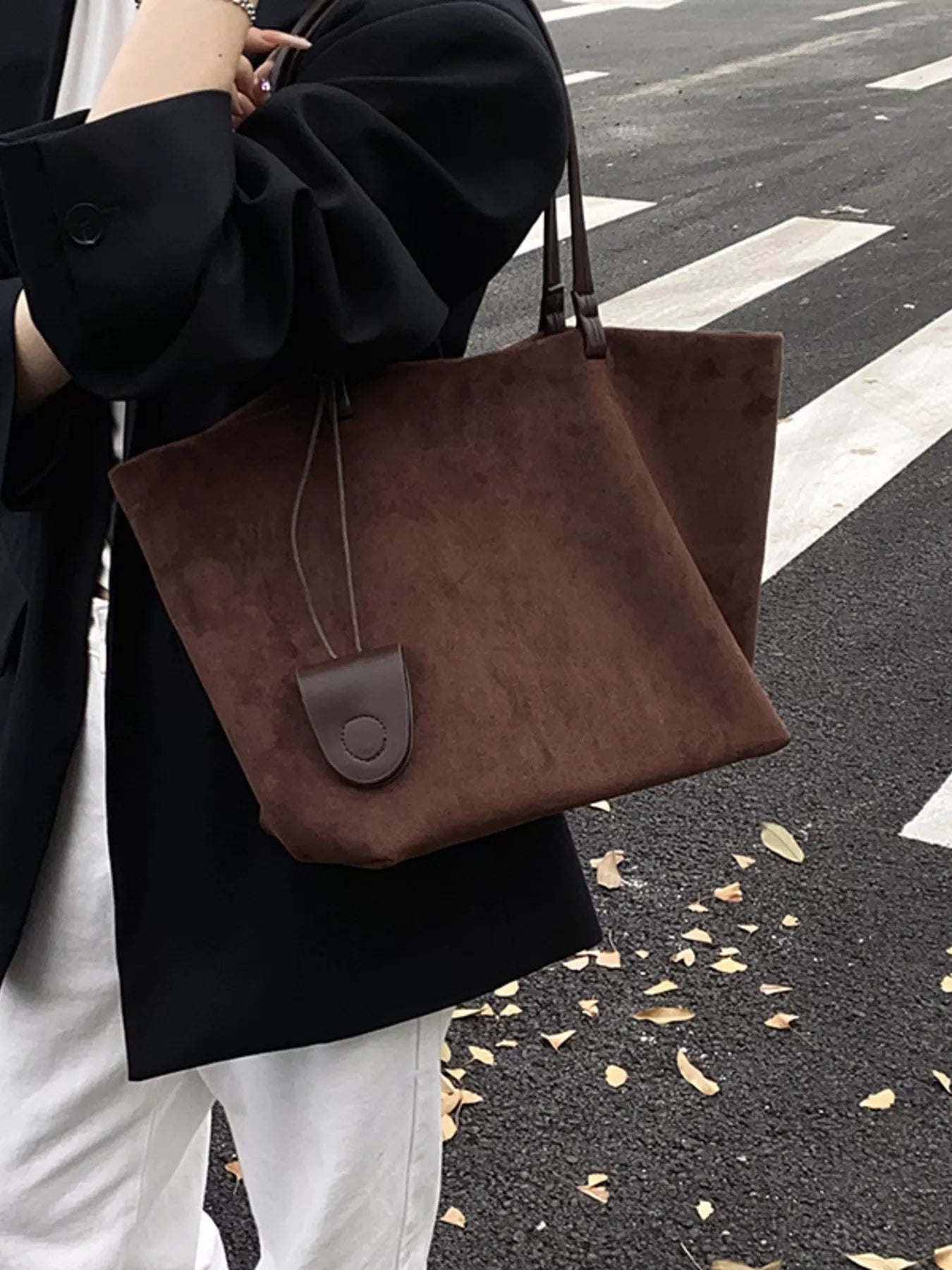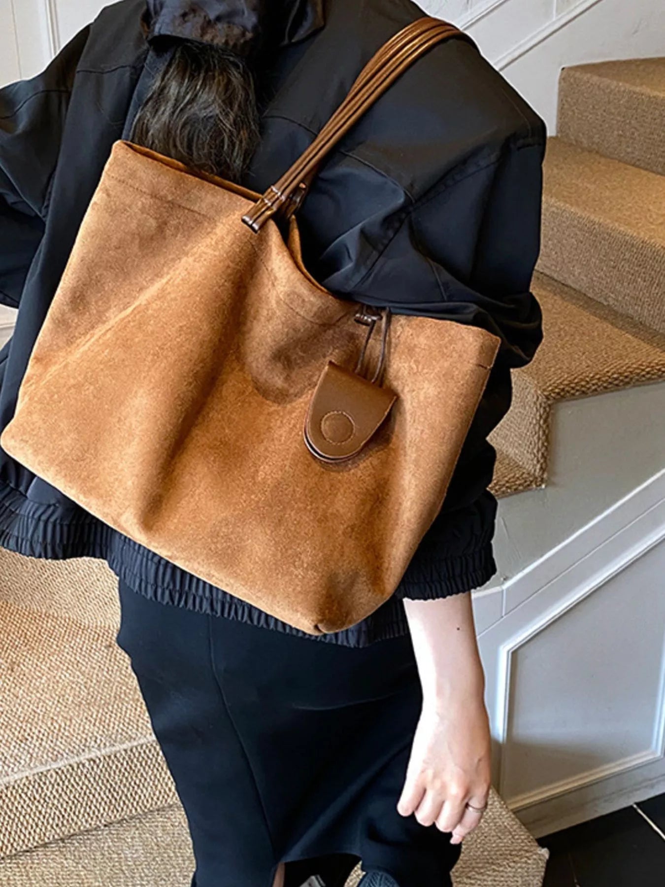 A spacious and stylish suede tote bag designed with a soft texture, elegant structure, and plenty of room for daily essentials.