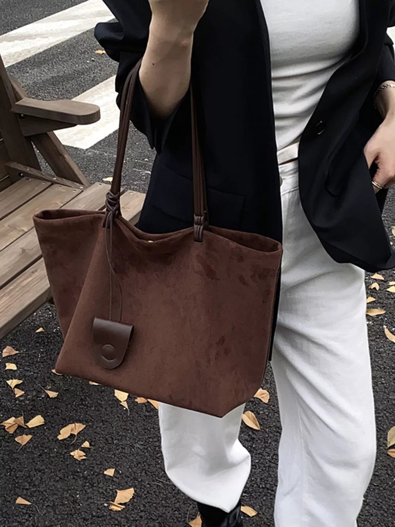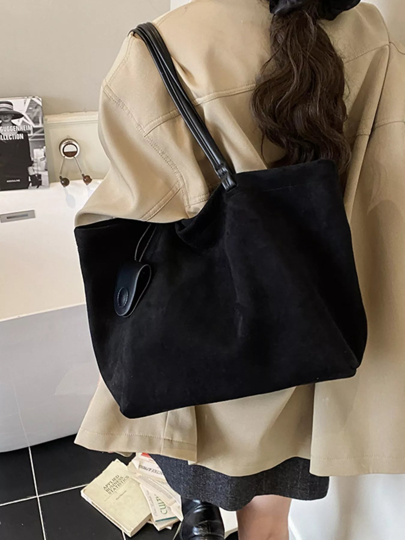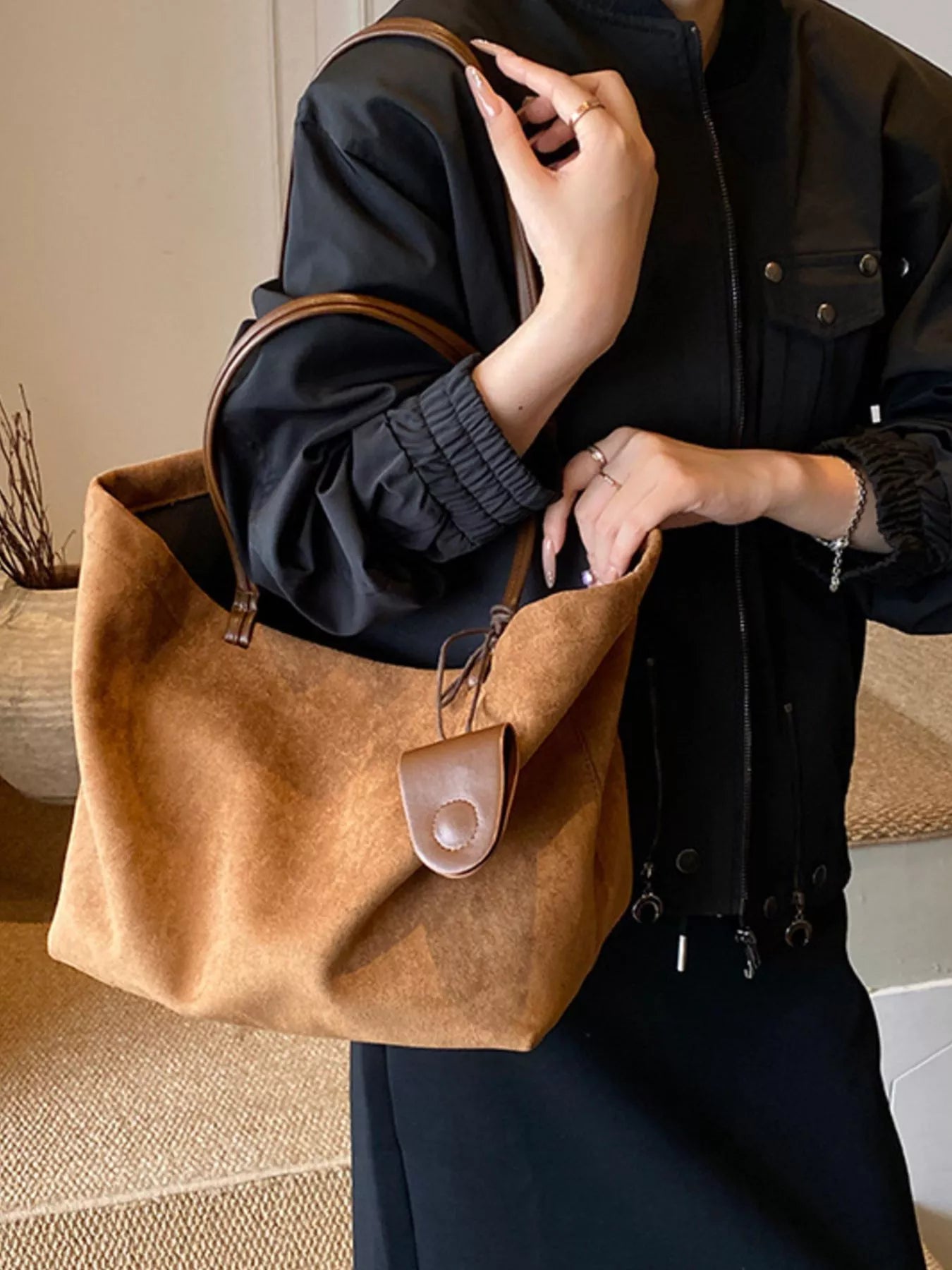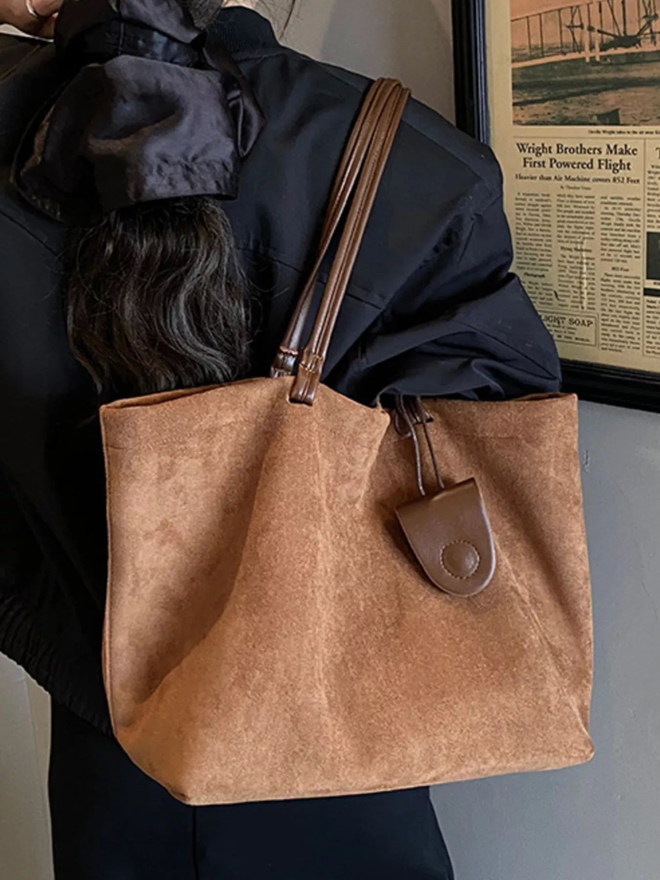 A spacious and stylish suede tote bag designed with a soft texture, elegant structure, and plenty of room for daily essentials.