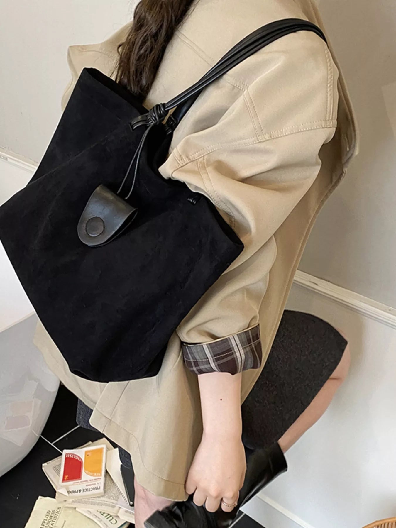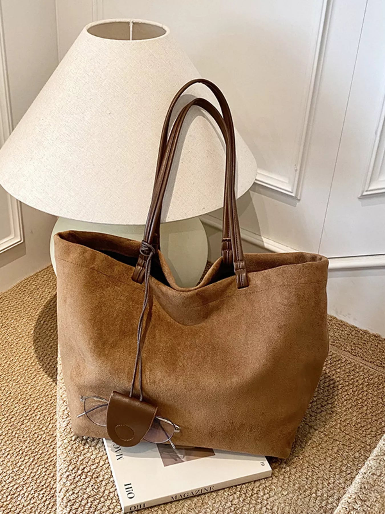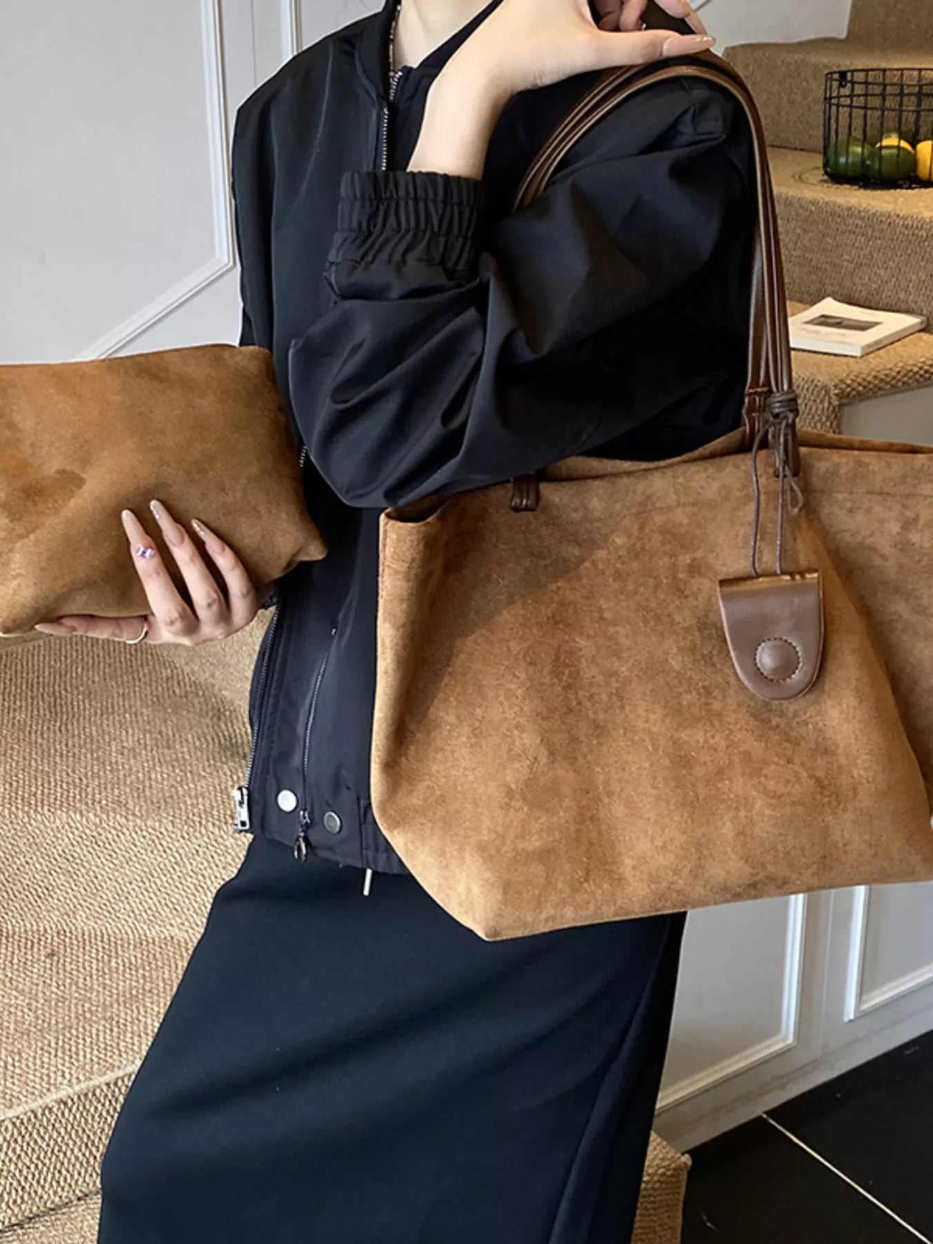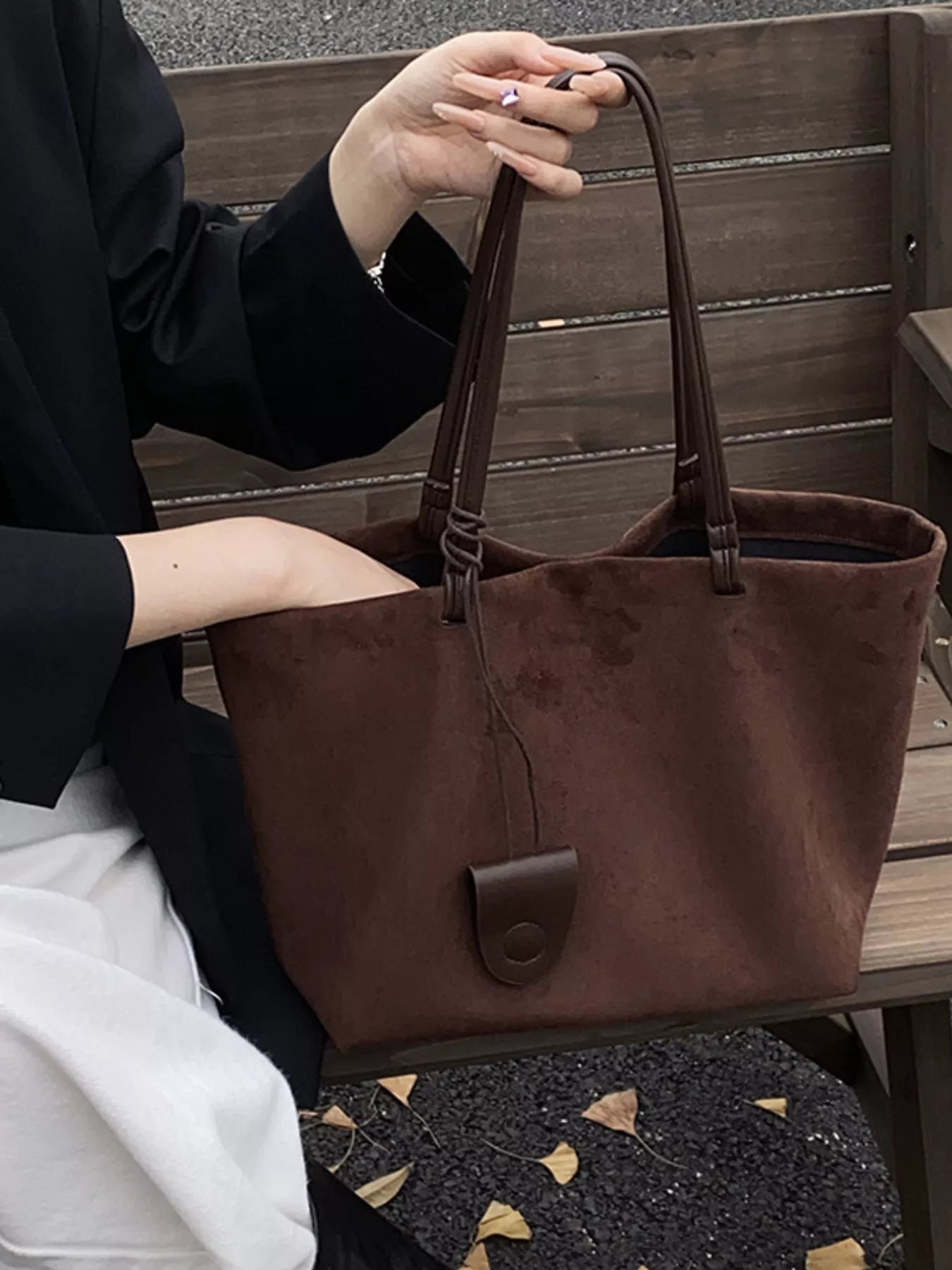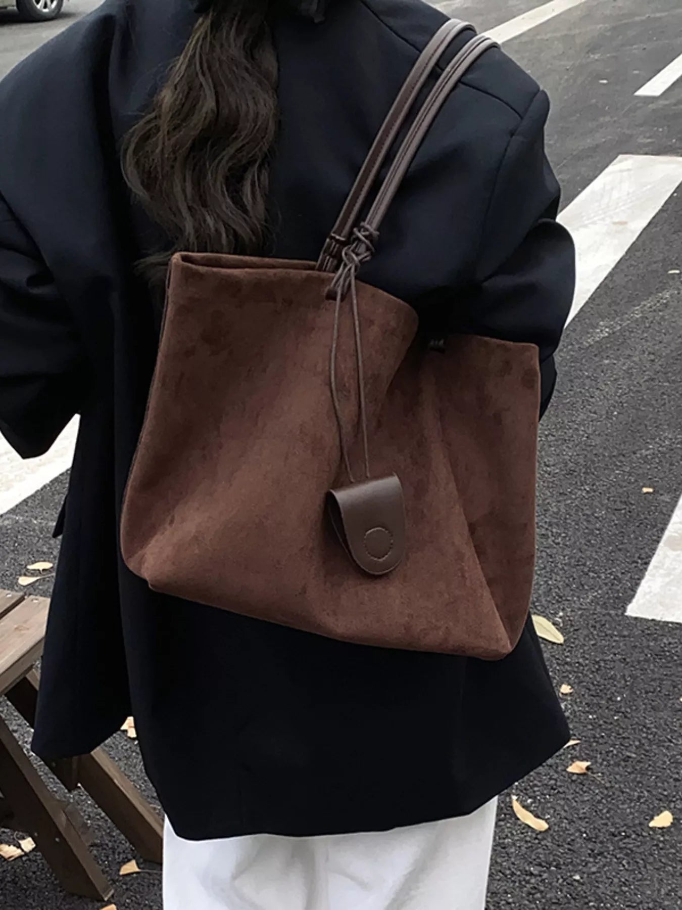 A spacious and stylish suede tote bag designed with a soft texture, elegant structure, and plenty of room for daily essentials.