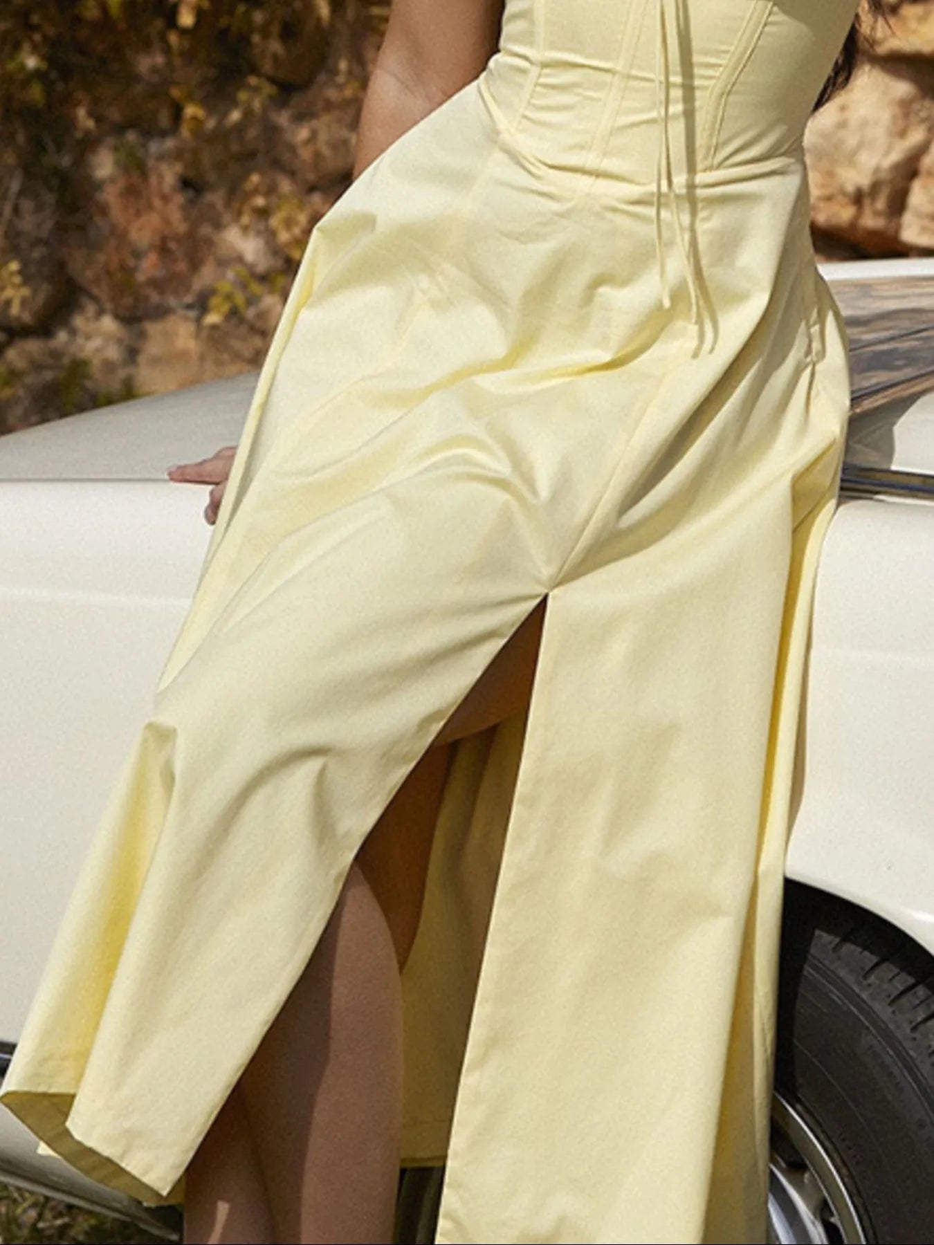 This slit tie detail dress combines elegance with a touch of modern chic. Designed with a flattering tie accent and a subtle slit, it enhances movement while keeping the look refined. Made from lightweight polyester, it offers comfort and breathability, making it perfect for both casual outings and semi-formal occasions.