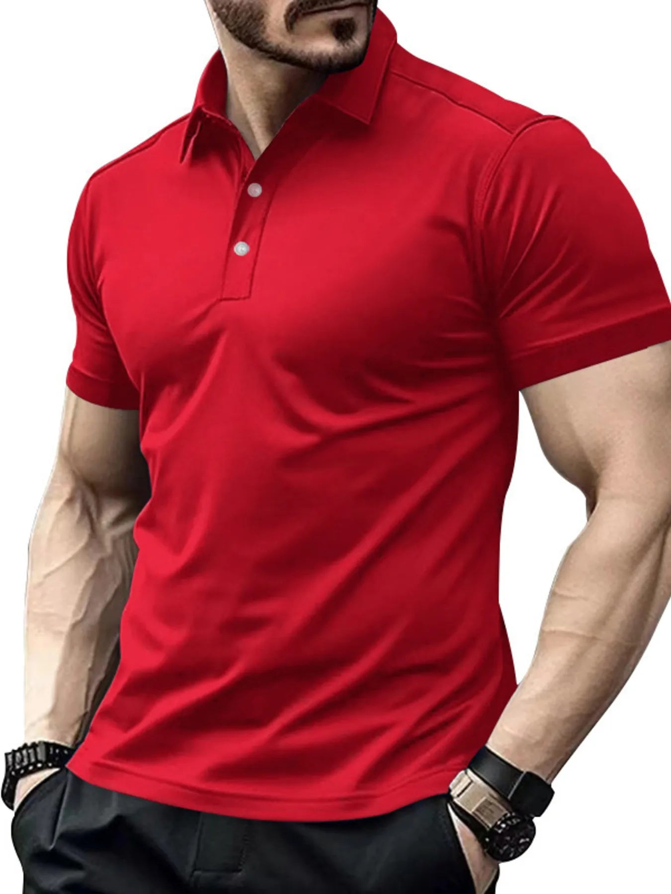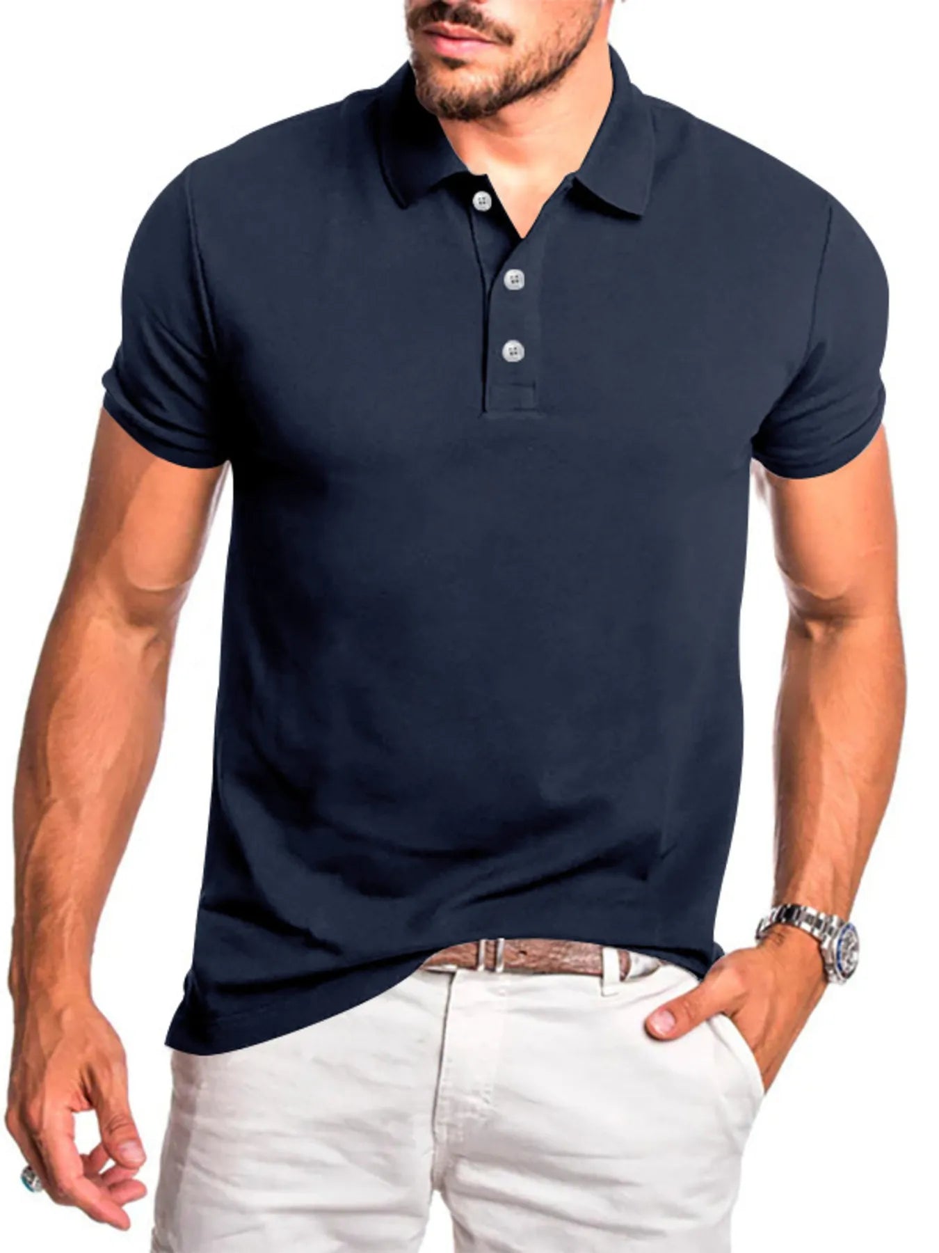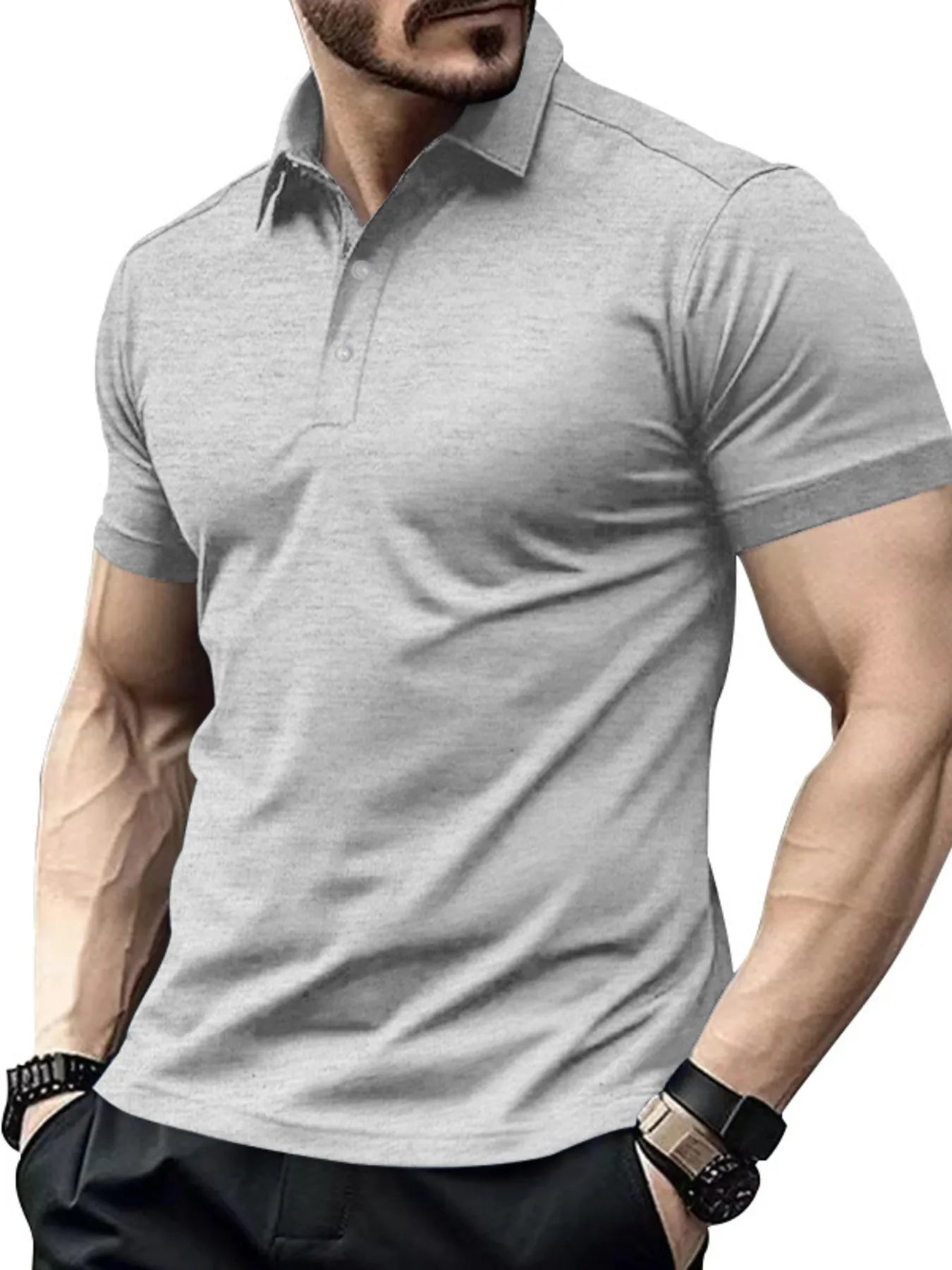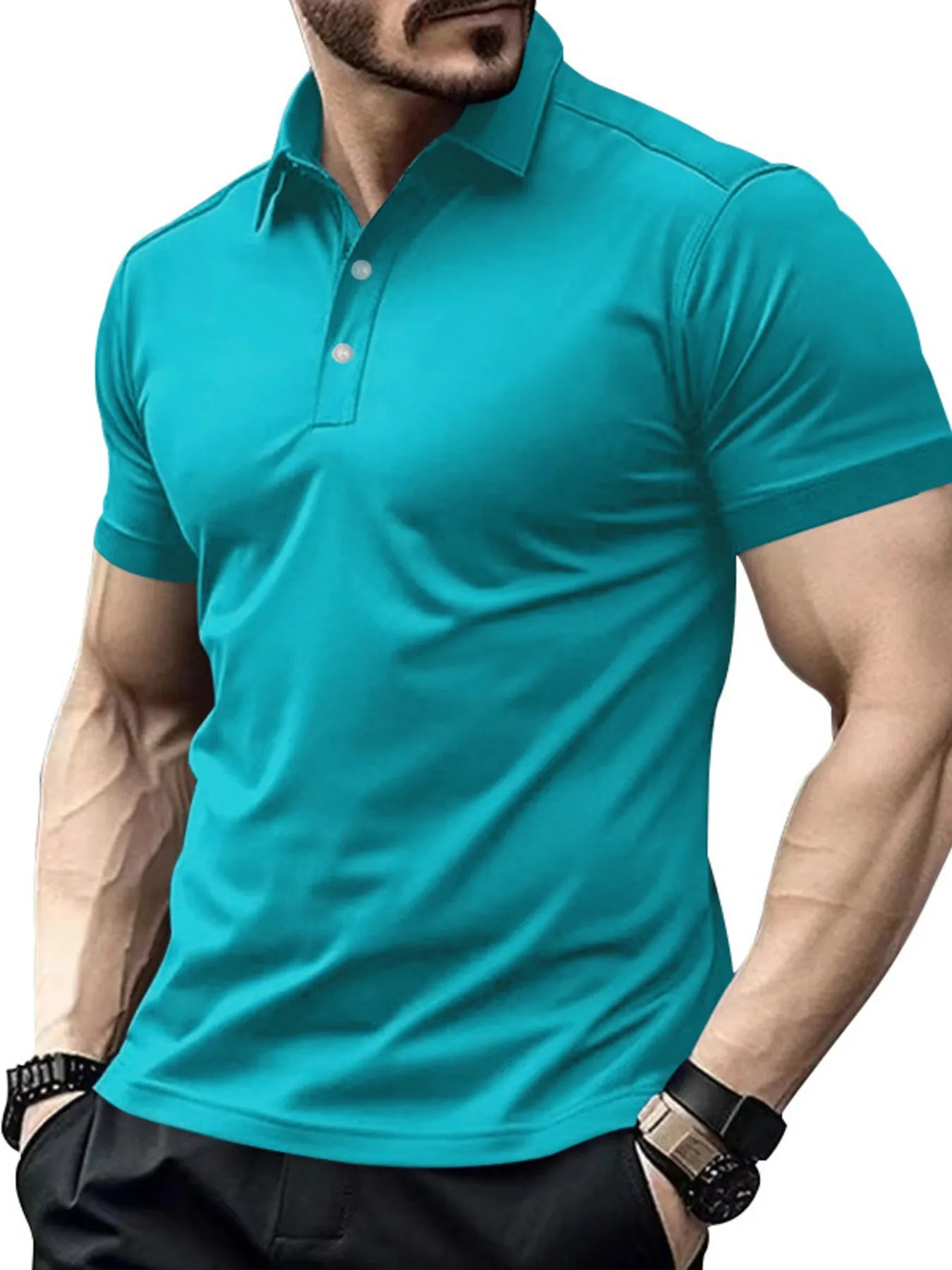 • Features: Basic style, buttoned front, breathable, moisture-wicking