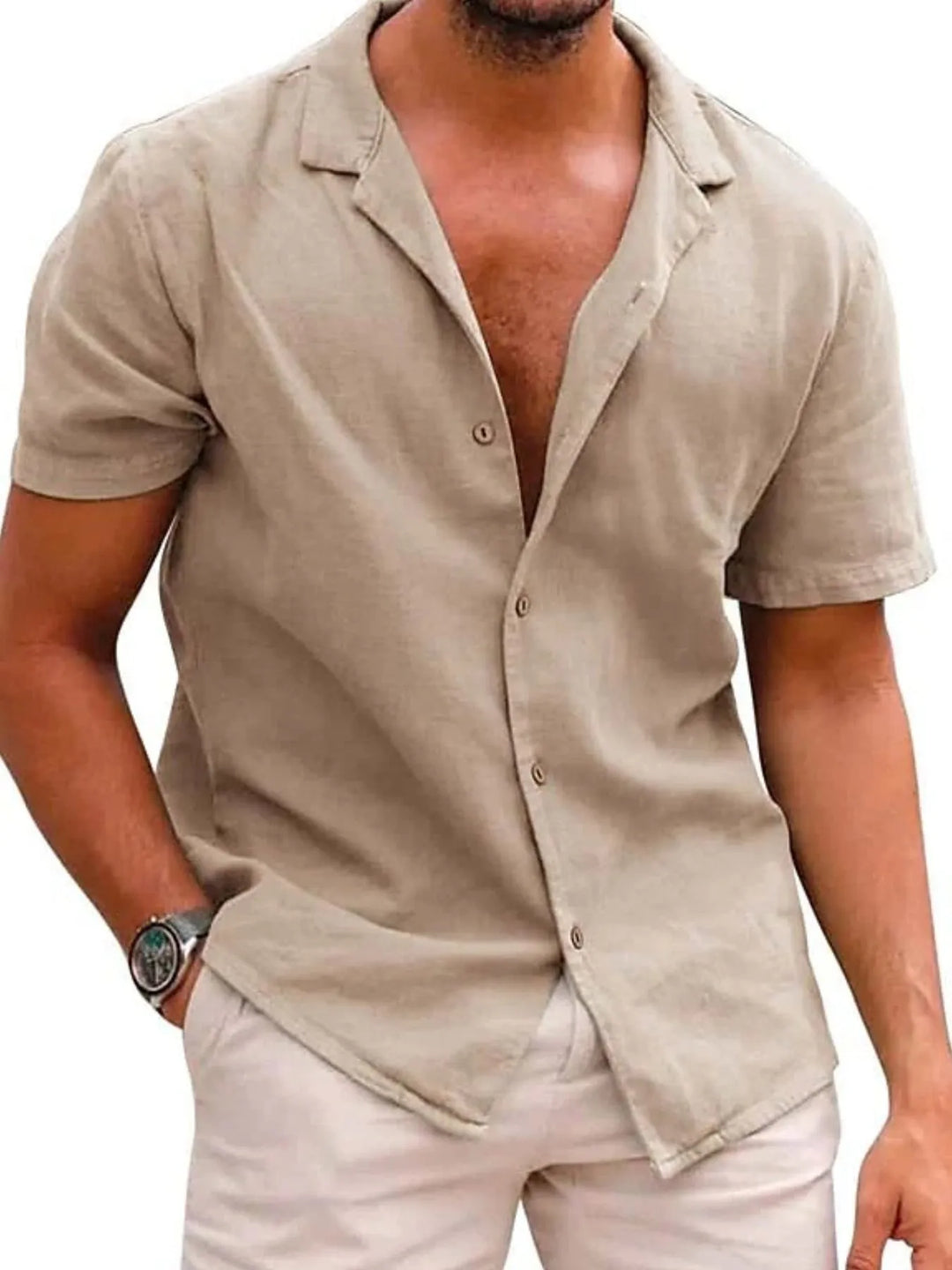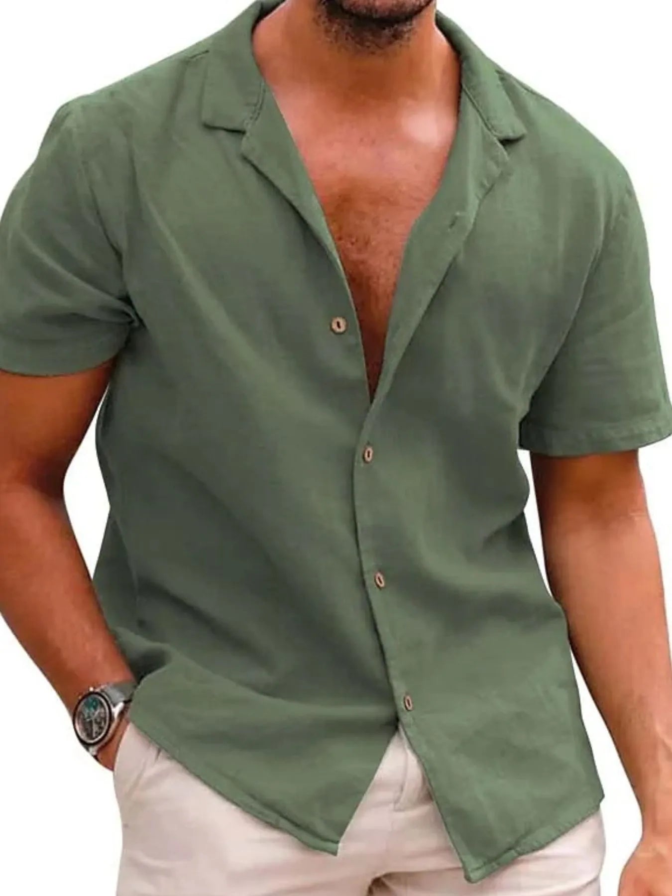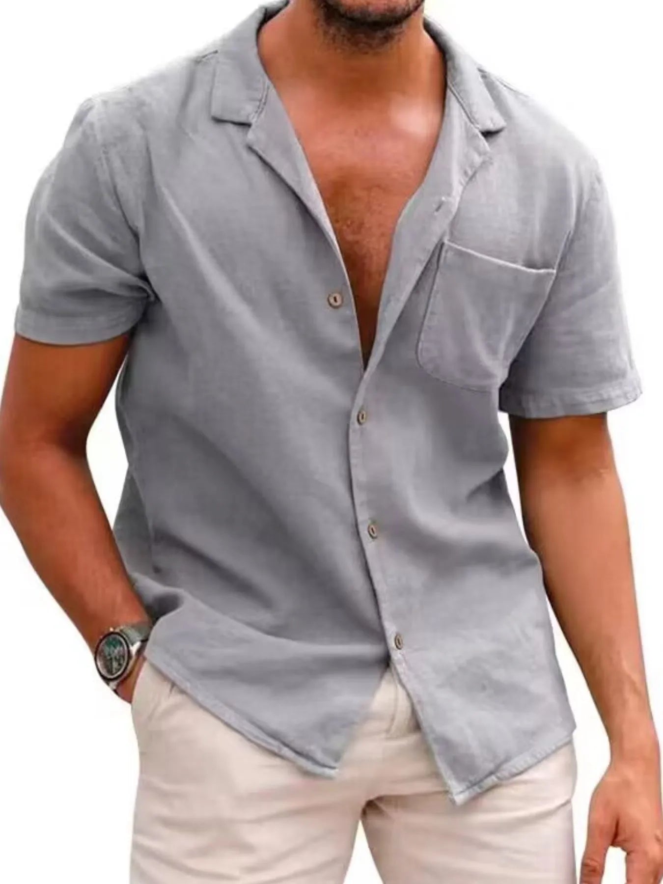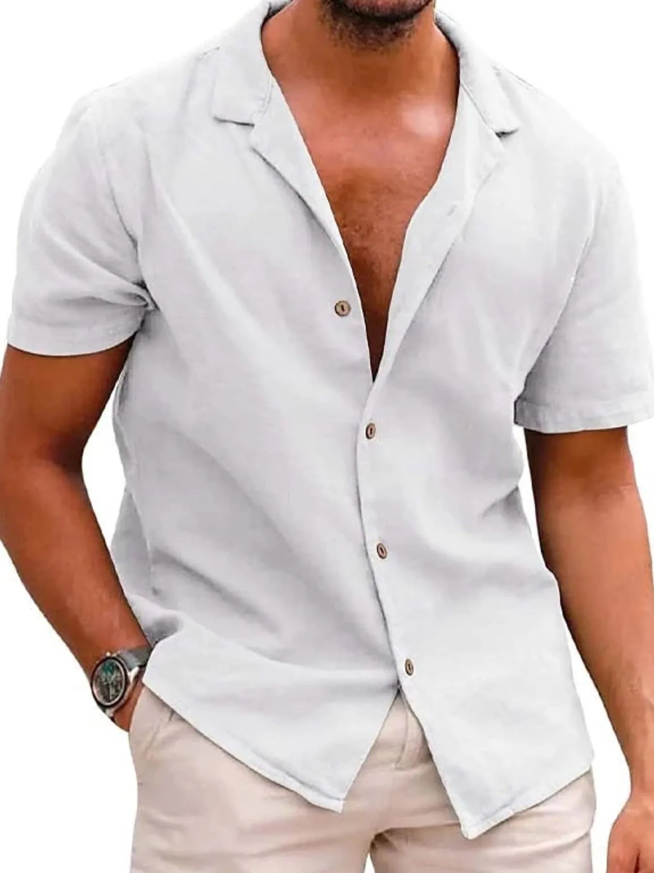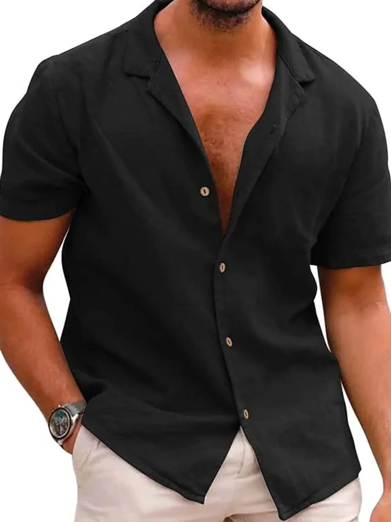 Men's Full Size Classic Short Sleeve Button Down Linen Shirt Plus Size