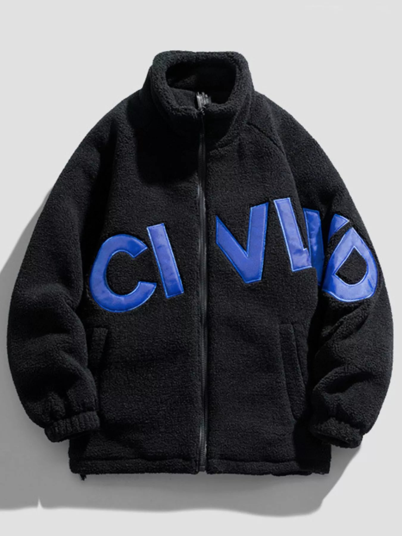 Men's Full Size Fleece Letter Graphic Zip Up Jacket Plus Size