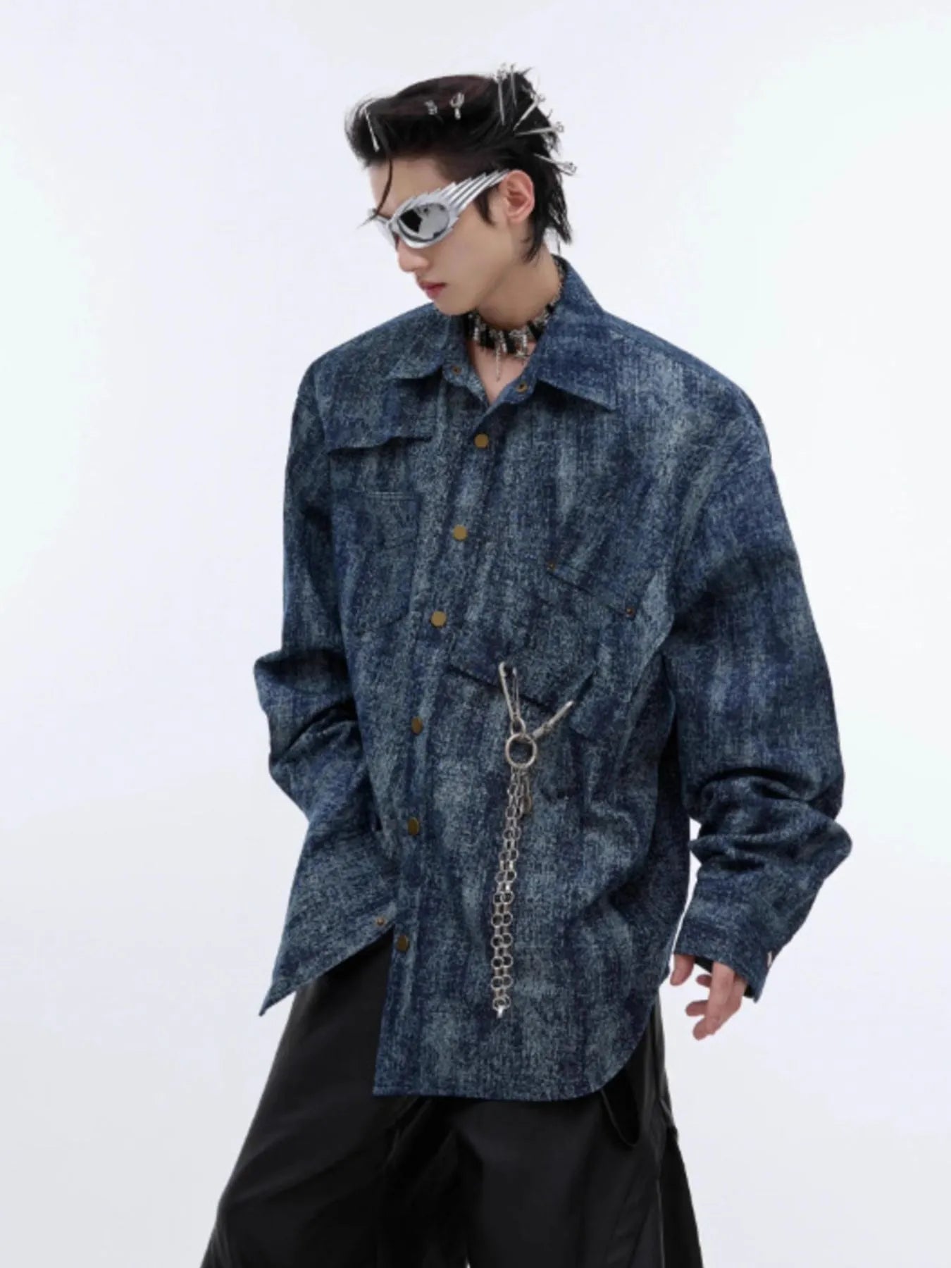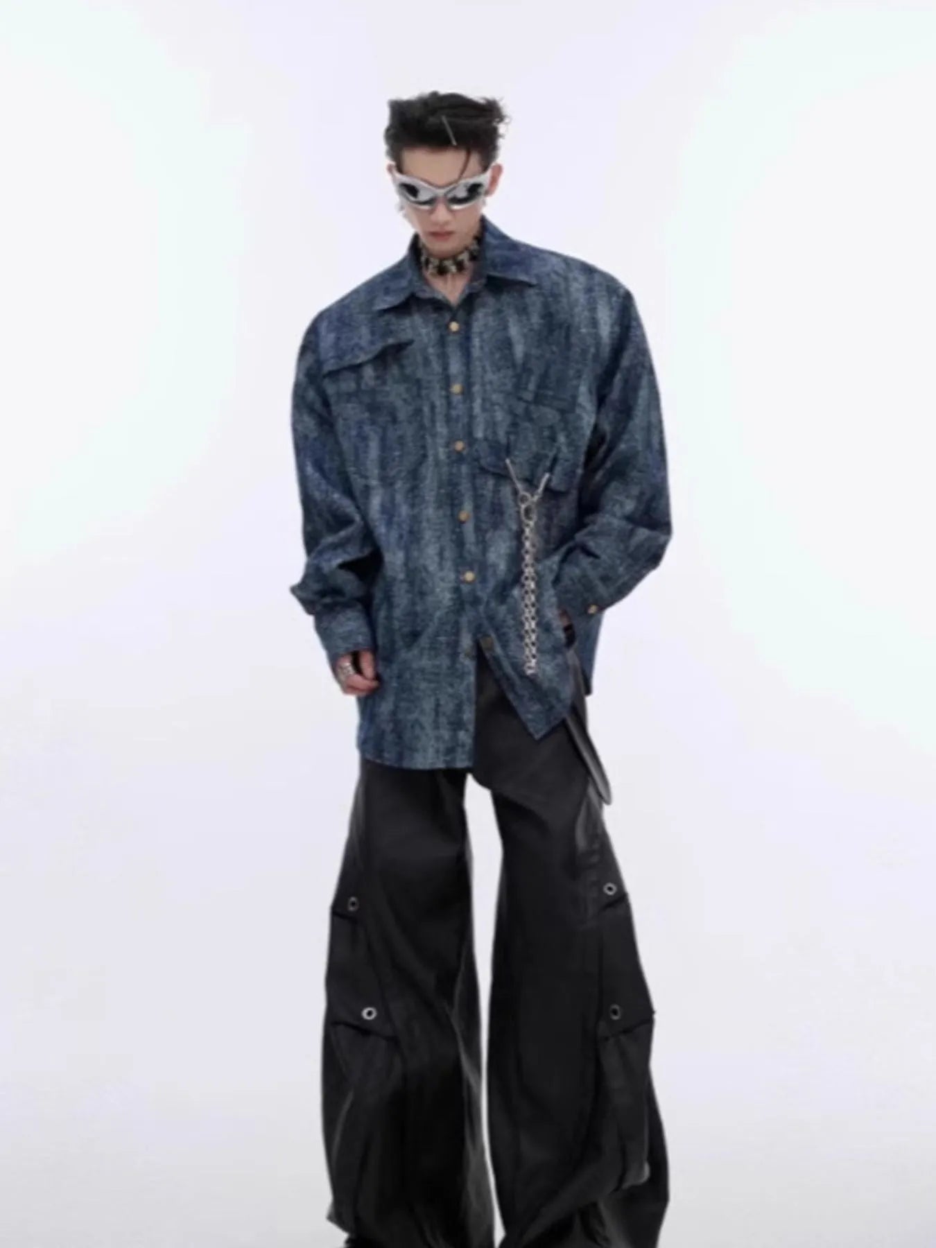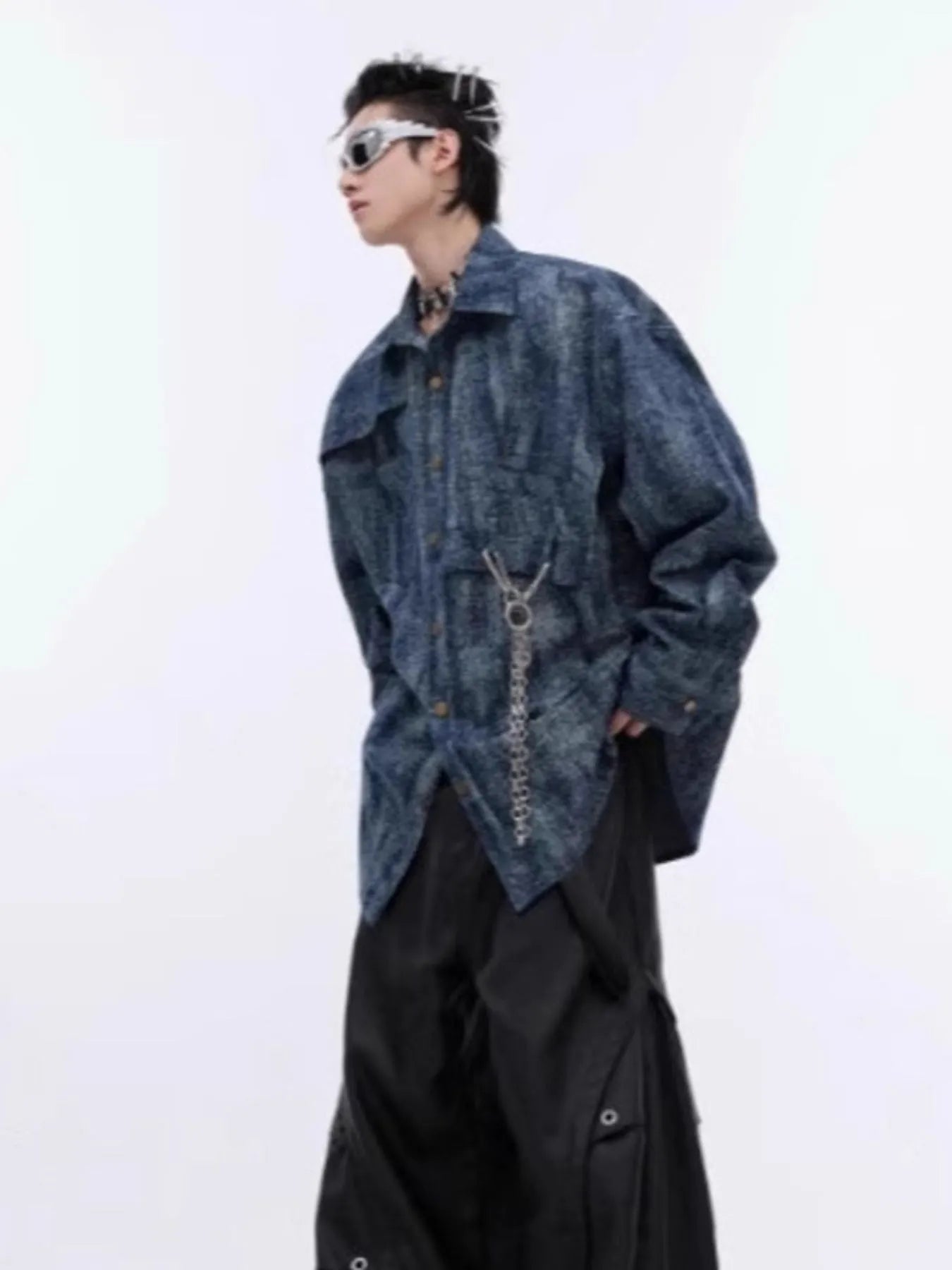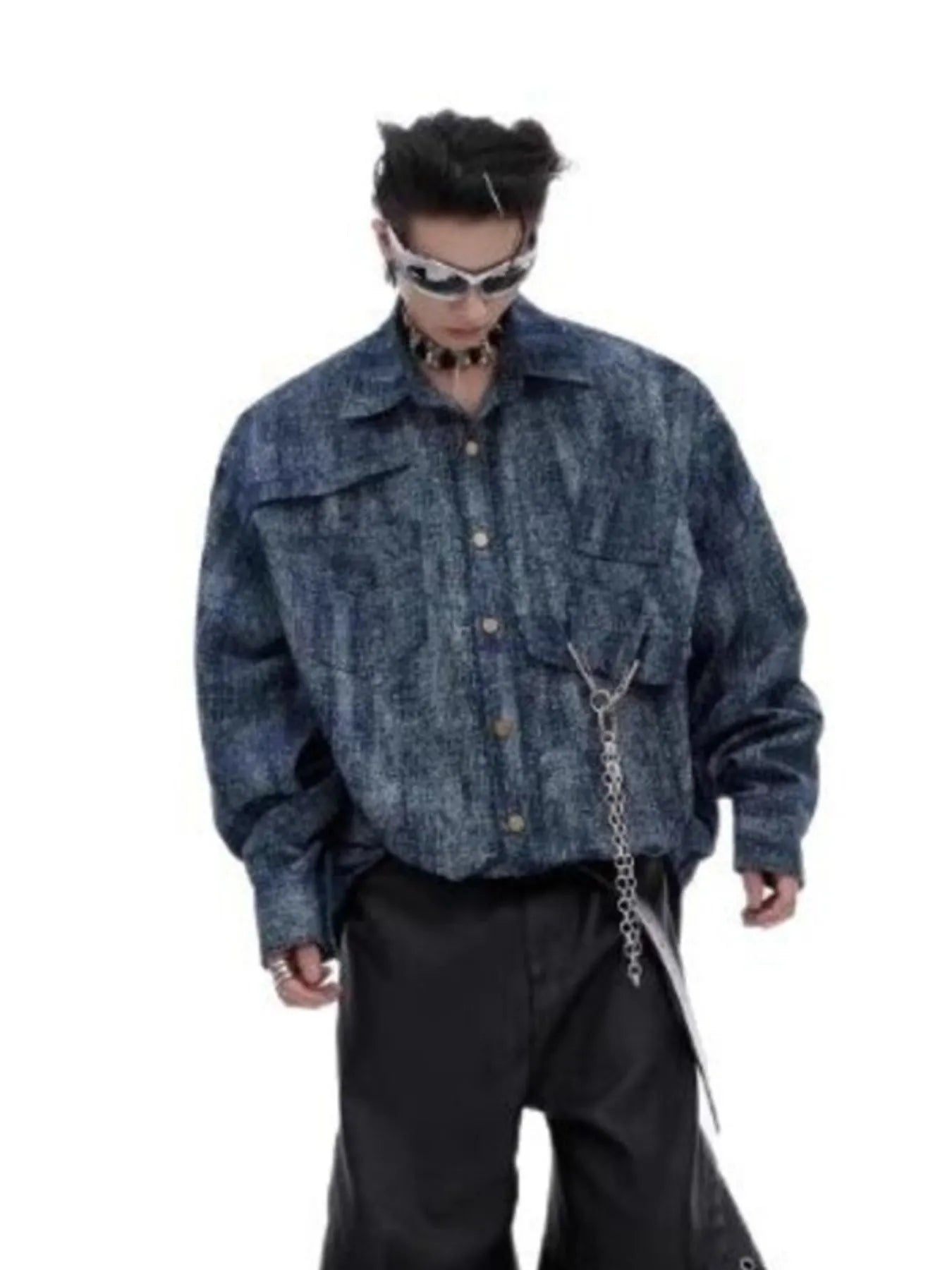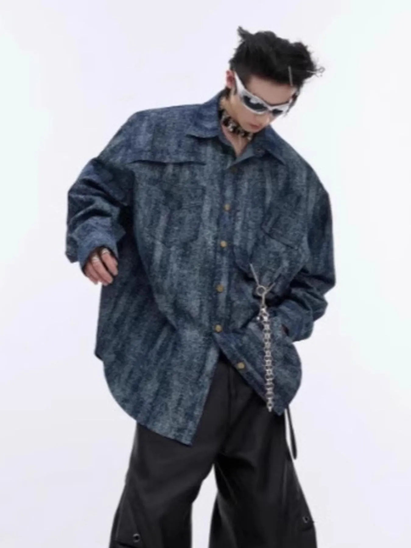 Men's Full Size Oversized Button Up Denim Shirt Plus Size