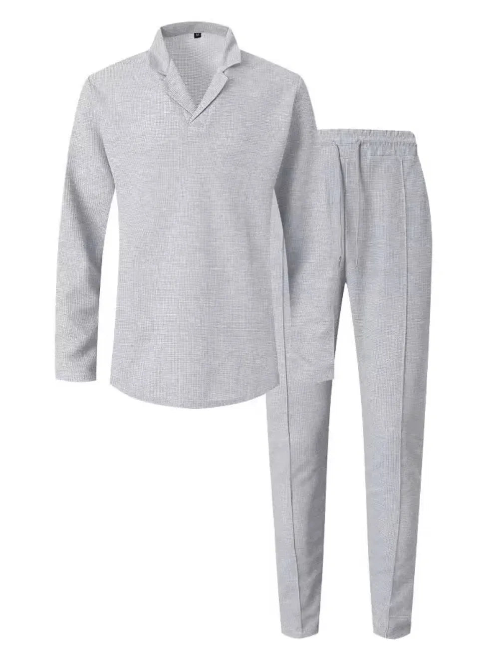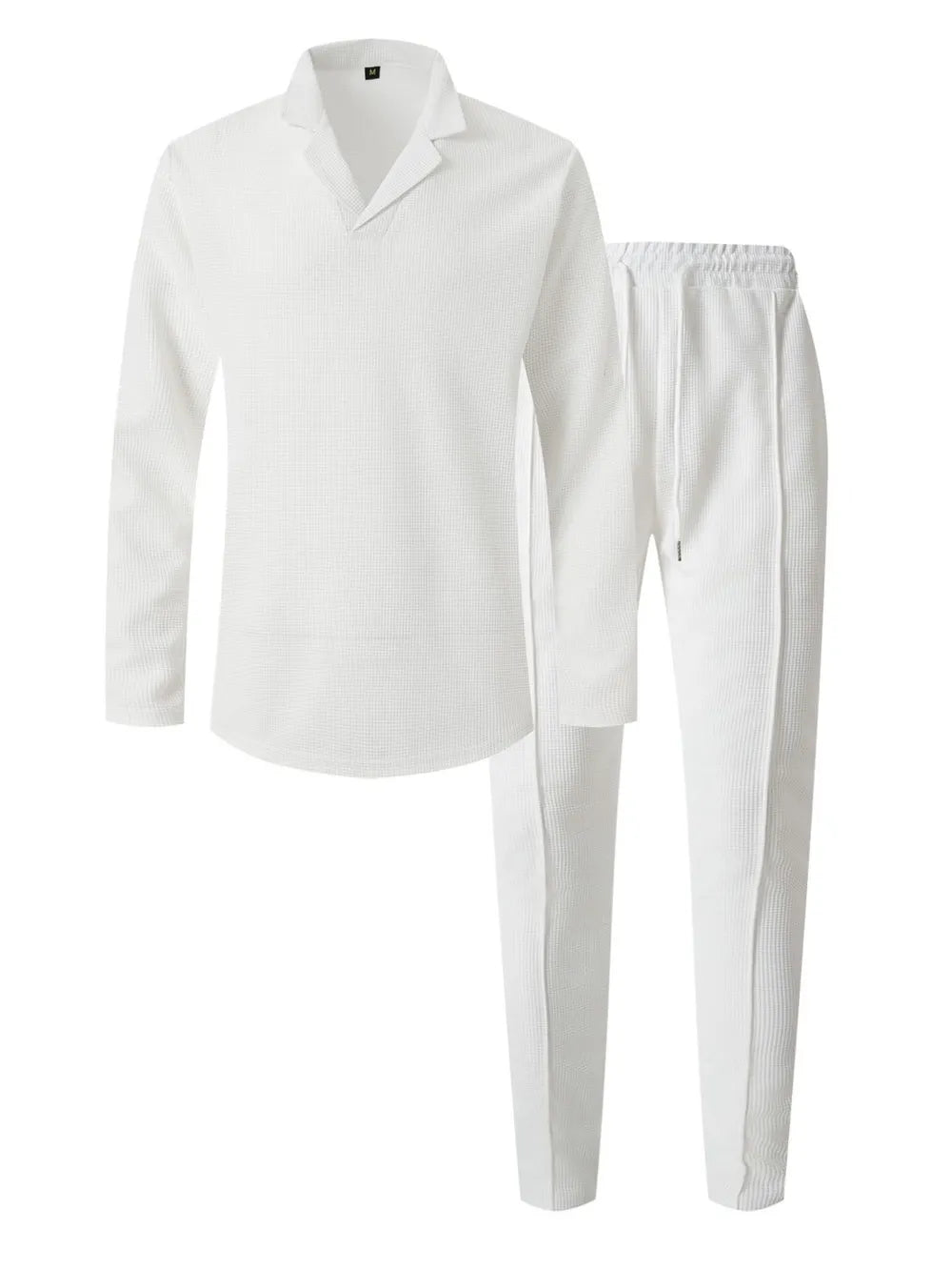 Crafted from a soft waffle-knit blend, this two-piece set combines laid-back comfort with modern texture. The adjustable drawstring and breathable fabric make it perfect for casual wear or lounging in style.