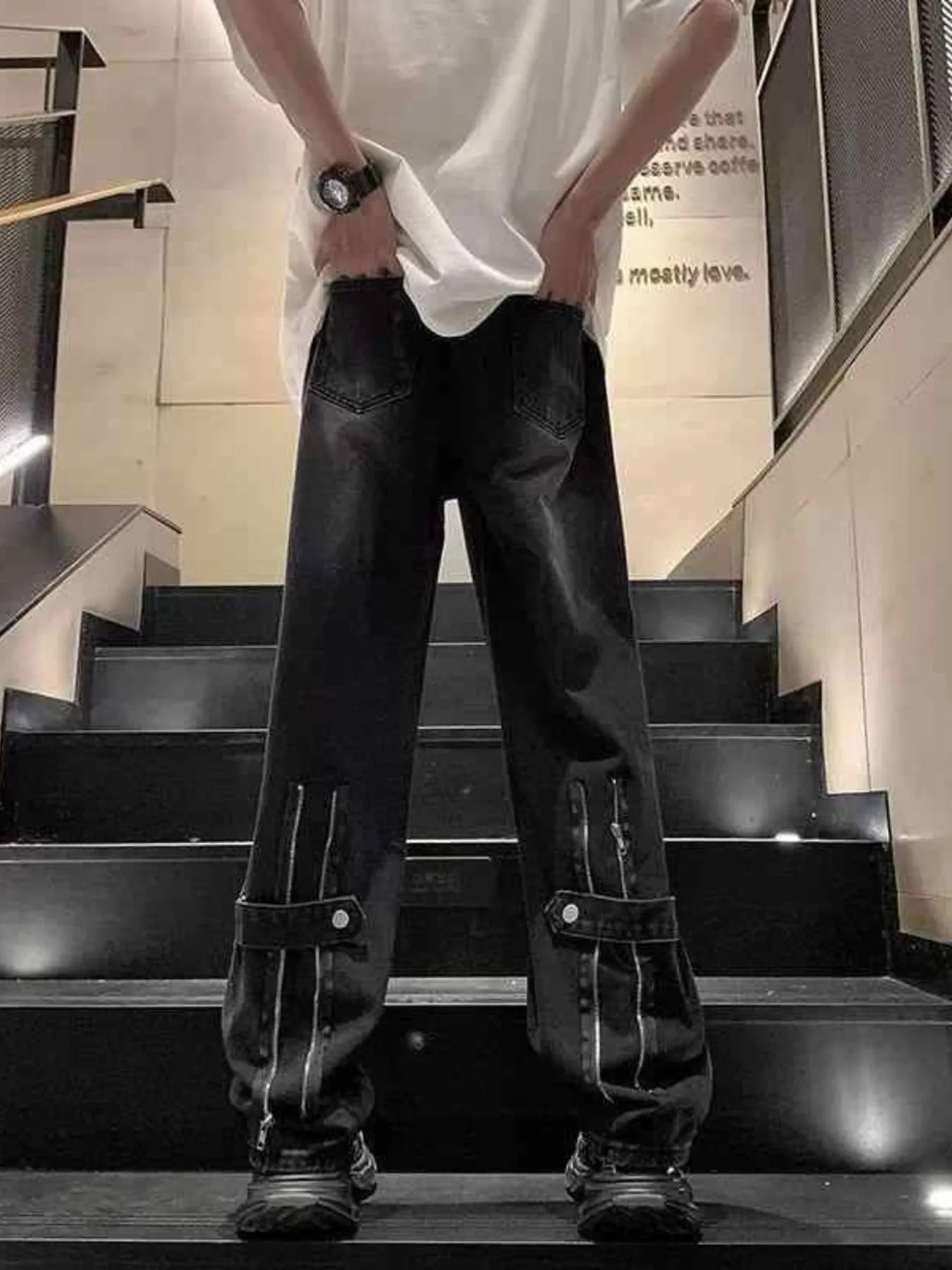Men's Full Size Wash Wide Leg Jeans Plus Size