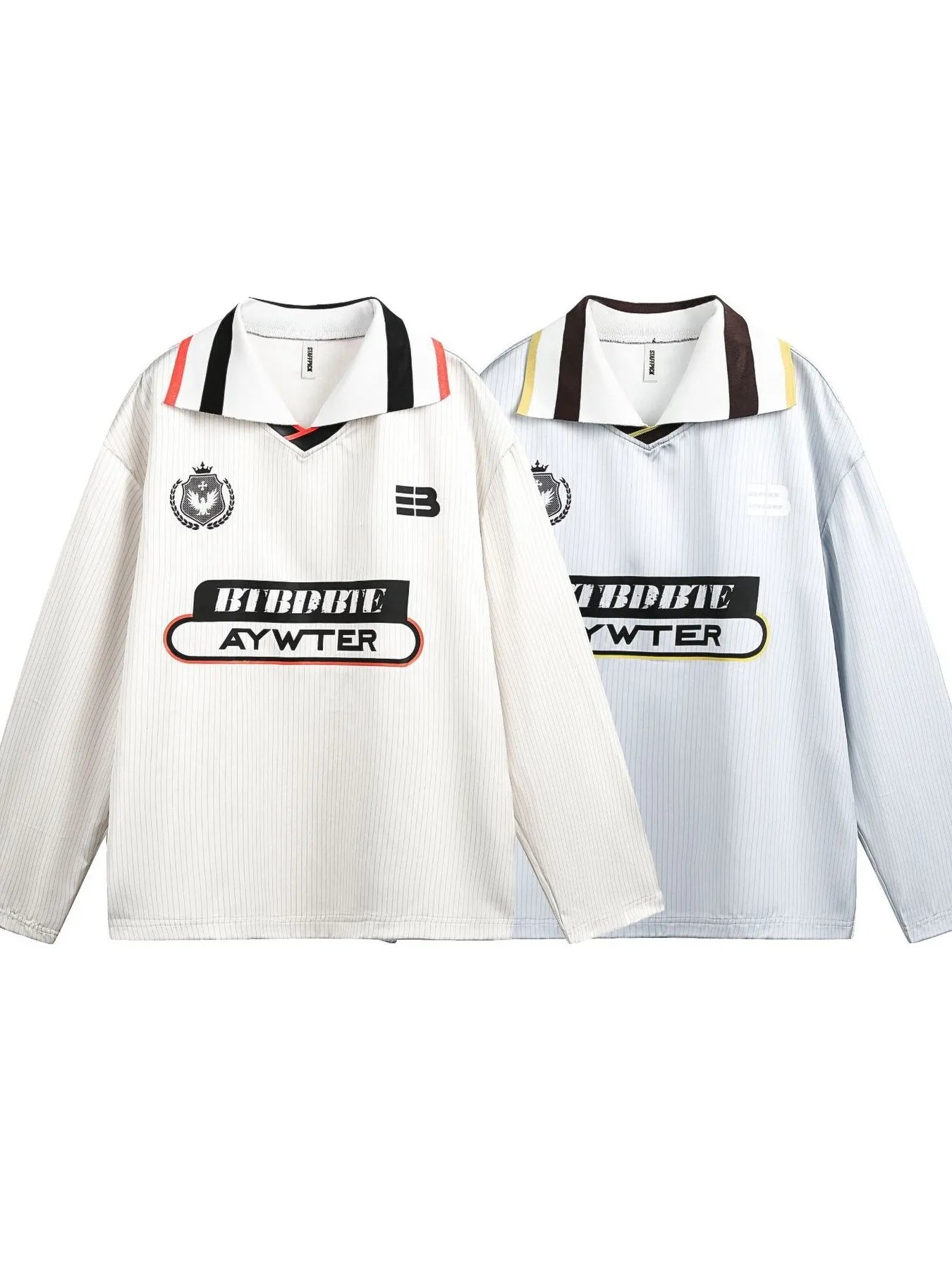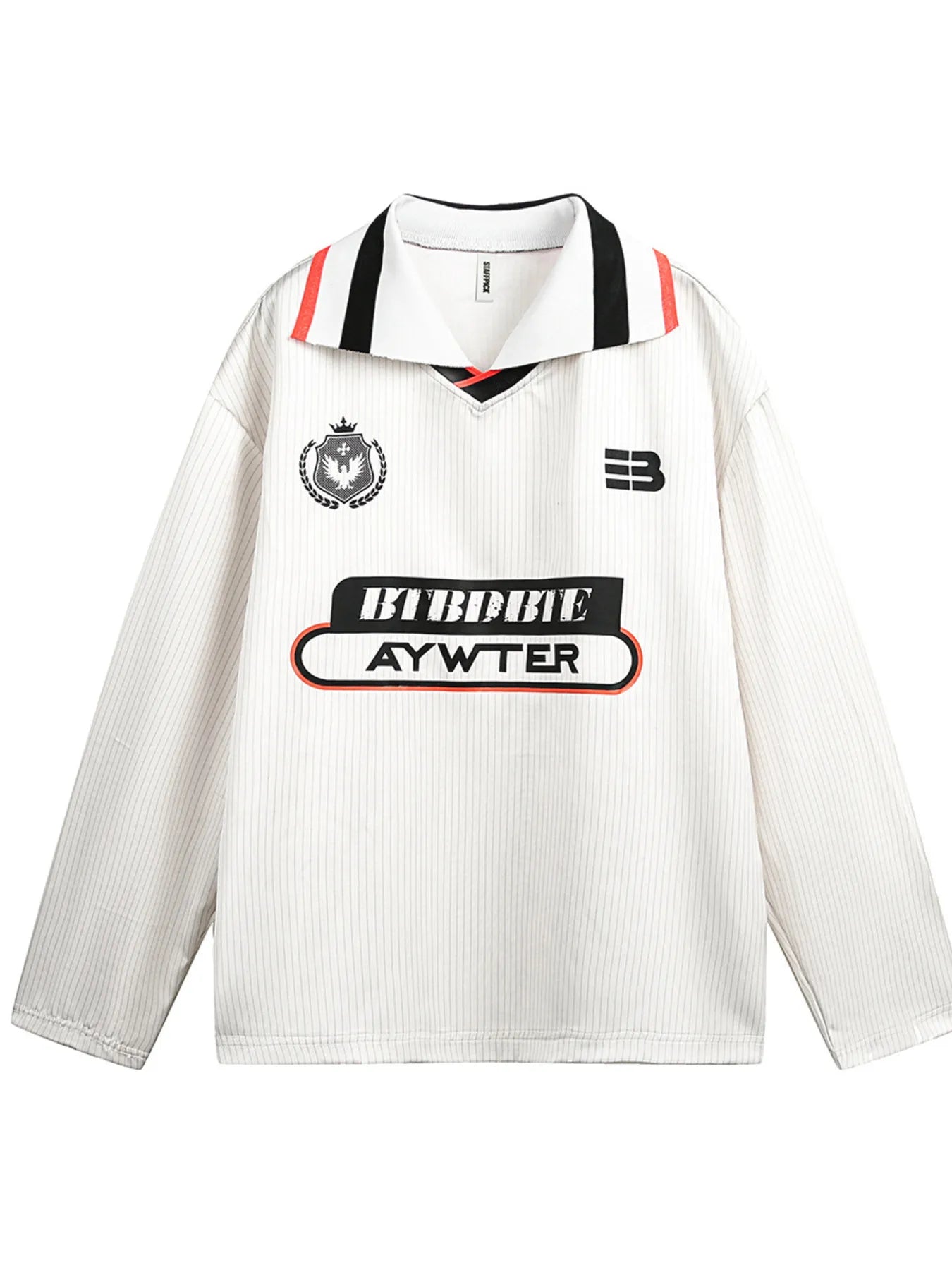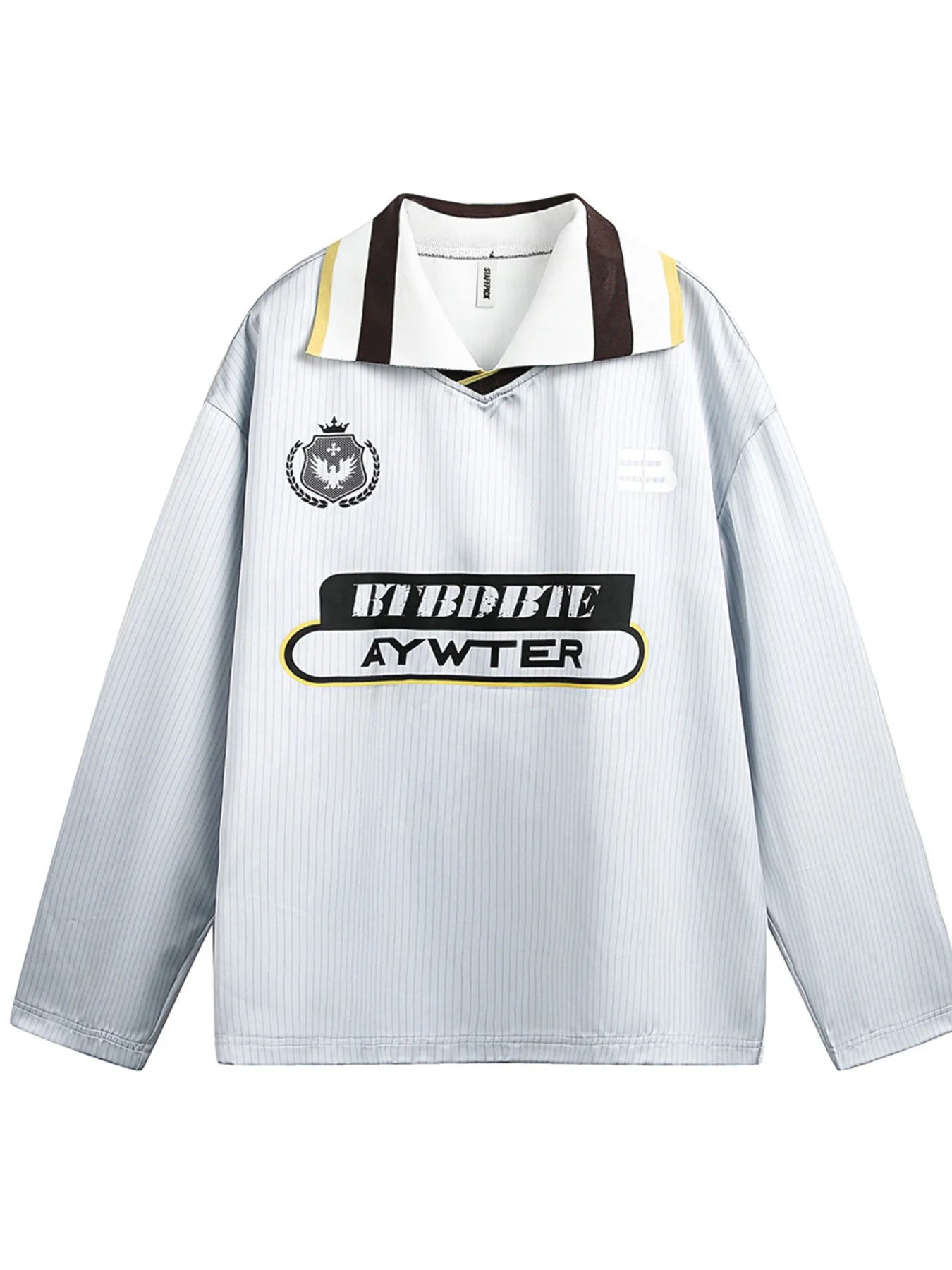 • Features: Basic style, Striped collar, Embroidered lettering