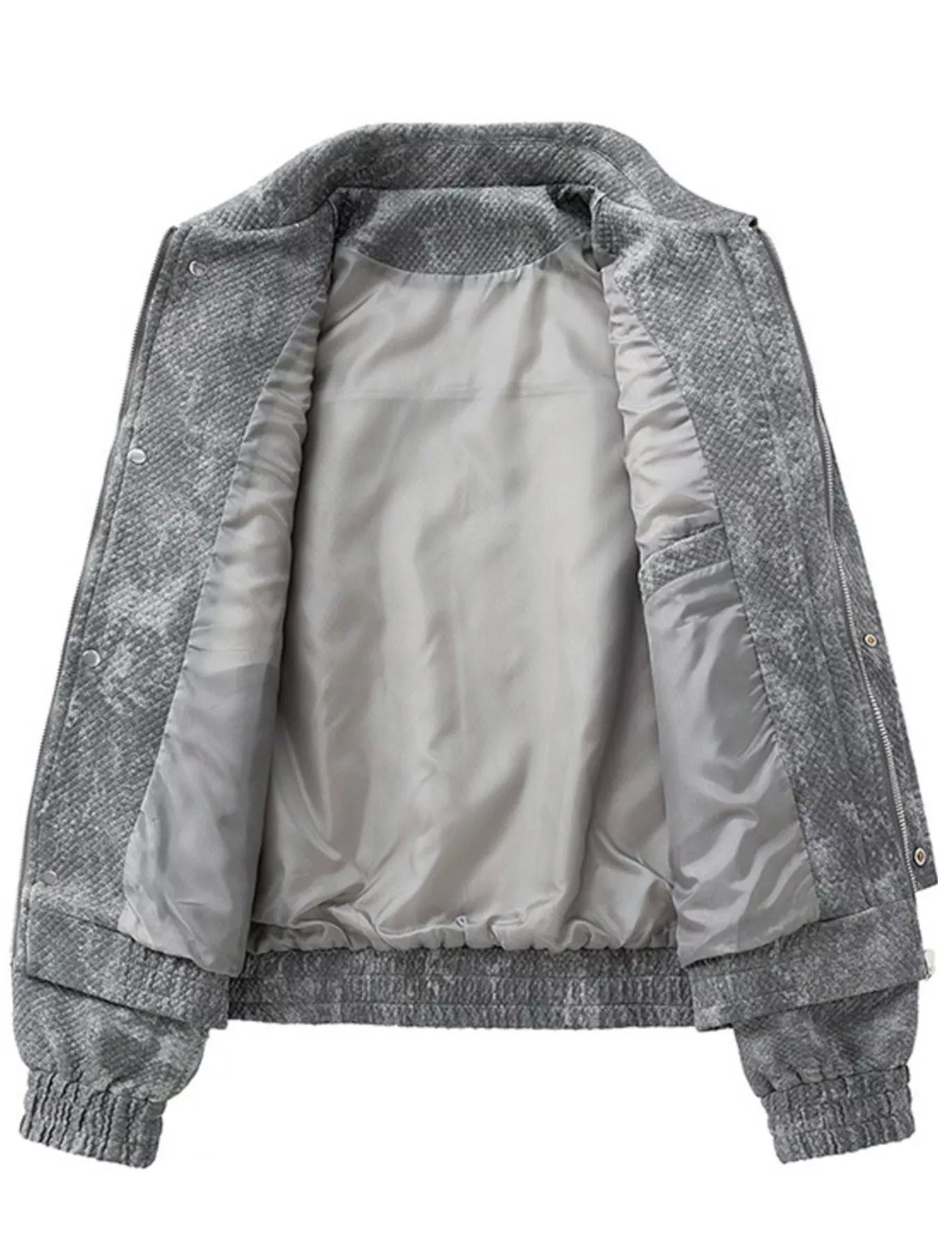 A versatile jacket with a clean silhouette, featuring button details, a functional zipper, and practical pockets. Made from durable polyester with a normal thickness, ideal for everyday layering.