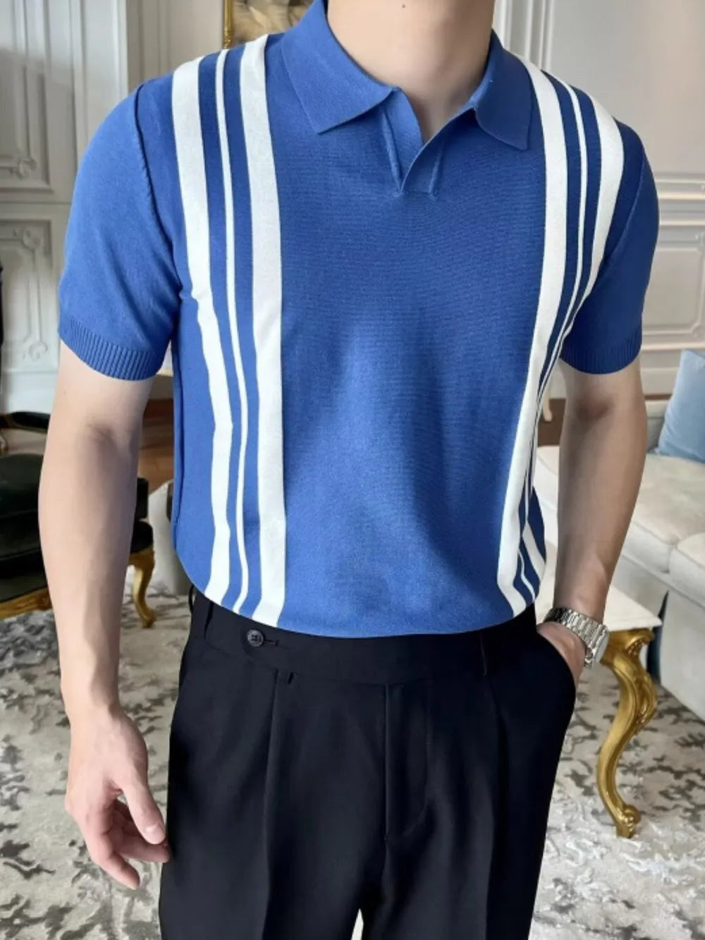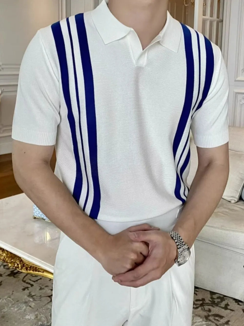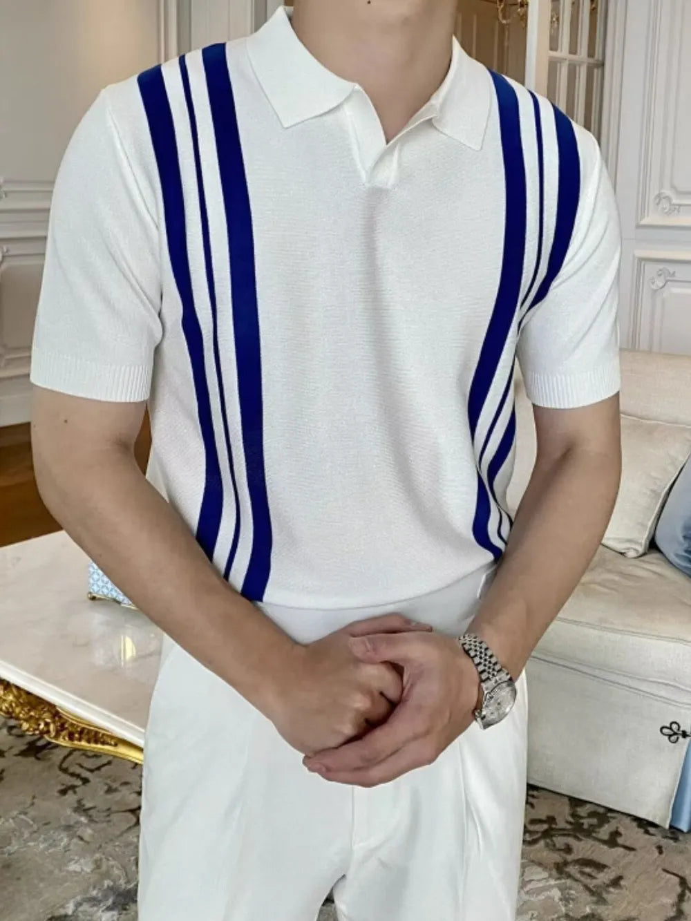 Men's Plus Size Contrast Collared Neck Short Sleeve Polo