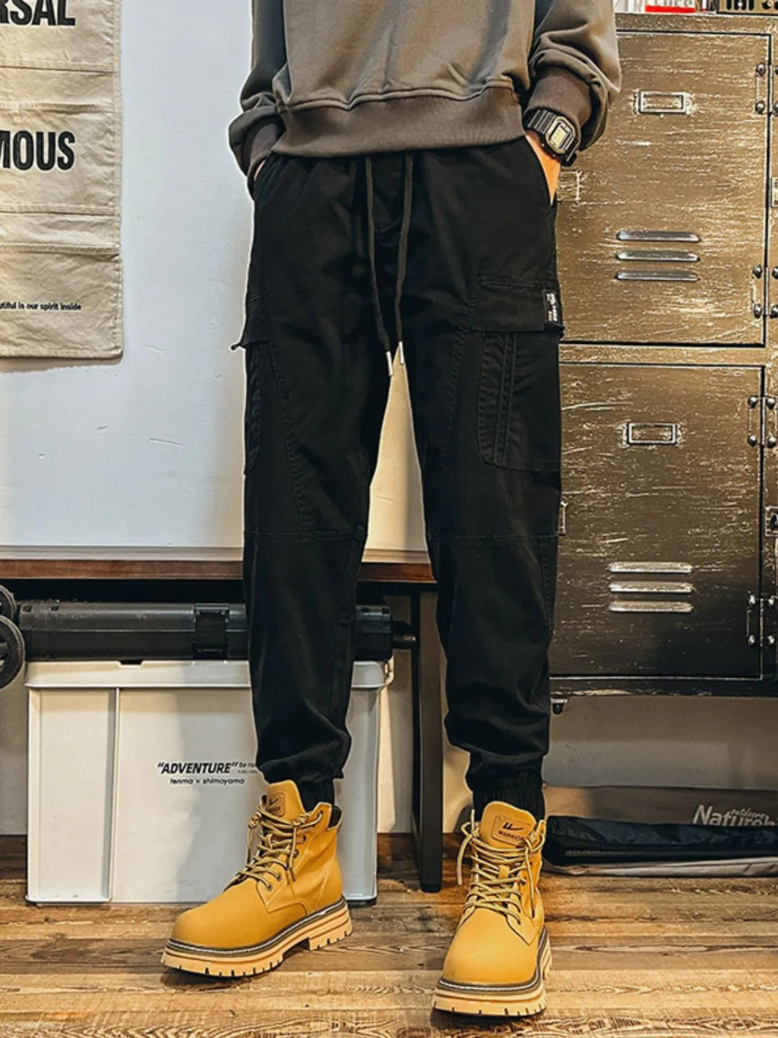 Men's Plus Size Drawstring Pants with Cargo Pockes