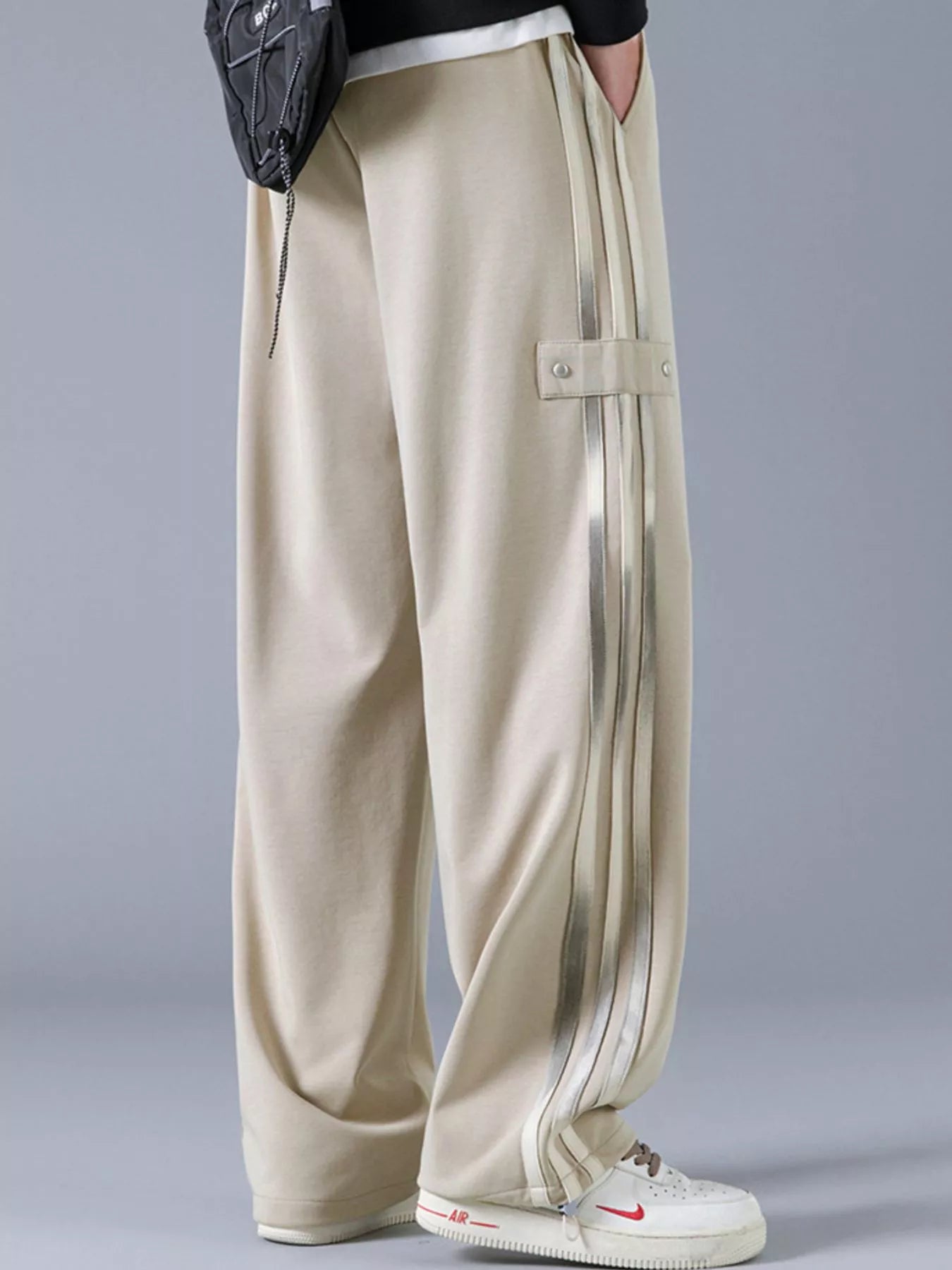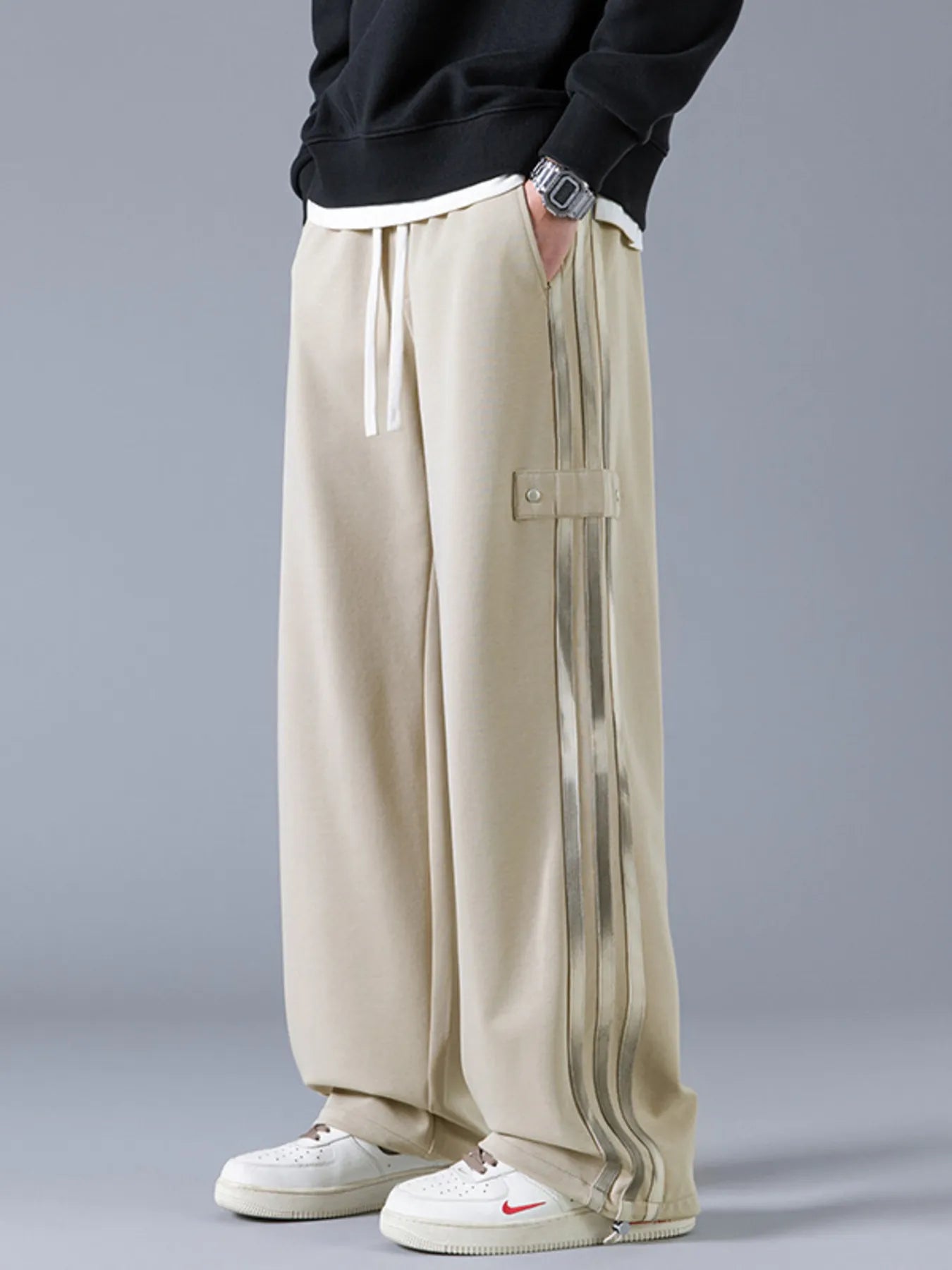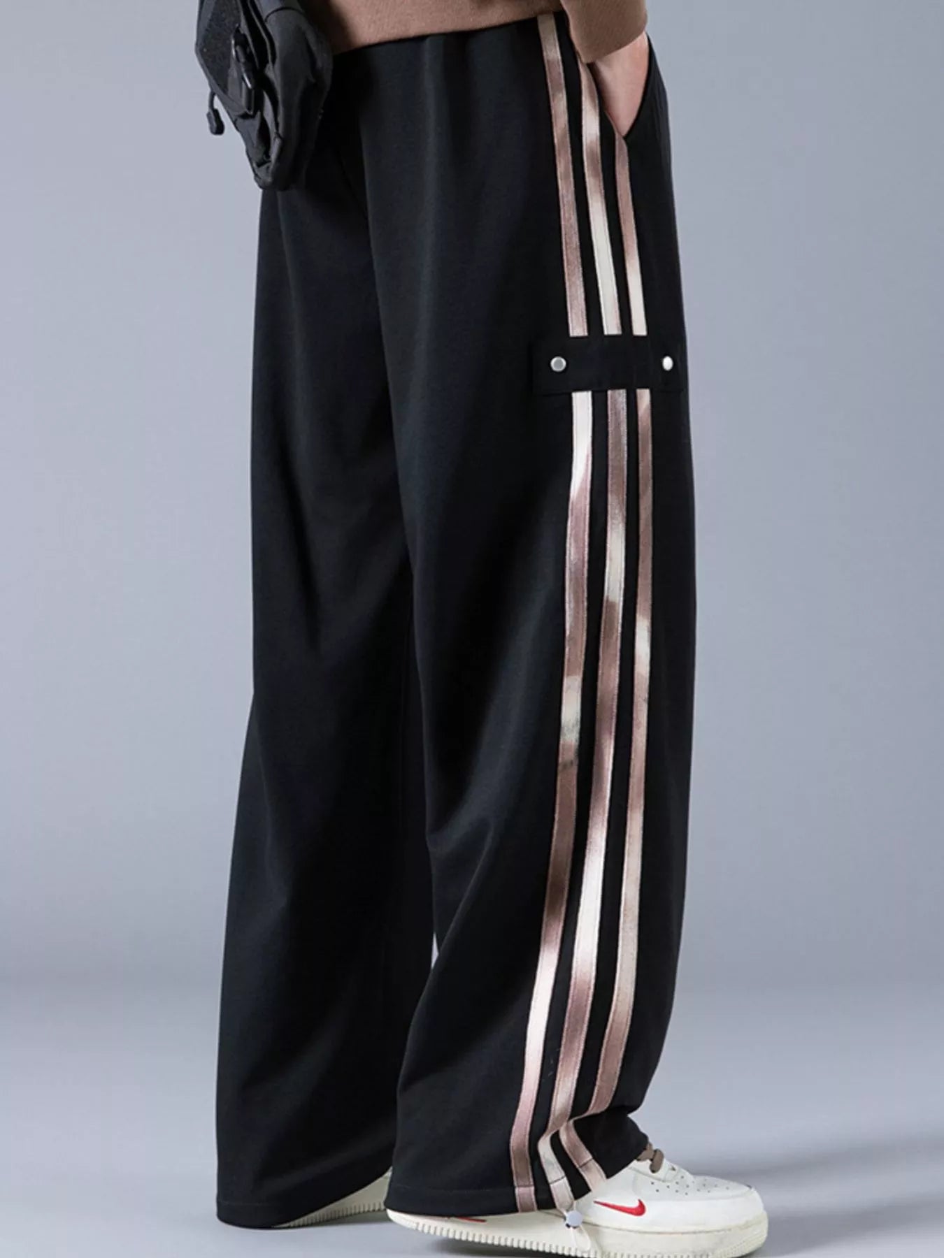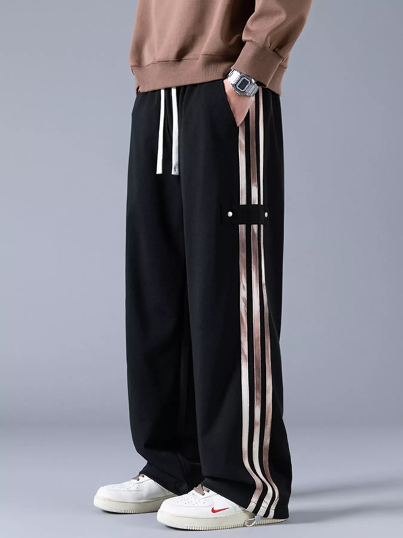 Men's Plus Size Loose Fit Casual Pants with Side Stripes