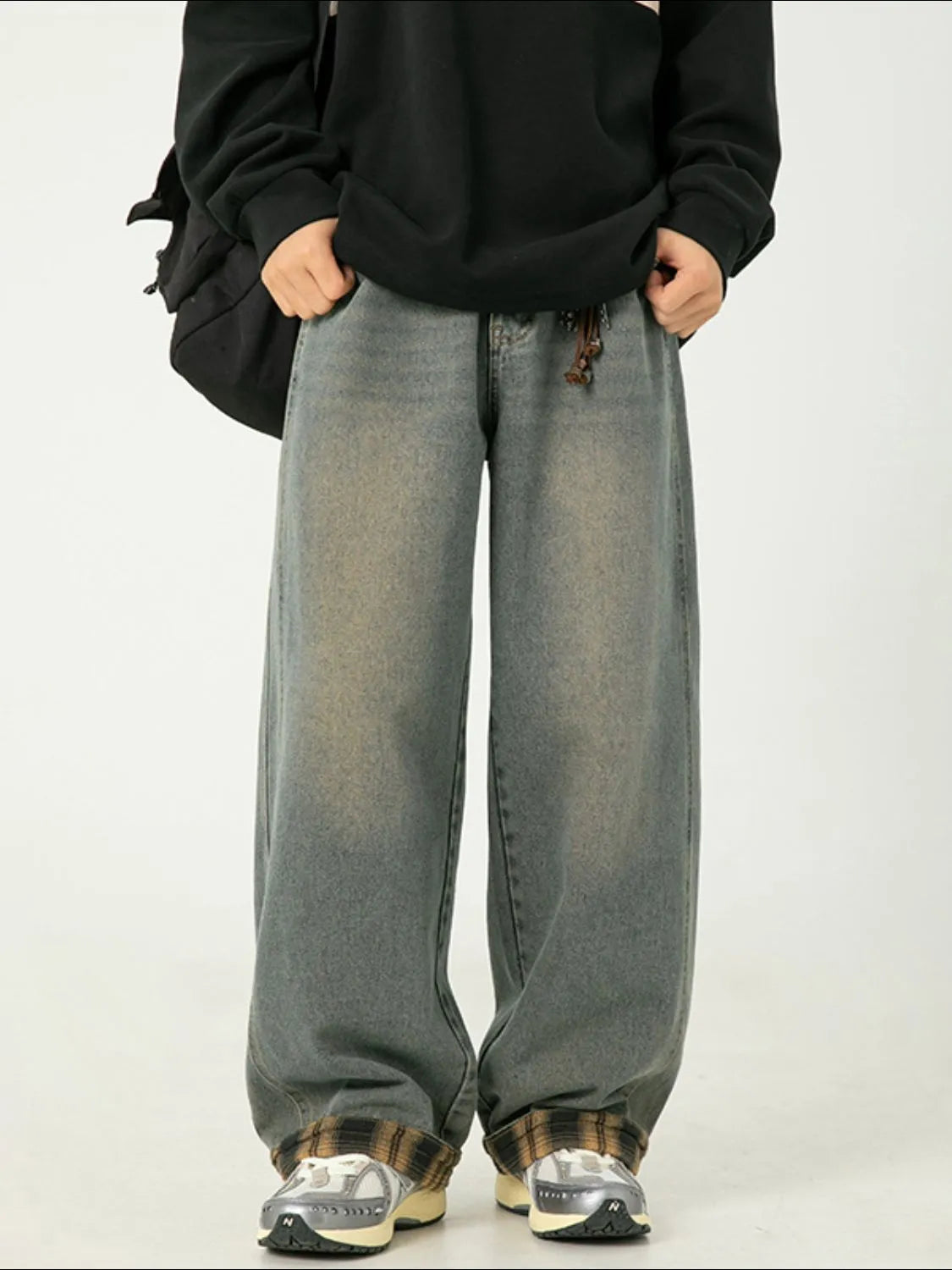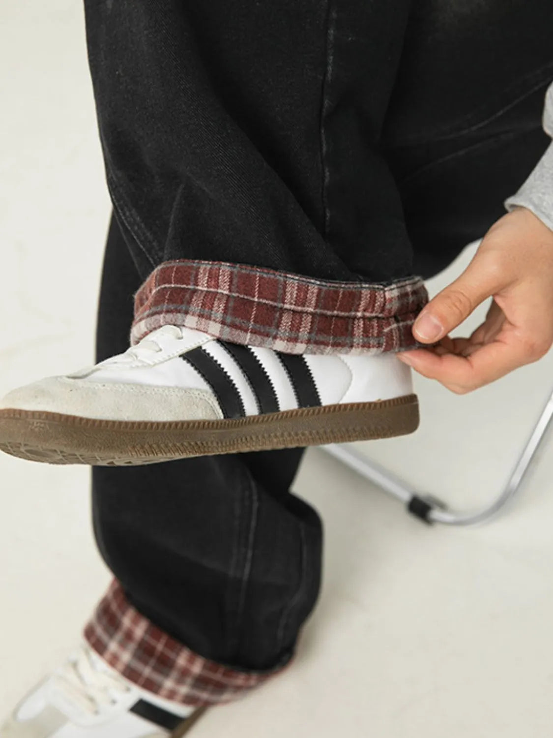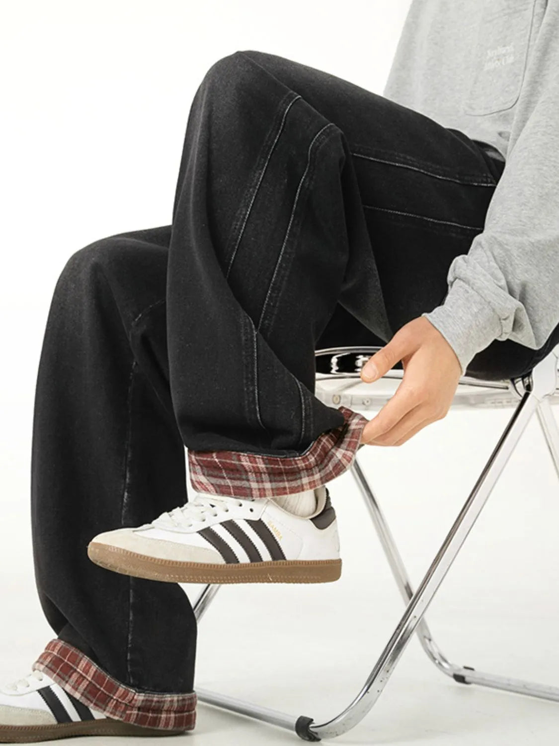 Men's Plus Size Plaid Hem Loose Fit Jeans