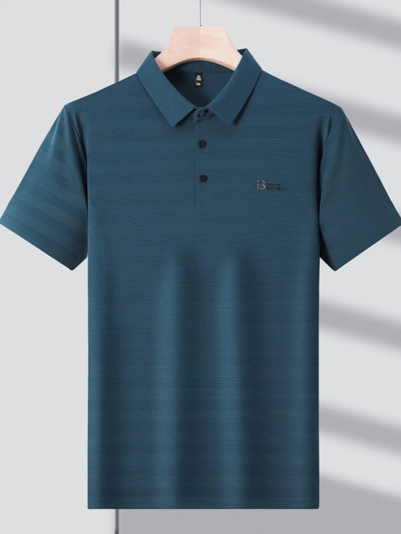 This lightweight short sleeve shirt offers breathable comfort with a refined touch. Featuring a buttoned front and a smooth polyester-spandex blend, it's perfect for warm days or layering under a jacket.
